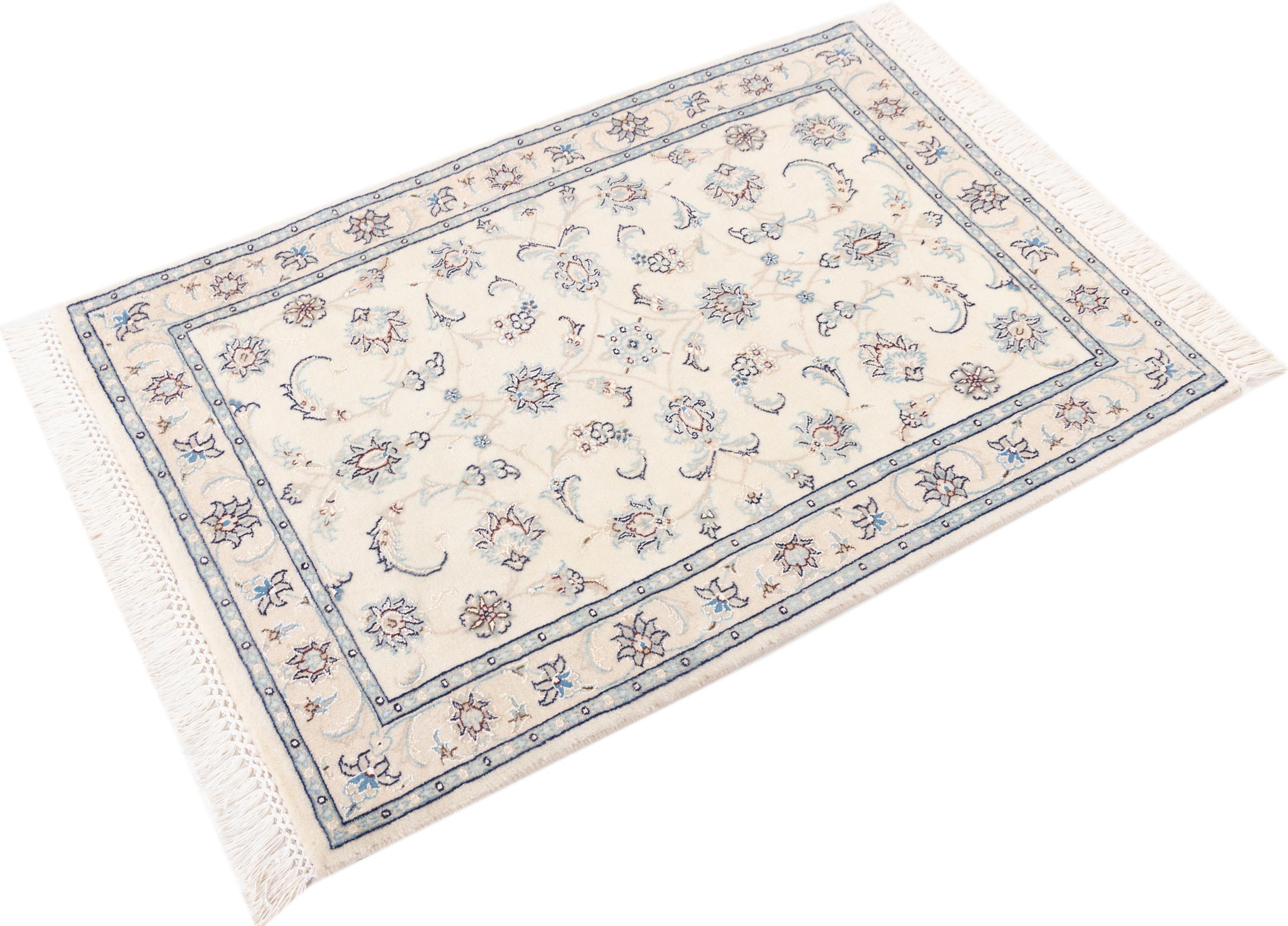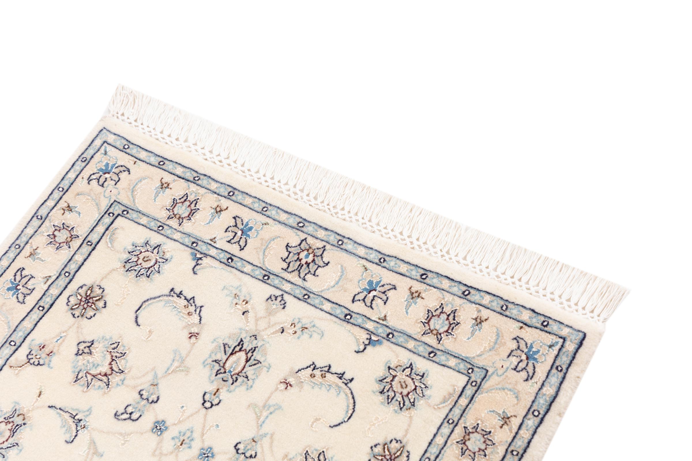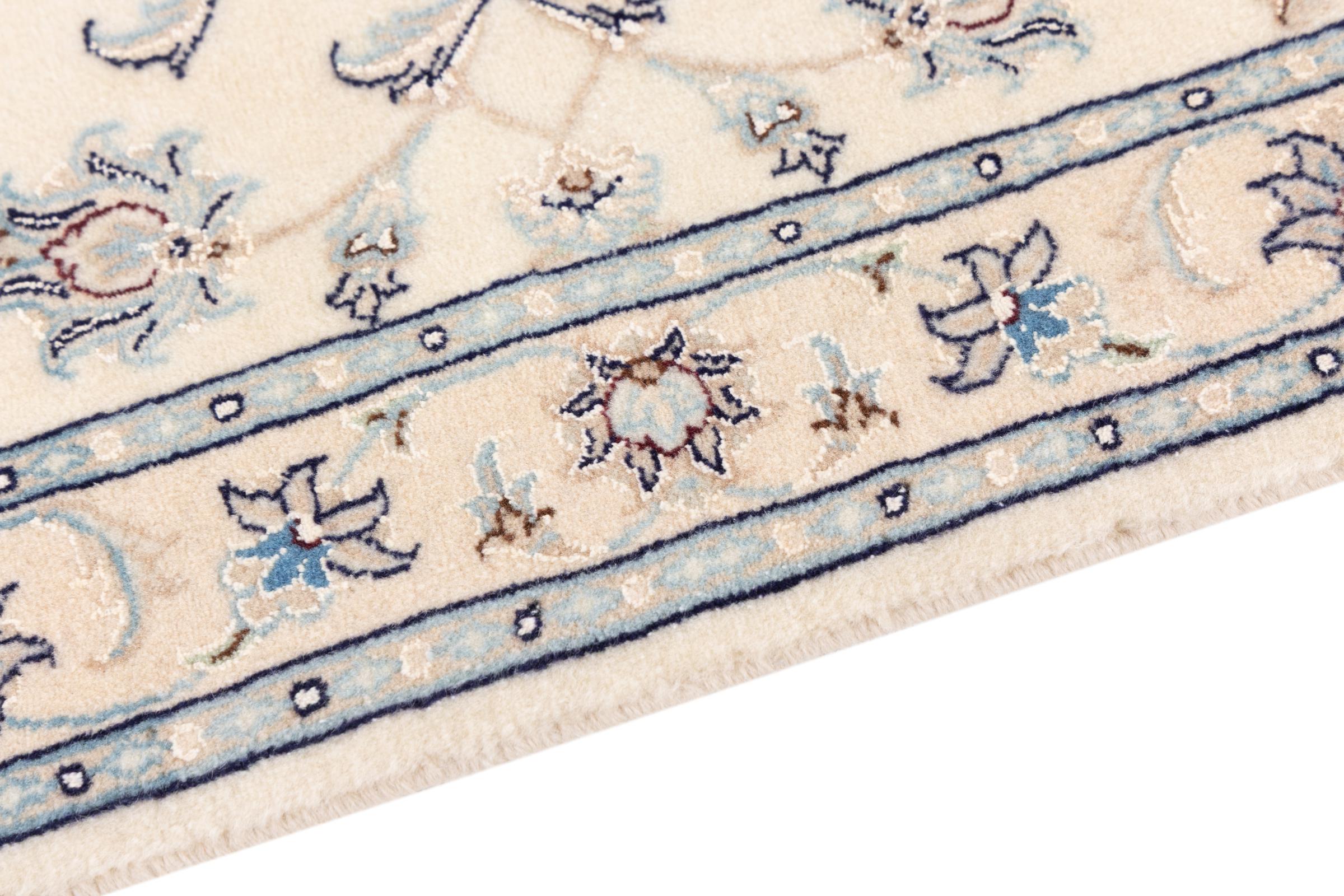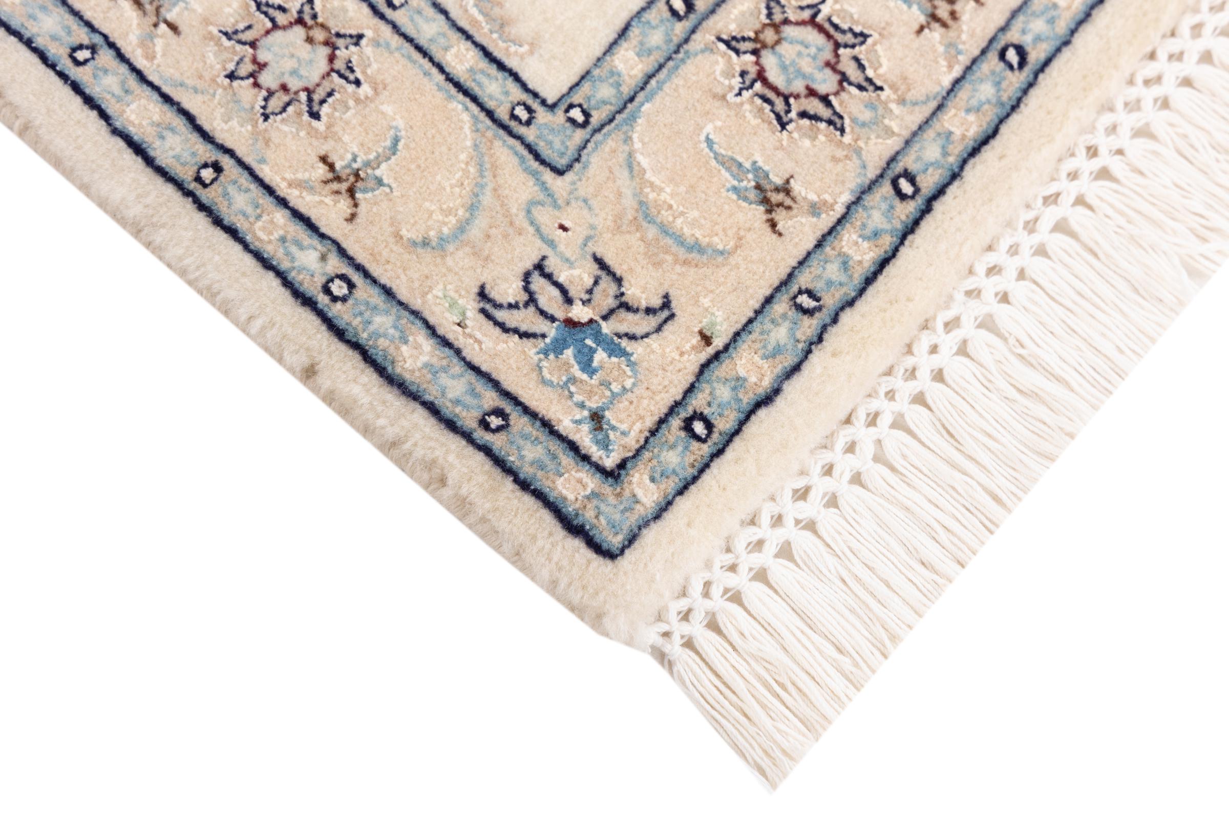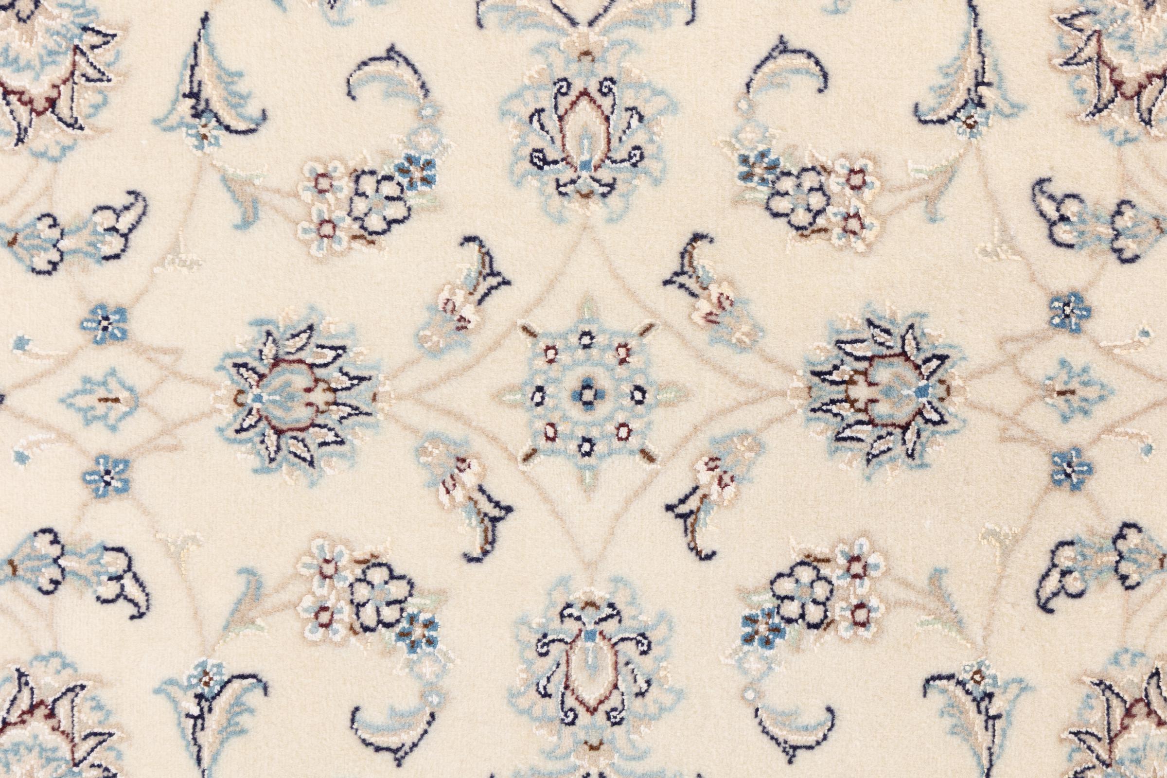Ez a Nain szönyeg, mint 9La minösített. A kiváló minöség, a szép dizájn, a kanyargós minták minden vevöt elbüvölnek. Ez a Perzsa szönyeg nevével azonos városból Nain-ból, mely a Dascht-e-Kavir sivatag nyugati szélén fekszik, magas minöségü gyapjúból és természetes selyemböl készült.