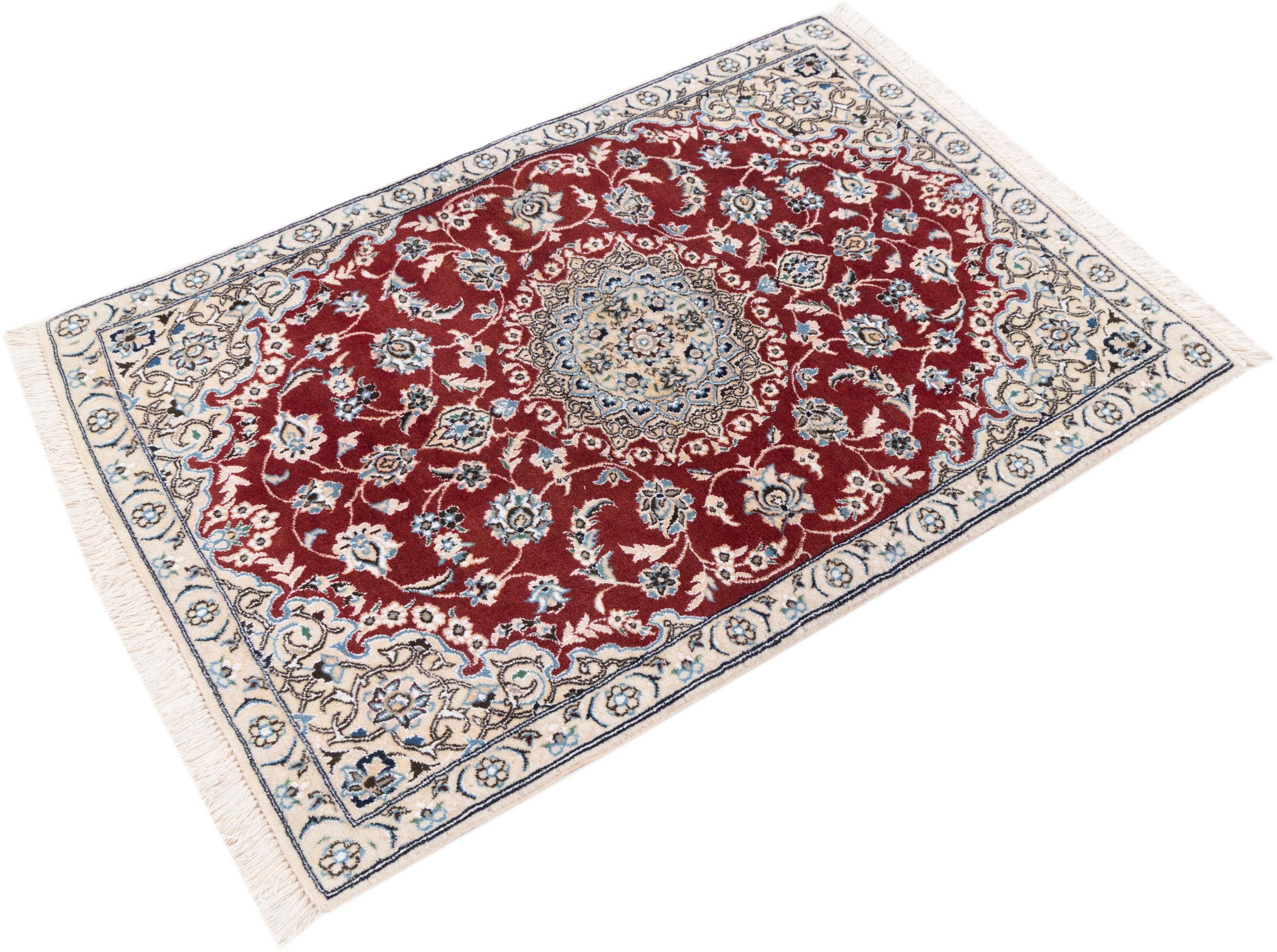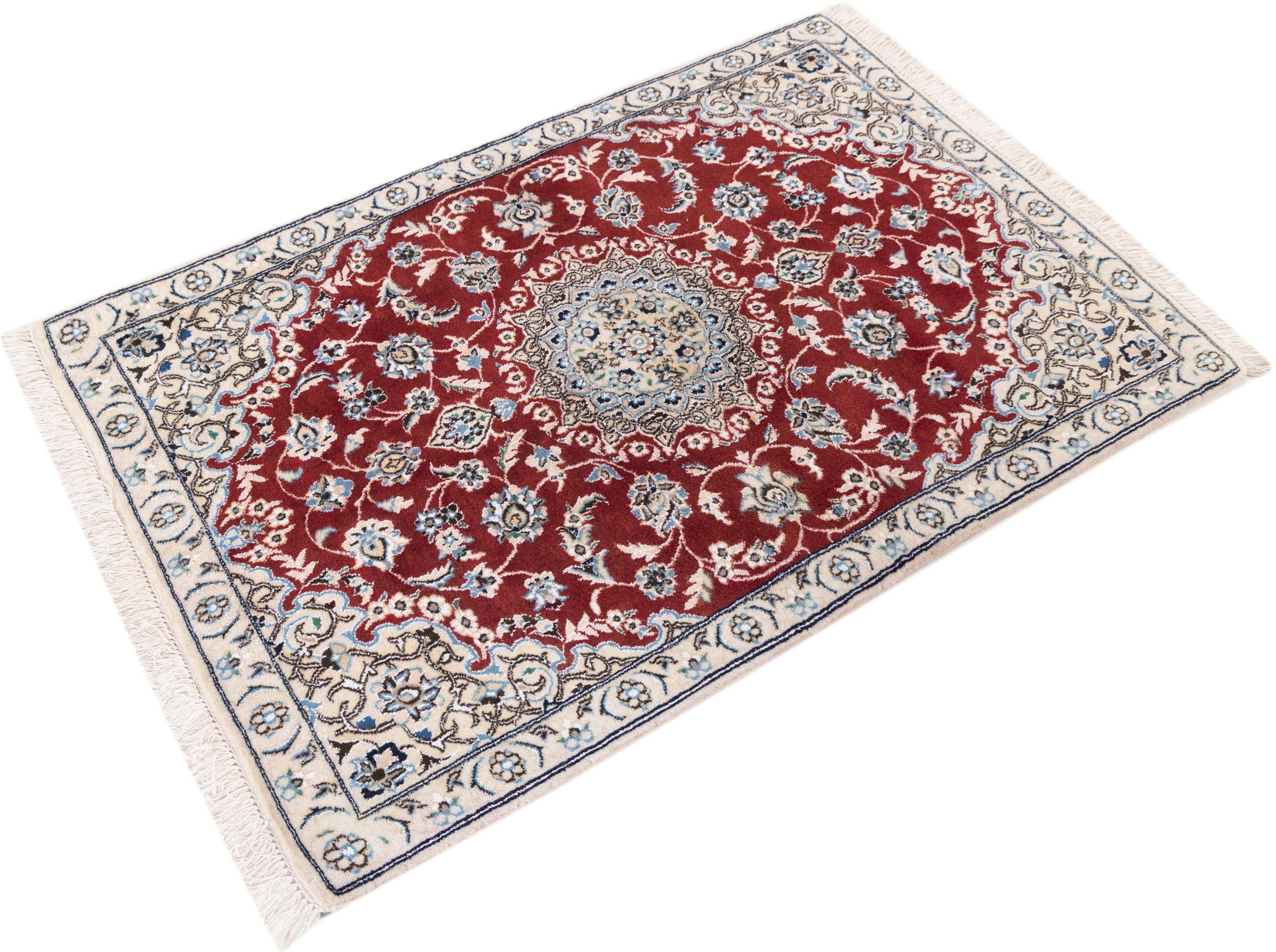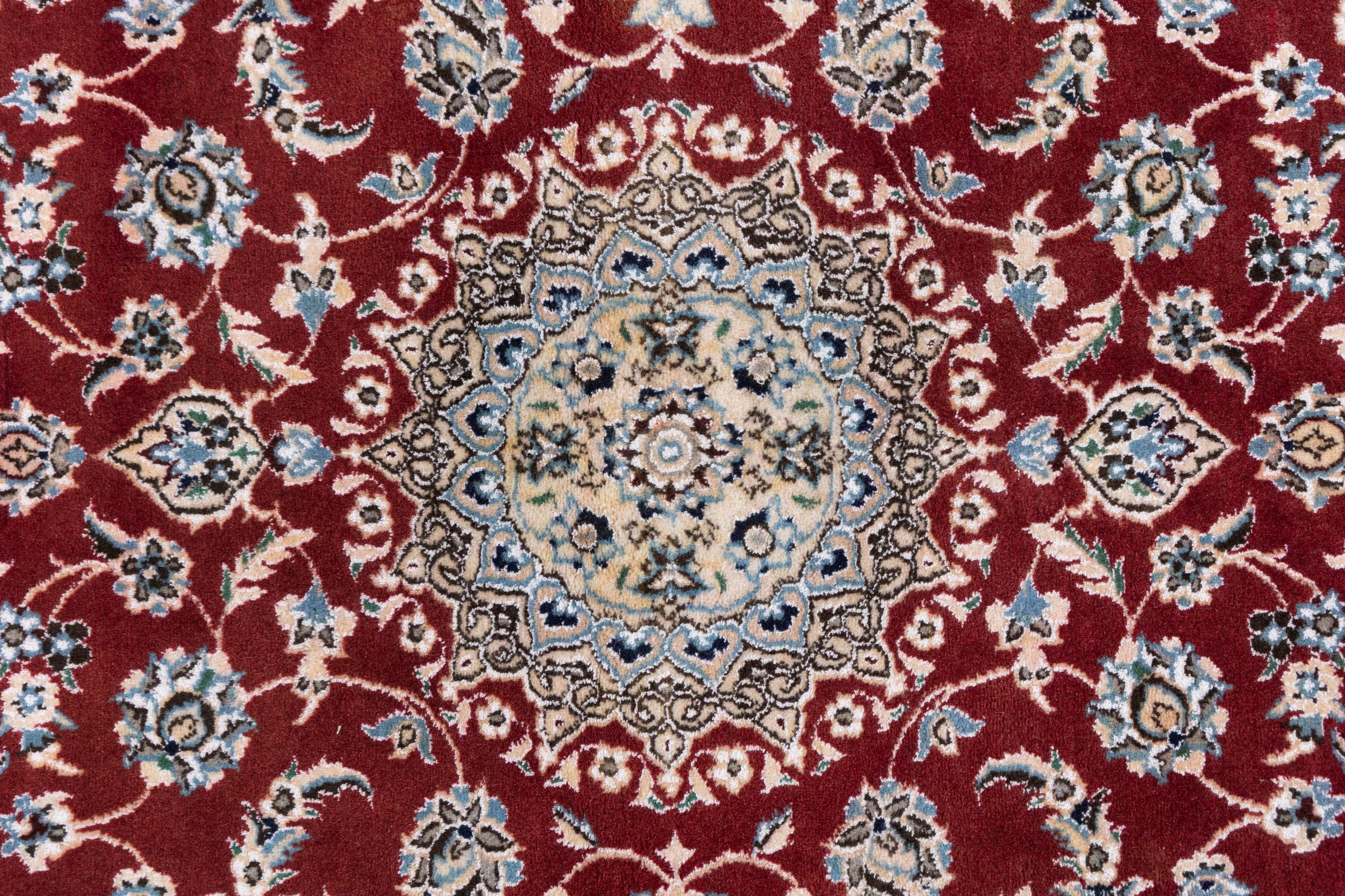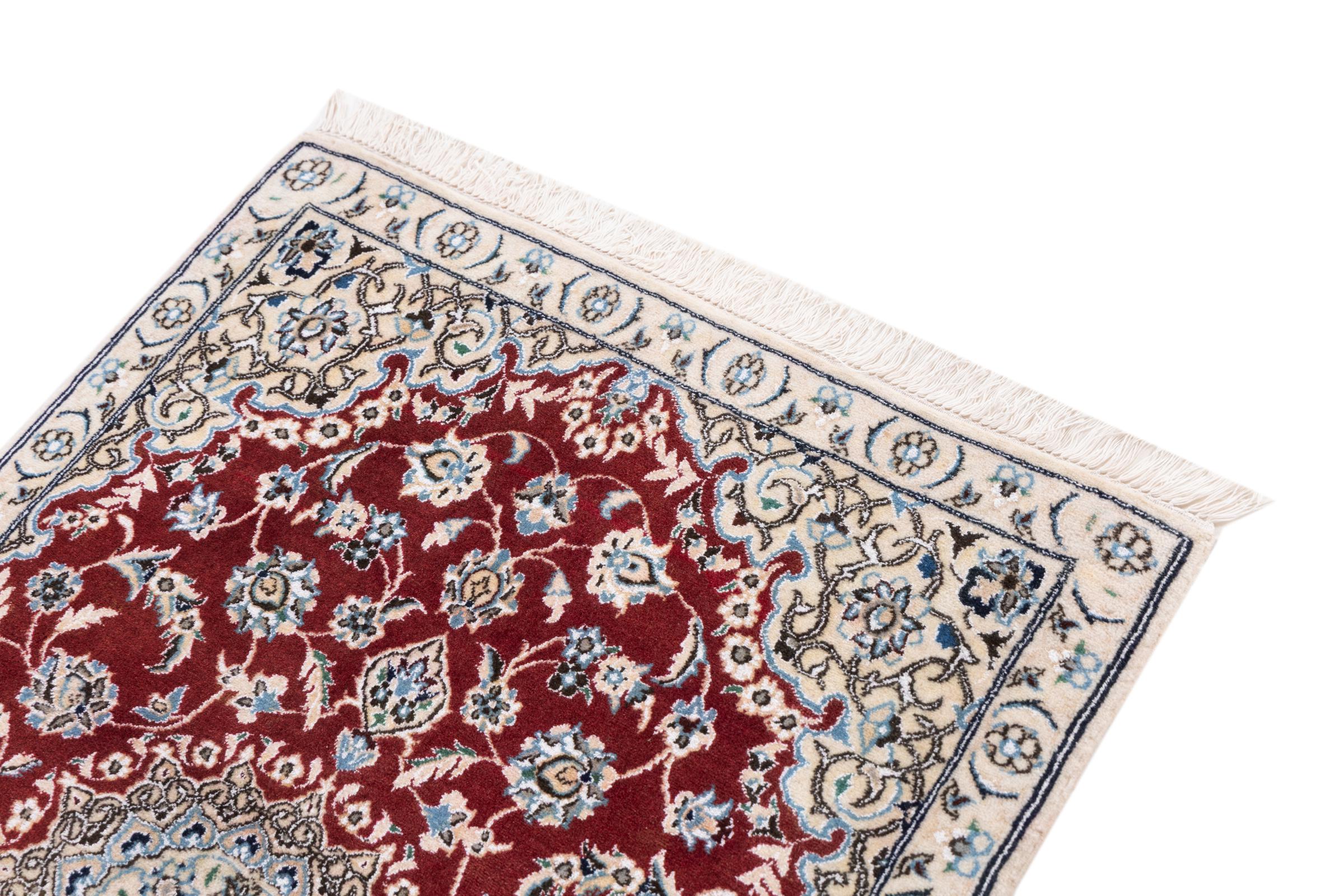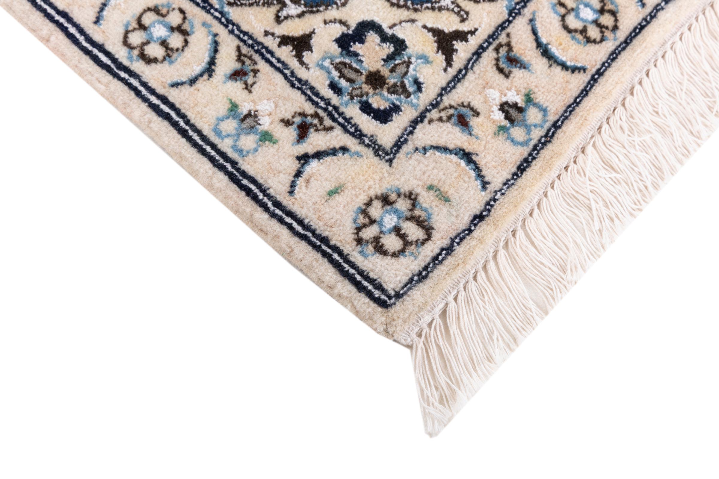 Ez a Nain szönyeg, mint 9La minösített. A kiváló minöség, a szép dizájn, a kanyargós minták minden vevöt elbüvölnek. Ez a Perzsa szönyeg nevével azonos városból Nain-ból, mely a Dascht-e-Kavir sivatag nyugati szélén fekszik, magas minöségü gyapjúból és természetes selyemböl készült.
