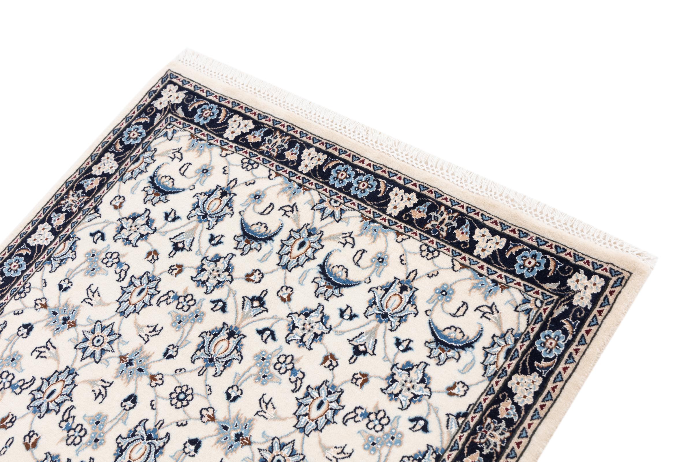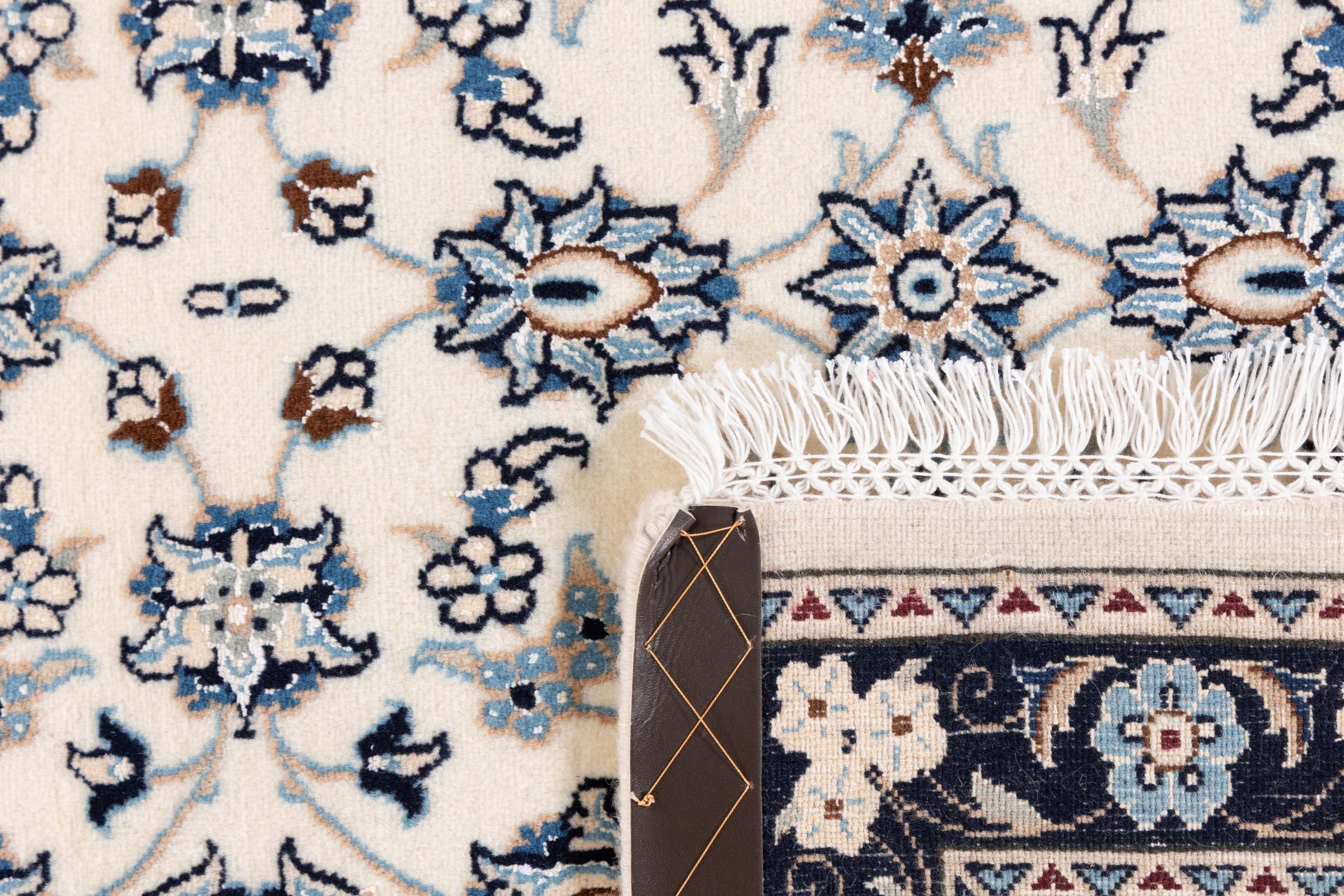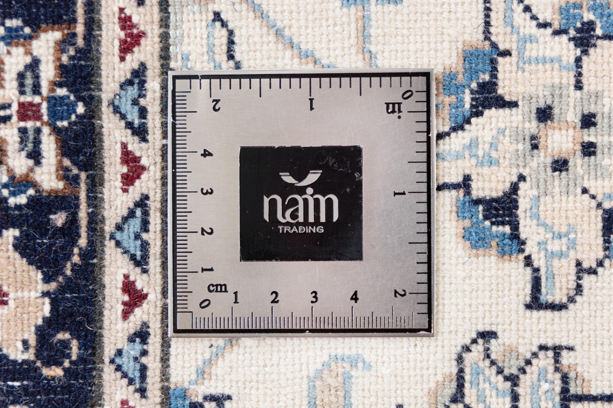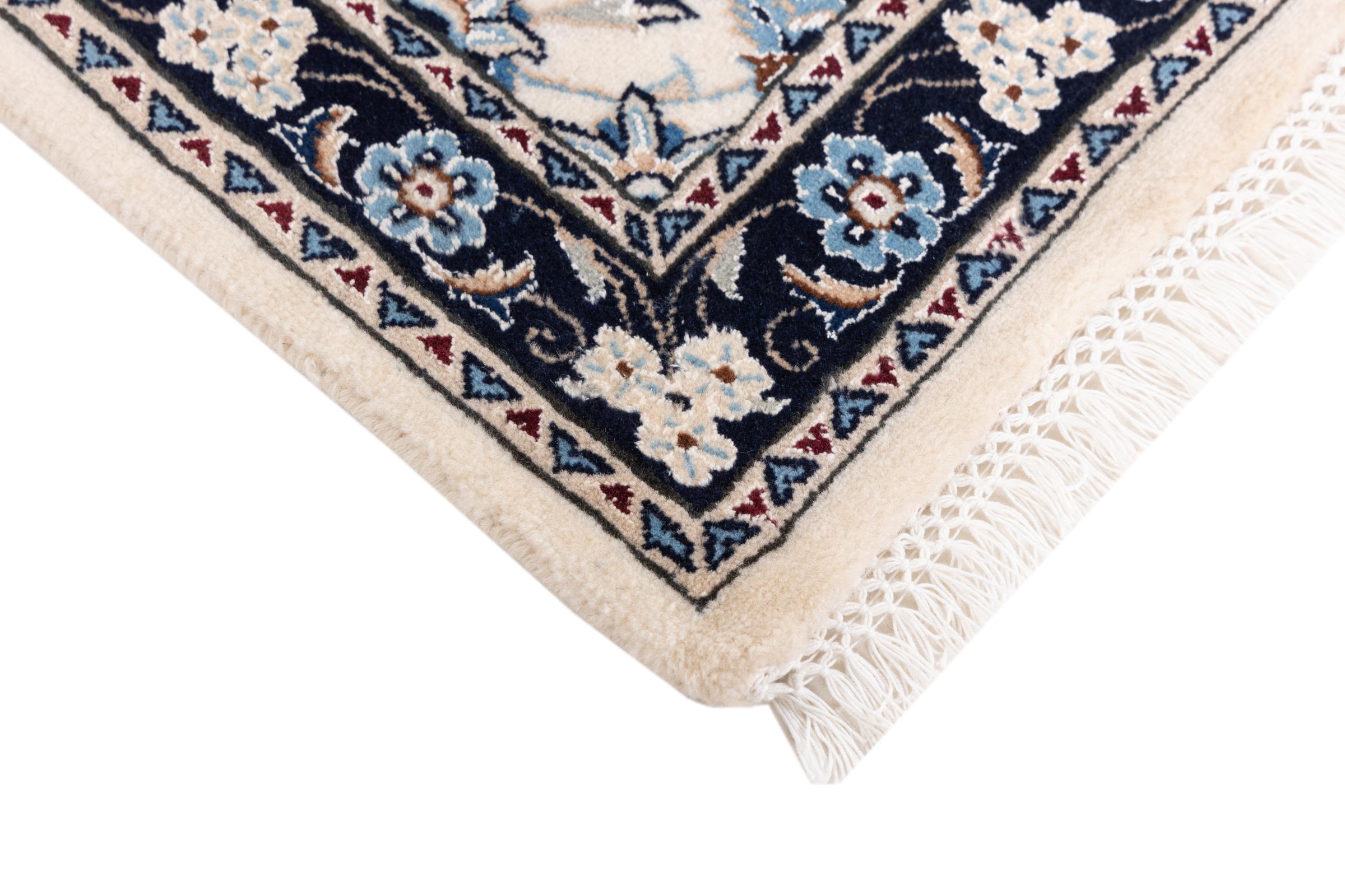 Ez a Nain szönyeg, mint 9La minösített. A kiváló minöség, a szép dizájn, a kanyargós minták minden vevöt elbüvölnek. Ez a Perzsa szönyeg nevével azonos városból Nain-ból, mely a Dascht-e-Kavir sivatag nyugati szélén fekszik, magas minöségü gyapjúból és természetes selyemböl készült.