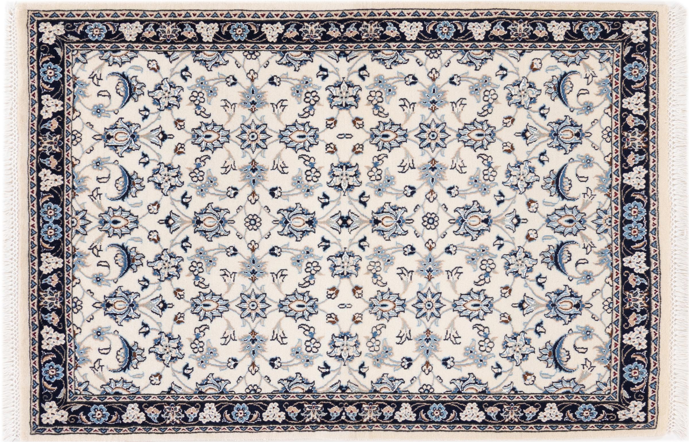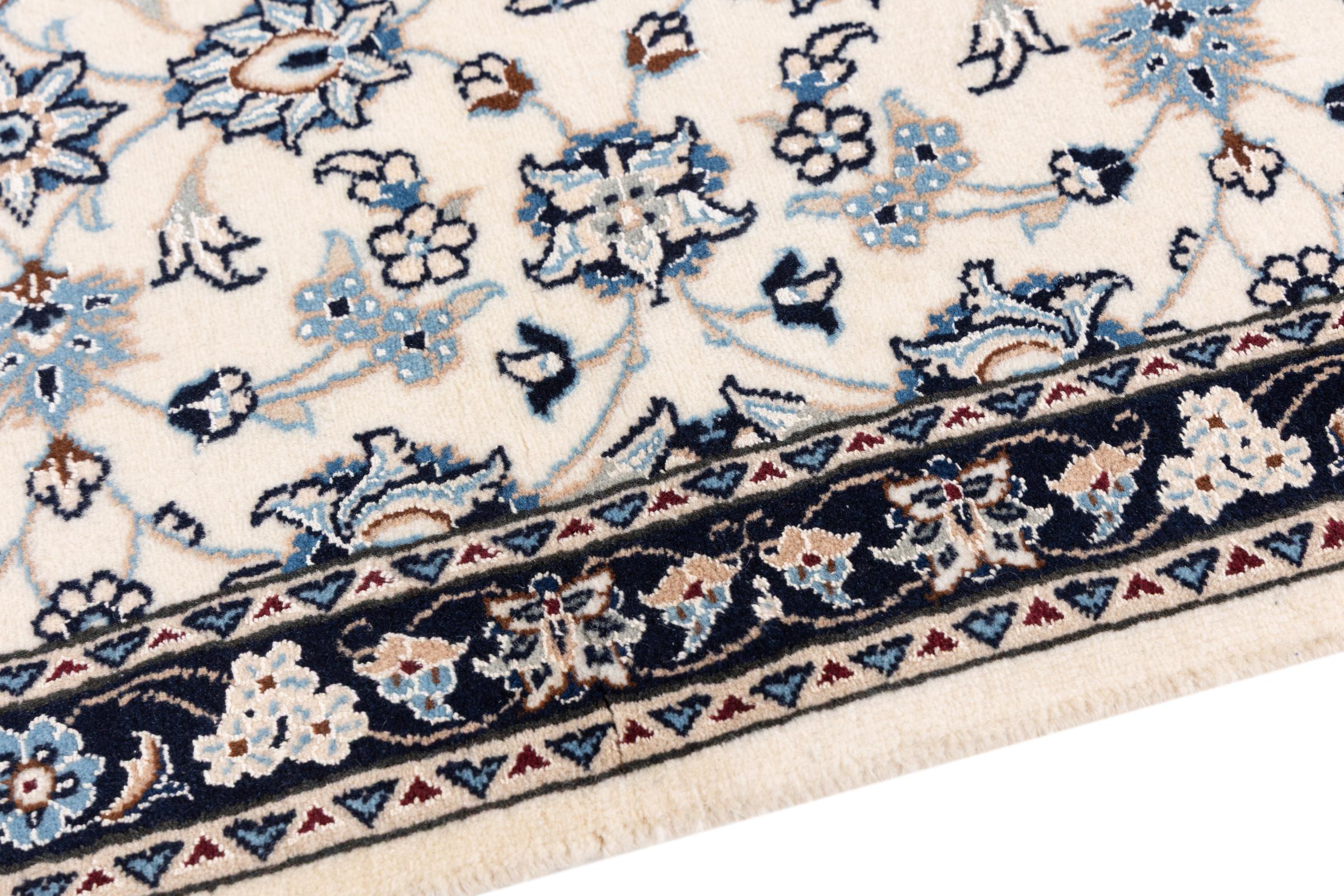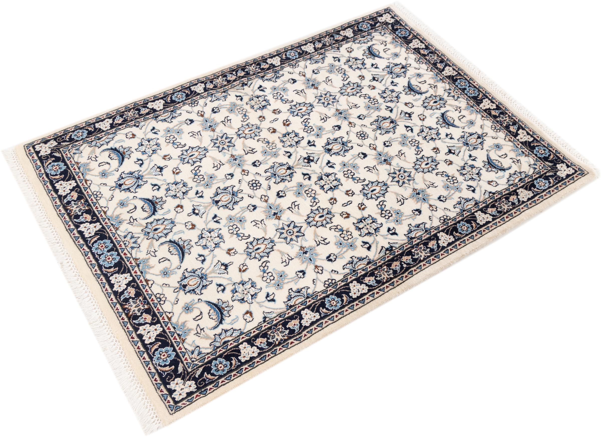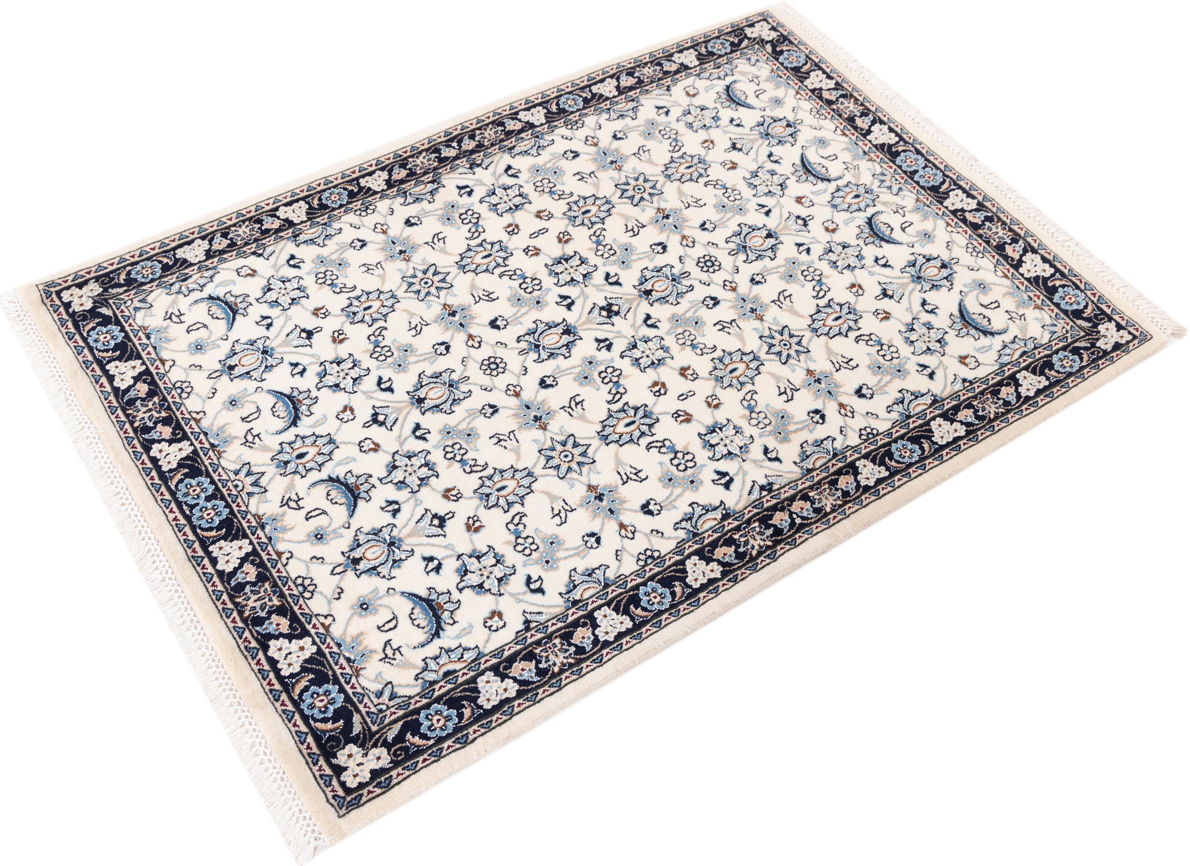 Ez a Nain szönyeg, mint 9La minösített. A kiváló minöség, a szép dizájn, a kanyargós minták minden vevöt elbüvölnek. Ez a Perzsa szönyeg nevével azonos városból Nain-ból, mely a Dascht-e-Kavir sivatag nyugati szélén fekszik, magas minöségü gyapjúból és természetes selyemböl készült.