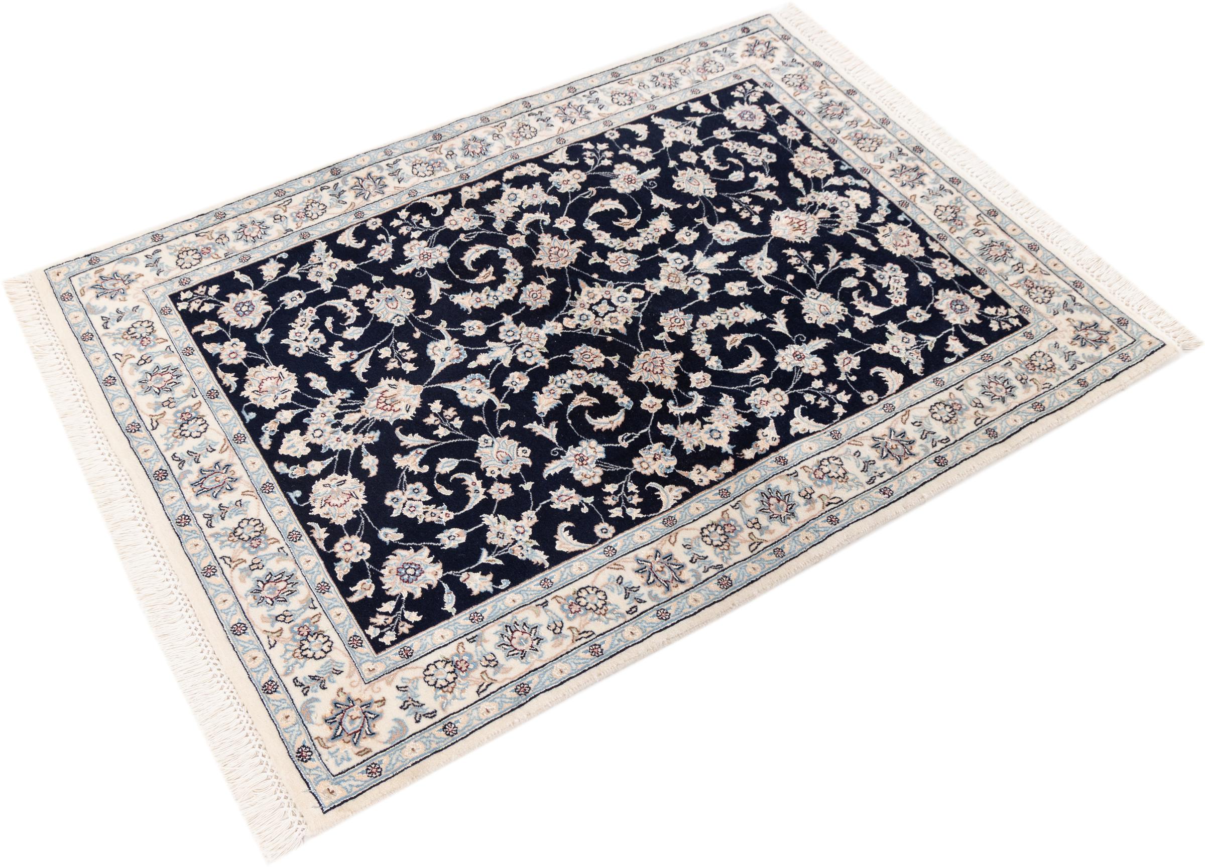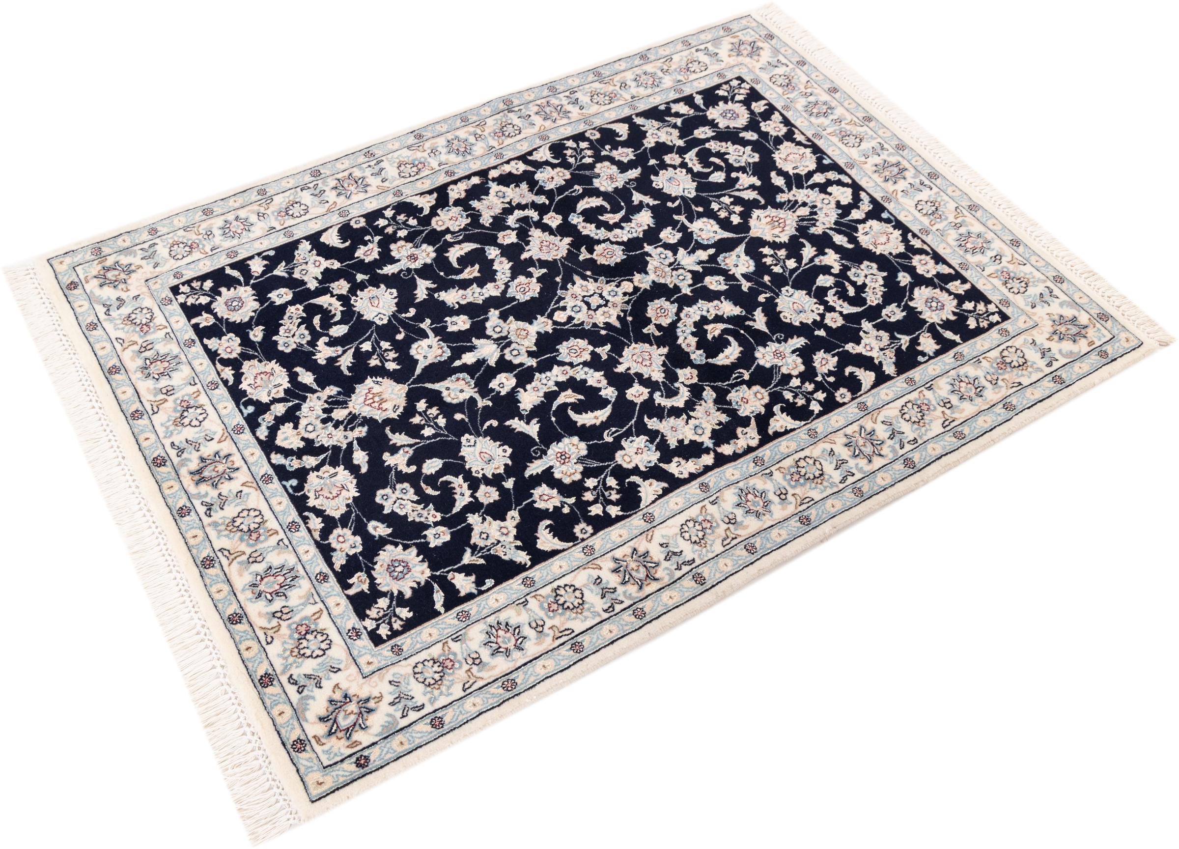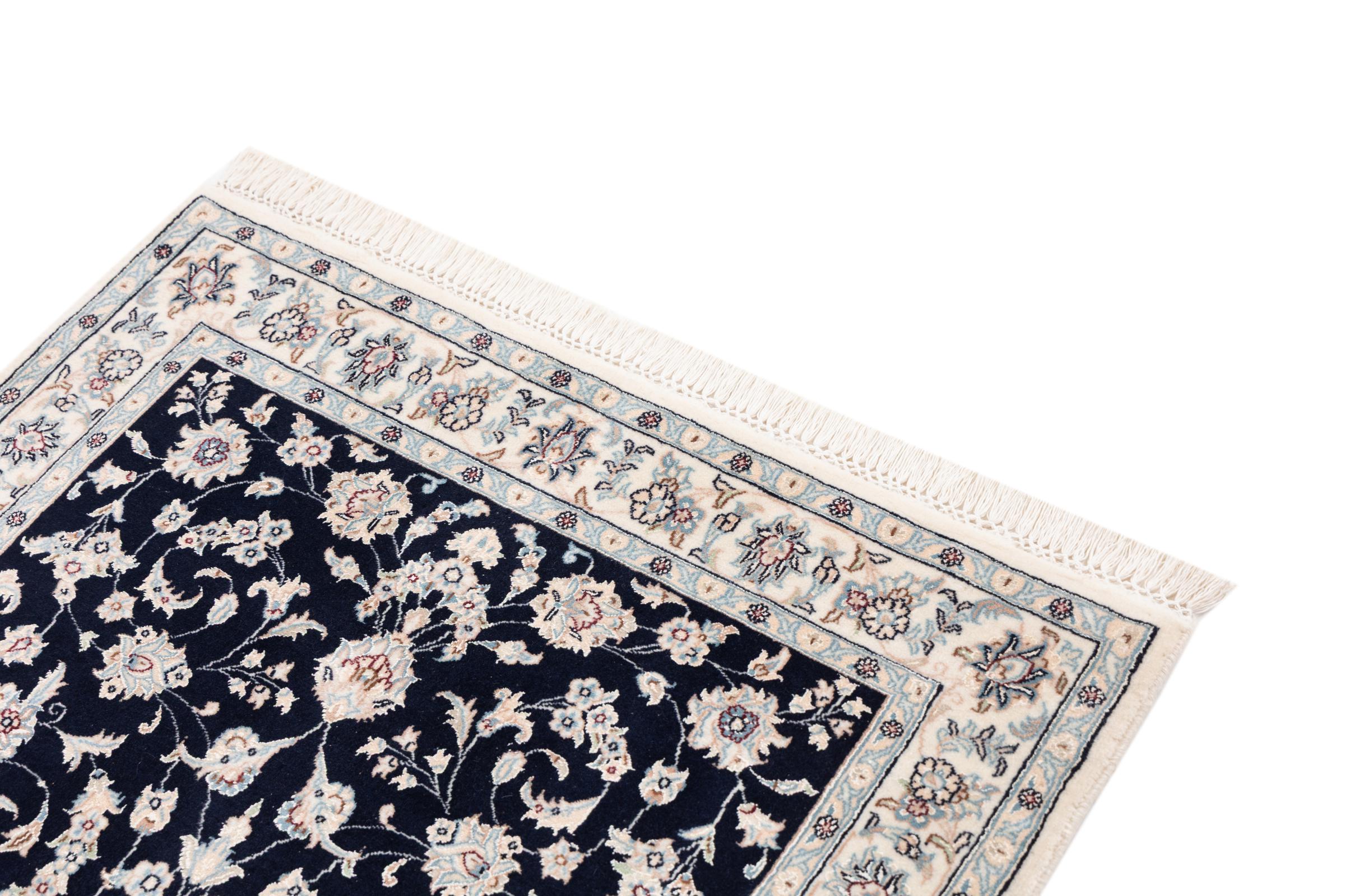 Ez a Nain szönyeg, mint 9La minösített. A kiváló minöség, a szép dizájn, a kanyargós minták minden vevöt elbüvölnek. Ez a Perzsa szönyeg nevével azonos városból Nain-ból, mely a Dascht-e-Kavir sivatag nyugati szélén fekszik, magas minöségü gyapjúból és természetes selyemböl készült.