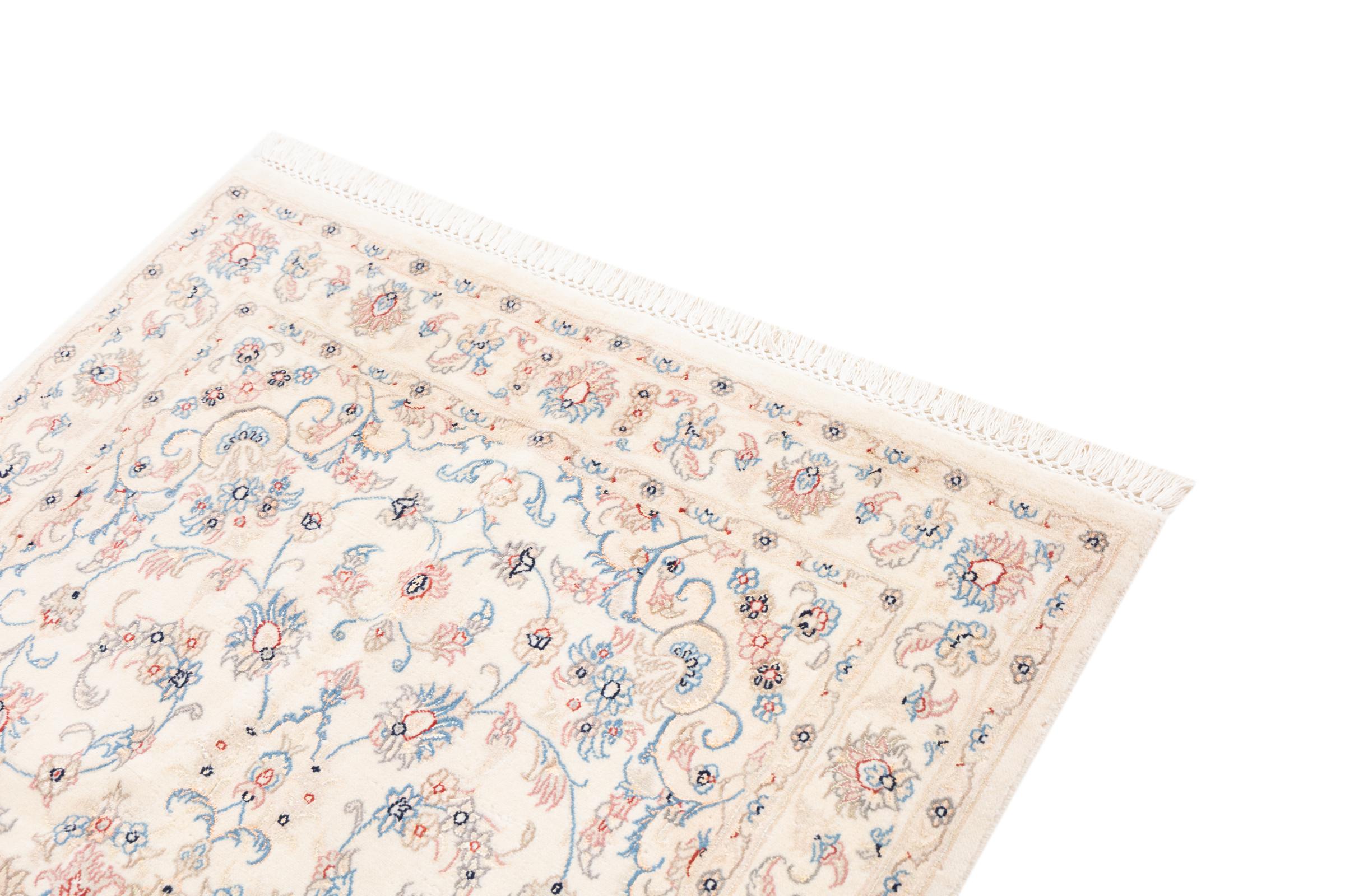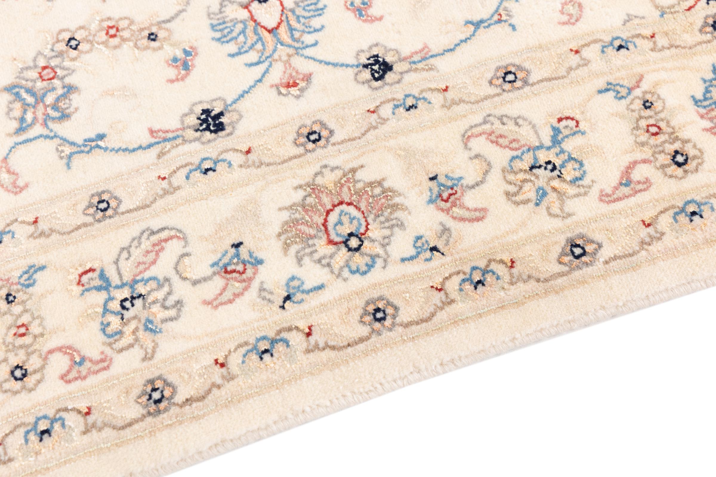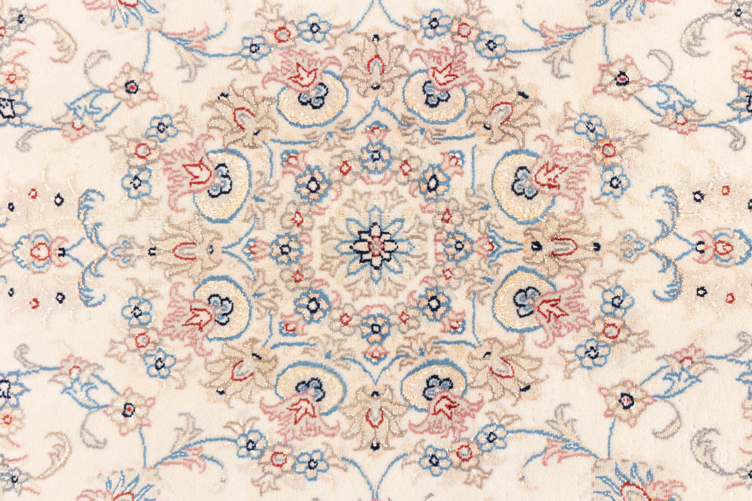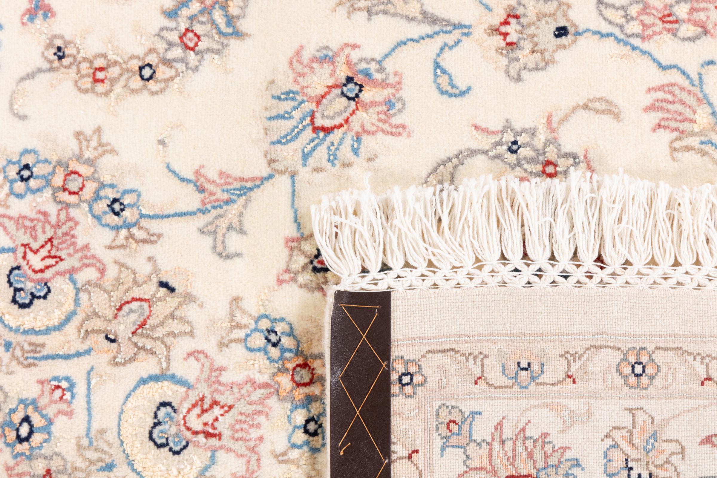 Ez a Nain szönyeg, mint 9La minösített. A kiváló minöség, a szép dizájn, a kanyargós minták minden vevöt elbüvölnek. Ez a Perzsa szönyeg nevével azonos városból Nain-ból, mely a Dascht-e-Kavir sivatag nyugati szélén fekszik, magas minöségü gyapjúból és természetes selyemböl készült.