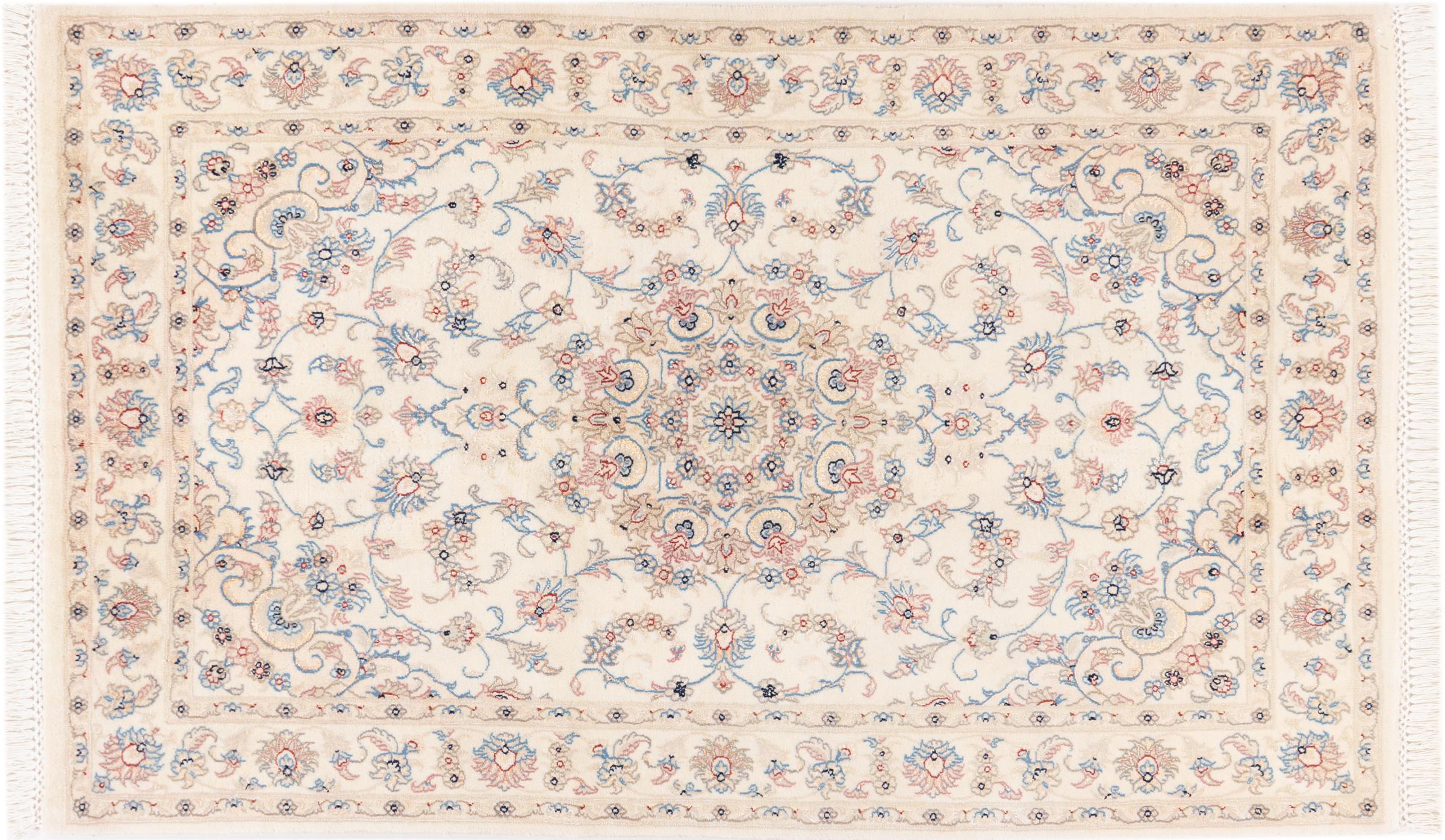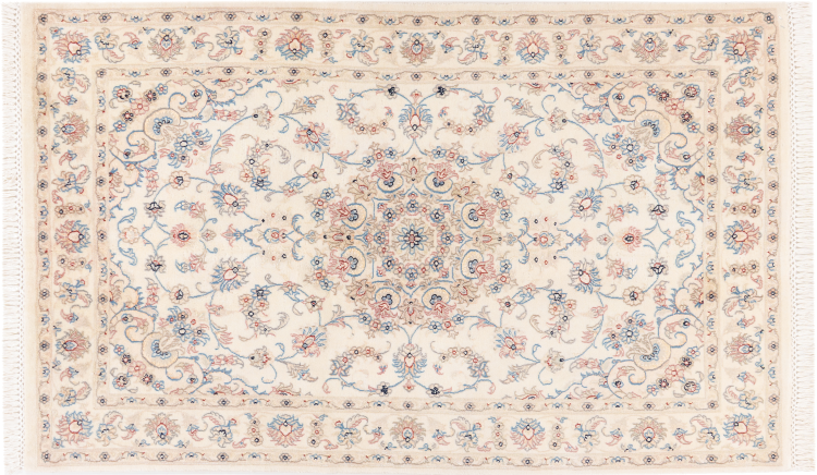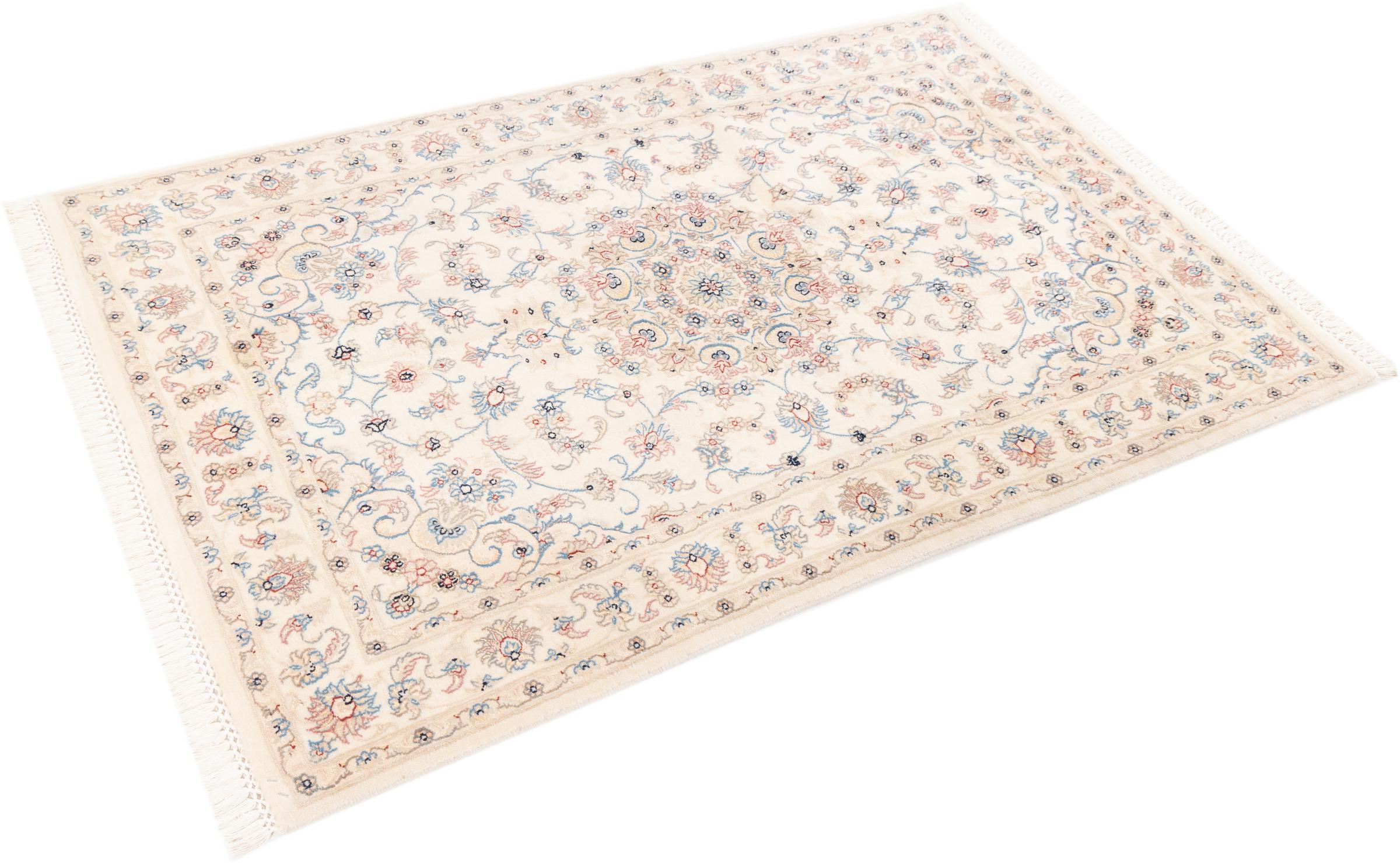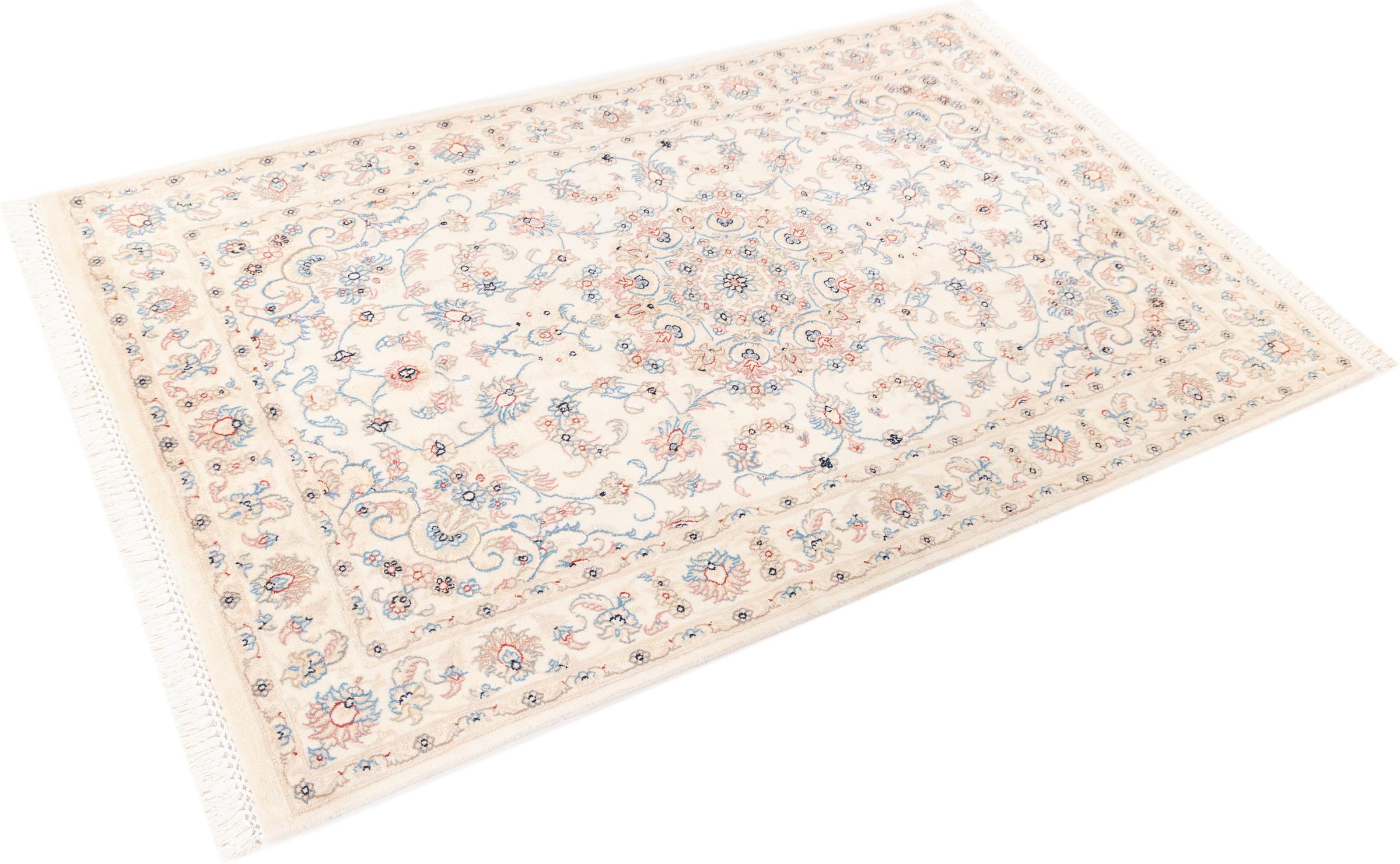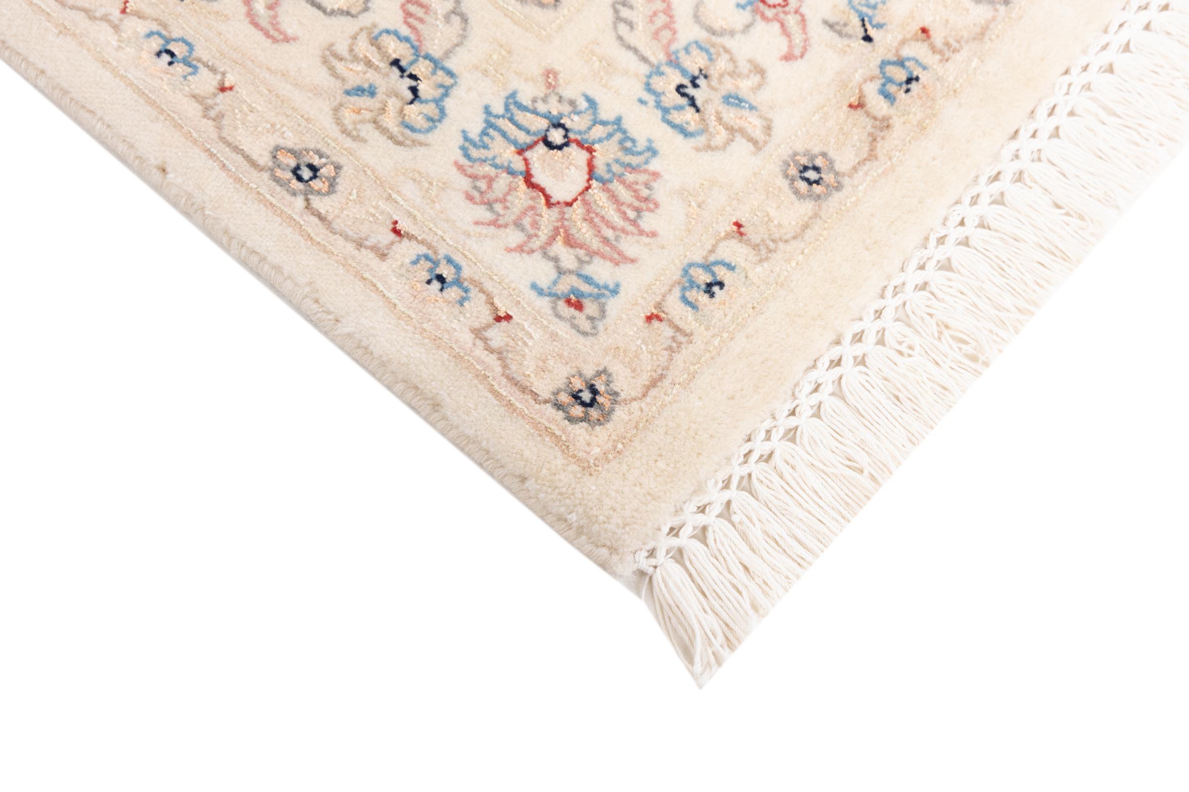 Ez a Nain szönyeg, mint 9La minösített. A kiváló minöség, a szép dizájn, a kanyargós minták minden vevöt elbüvölnek. Ez a Perzsa szönyeg nevével azonos városból Nain-ból, mely a Dascht-e-Kavir sivatag nyugati szélén fekszik, magas minöségü gyapjúból és természetes selyemböl készült.
