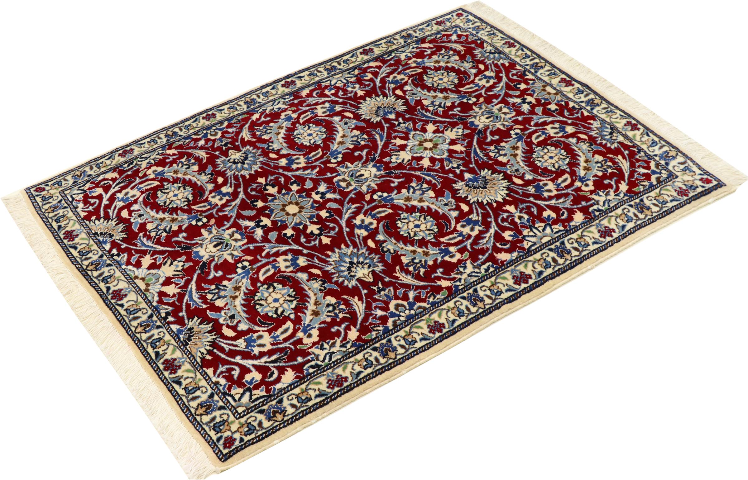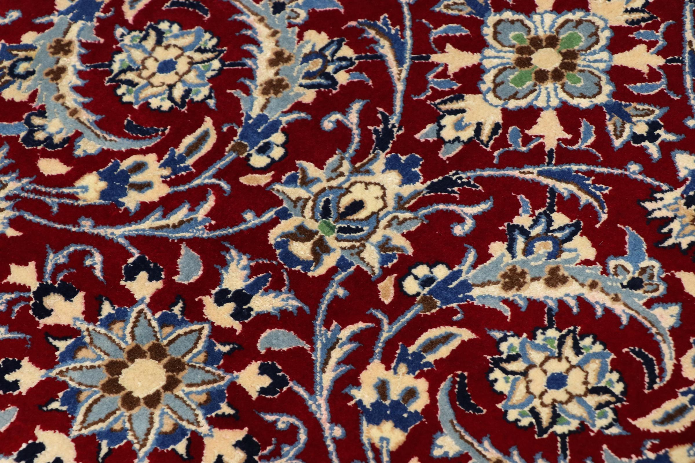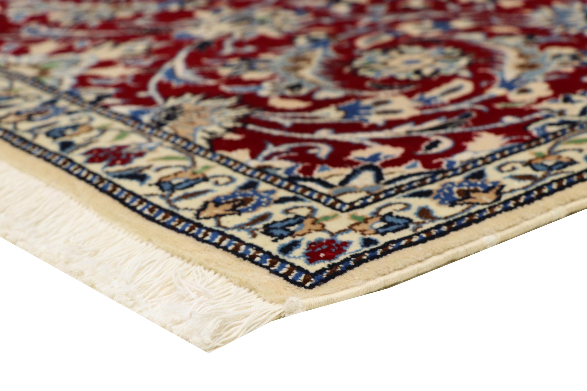 Ez a Nain szönyeg, mint 9La minösített. A kiváló minöség, a szép dizájn, a kanyargós minták minden vevöt elbüvölnek. Ez a Perzsa szönyeg nevével azonos városból Nain-ból, mely a Dascht-e-Kavir sivatag nyugati szélén fekszik, magas minöségü gyapjúból és természetes selyemböl készült.