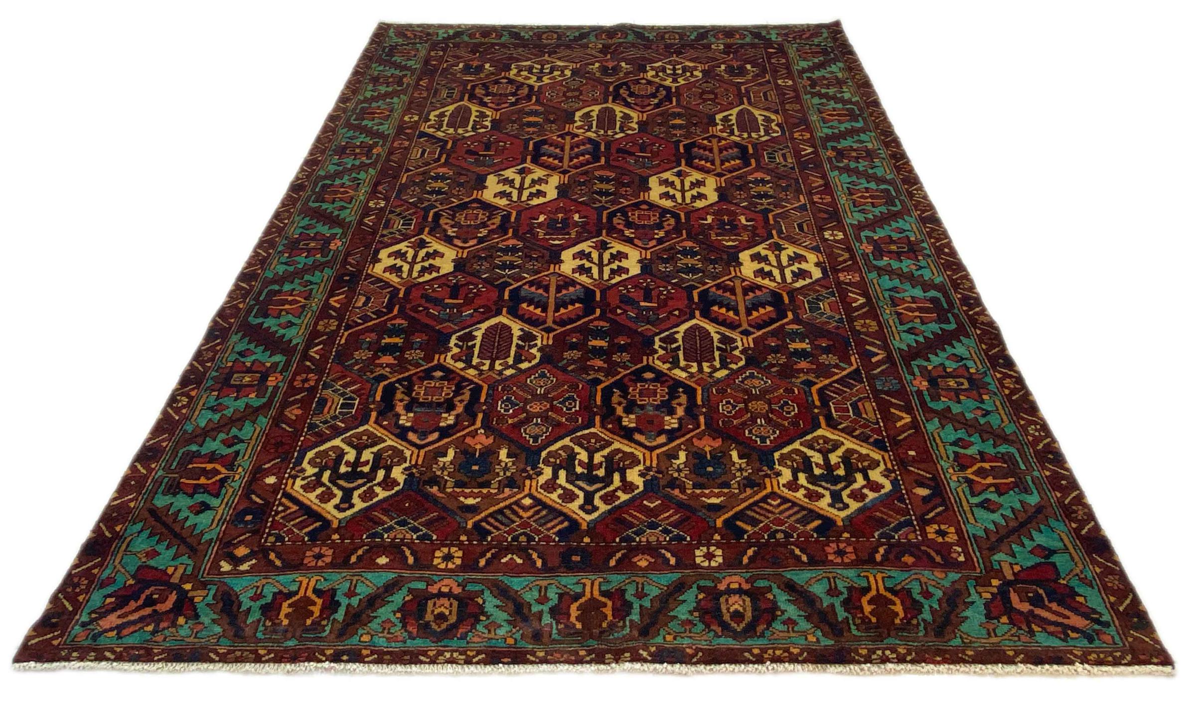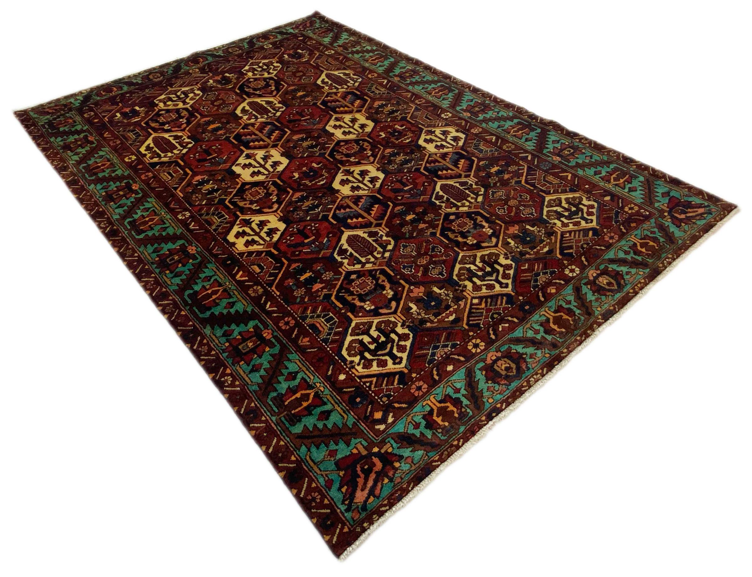 Szönyeg száma.: 318051005400007 Méret 302x211 cm Vastagság: kb. 12 mm Csomók: 128 000 - 160 000 / m² Feldolgozás: Kézzel csomózva Dísz: Kézzel sodort gyapjú Lánc Pamut Származás: Perzsia / Iran Kor Új Súlya kb. 25 kg Más néven Baktjar Készleten: Egyedi - Csak 1 van készleten
