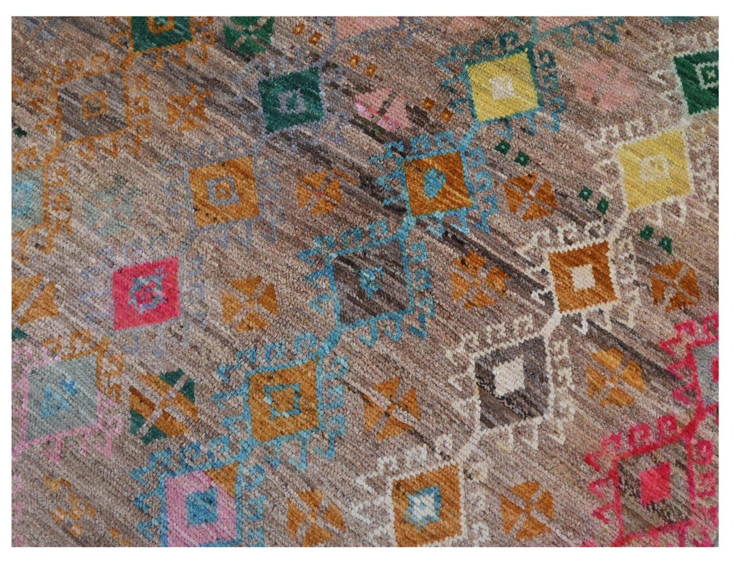 Ezt a berber Ghashghai szőnyeget kiváló minőségű gyapjú, valamint sűrű és különösen precíz szövés jellemzi. Ezért kivételesen tartós, és állandóan szilárd, de csodálatosan puha halmaza van. Kialakítása minden nap színekkel és szimbolikus mintákkal inspirál.