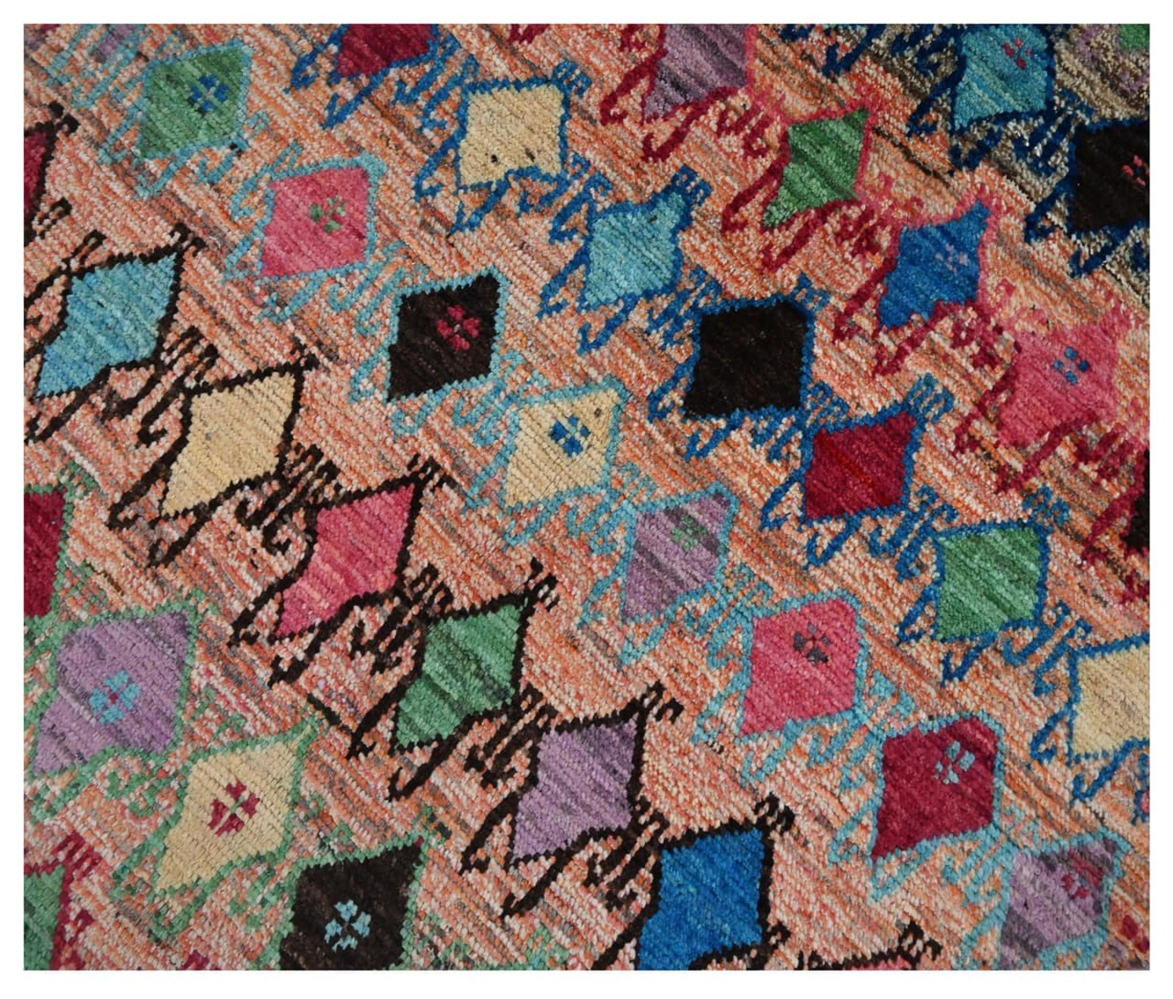 Ezt a berber Ghashghai szőnyeget kiváló minőségű gyapjú, valamint sűrű és különösen precíz szövés jellemzi. Ezért kivételesen tartós, és állandóan szilárd, de csodálatosan puha halmaza van. Kialakítása minden nap színekkel és szimbolikus mintákkal inspirál.