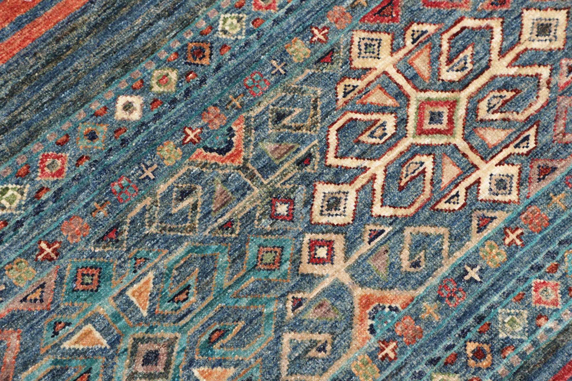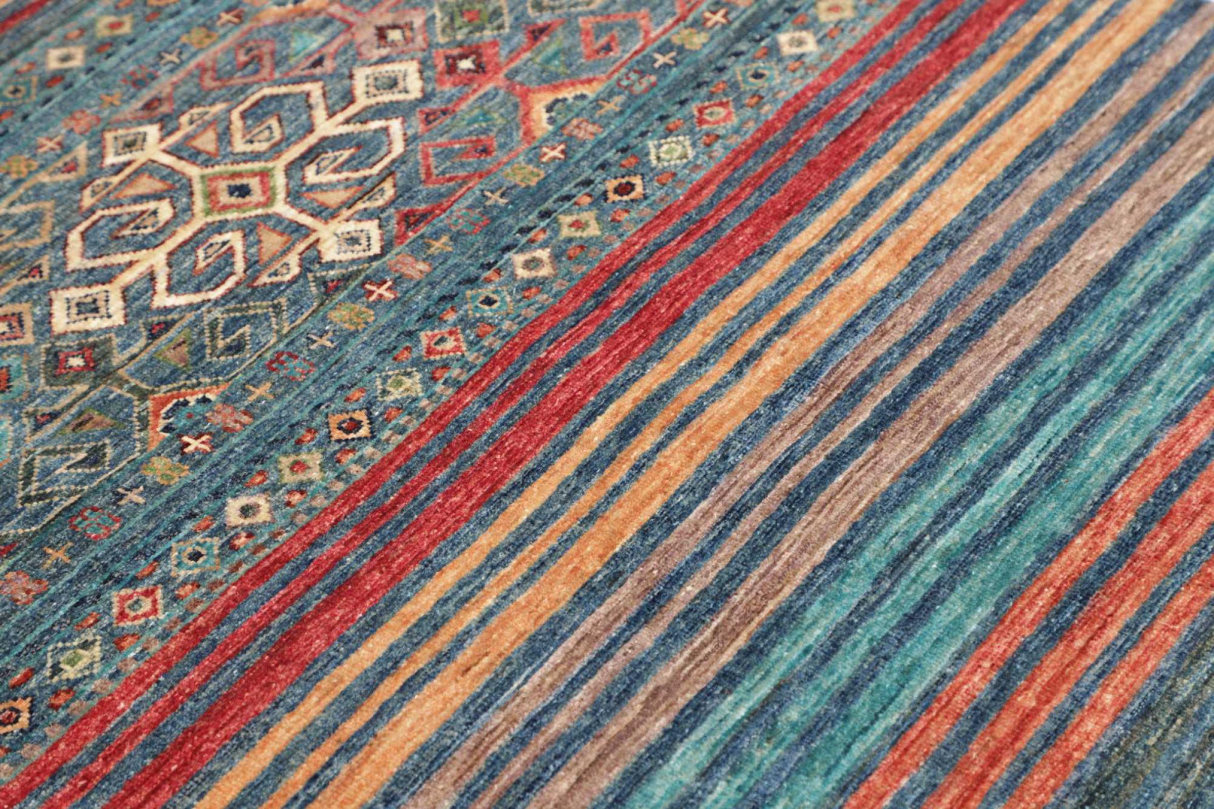 Ez a szőnyeg a kezével fonott, a legmagasabb minőségű juhargyapjából áll. Különösen Iránban (volt Perzsia), Afganisztánban és Pakisztánban a gyapjút kézzel forgatják, mielőtt a szőnyeget ténylegesen megtörték. A gyapjú évszázadok óta bizonyította magát természetes és rendkívül kopó anyagként. Többek között szennyeződés-mentes és hőszigetelő tulajdonságokkal rendelkezik. Ugyanakkor a gyapjú páratlanul puha és természetes fényt kölcsönöz.