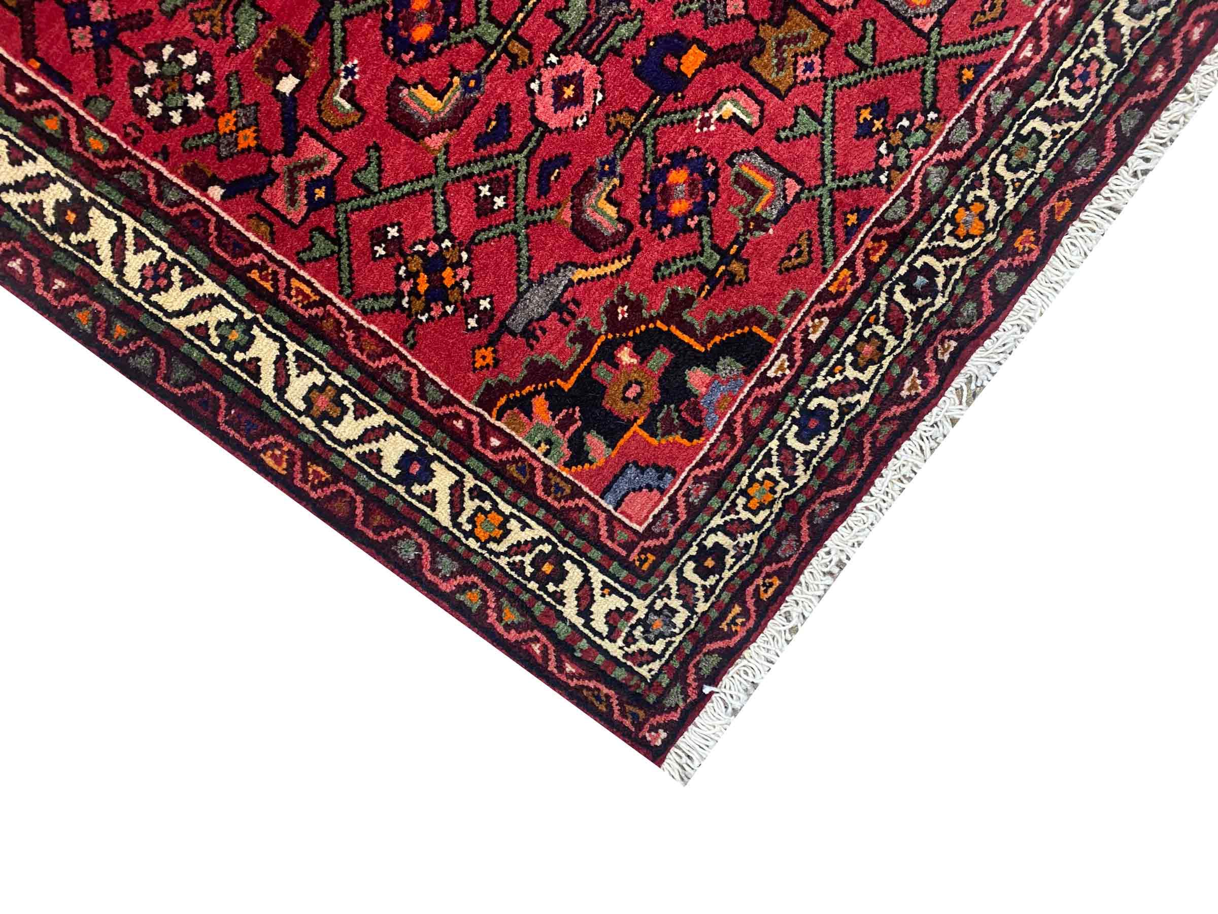 Ez a kézzel szövött Hosseinabad hagyományos perzsai szönyeg müvészetröl tanúskodik. A kis városban Hosseinabad-ban, Hamadan mellett készült. Ezen régió szönyegeinek magas minösége lenyügözö. Érezzen egy kis Orientet lábai alatt ebben a szép szönyegben Hosseinabad-ból.