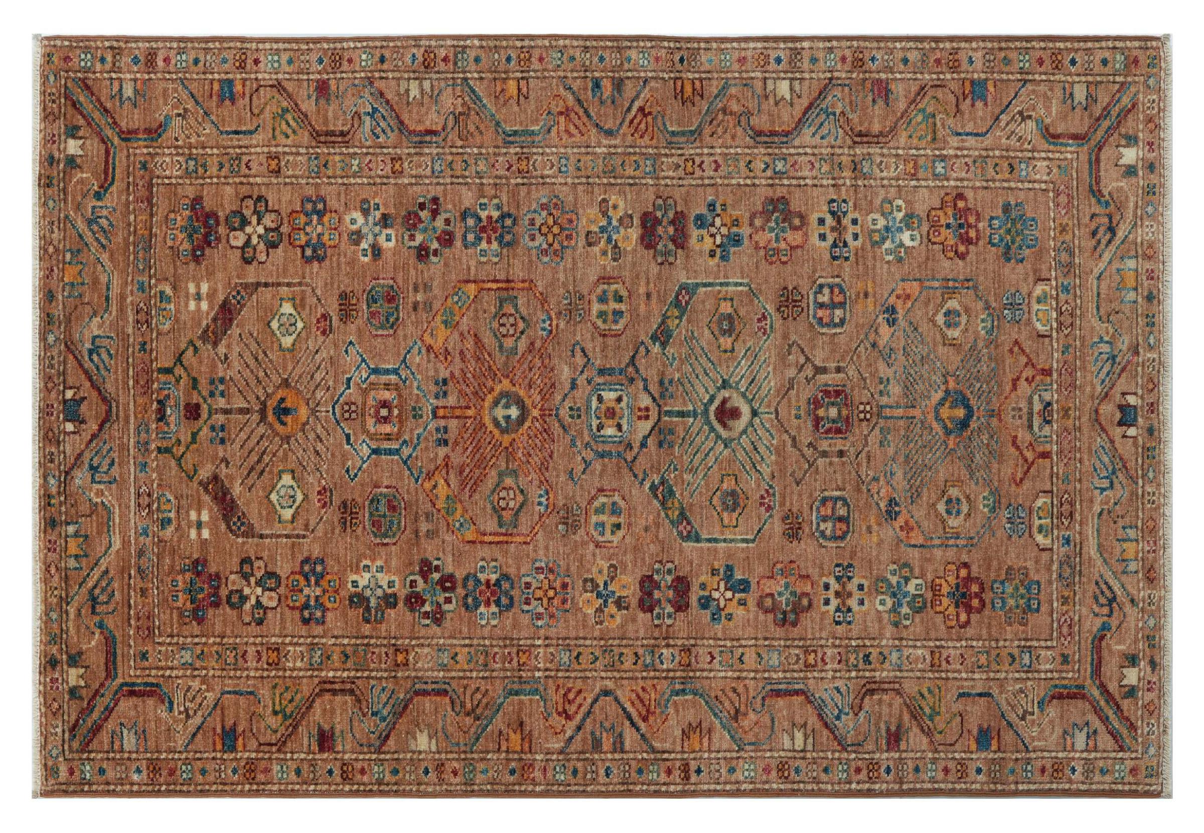 A Kazak területi szőnyegek tartós, élénk gyapjúszőnyegek, amelyek egyedi geometriai mintáikról, kiegyensúlyozott színeikről és kivételes kivitelezésükről ismertek. Lebilincselő és kulturálisan gazdag légkört teremtenek terében. Eredetileg a Kaukázusból származnak, és az egyik legrégebbi fajta szőnyeg, ma főként kazahok készítik Afganisztánban és Pakisztánban. Egy antik kazak szőnyeg nagyon értékes lehet a gyűjtők számára.