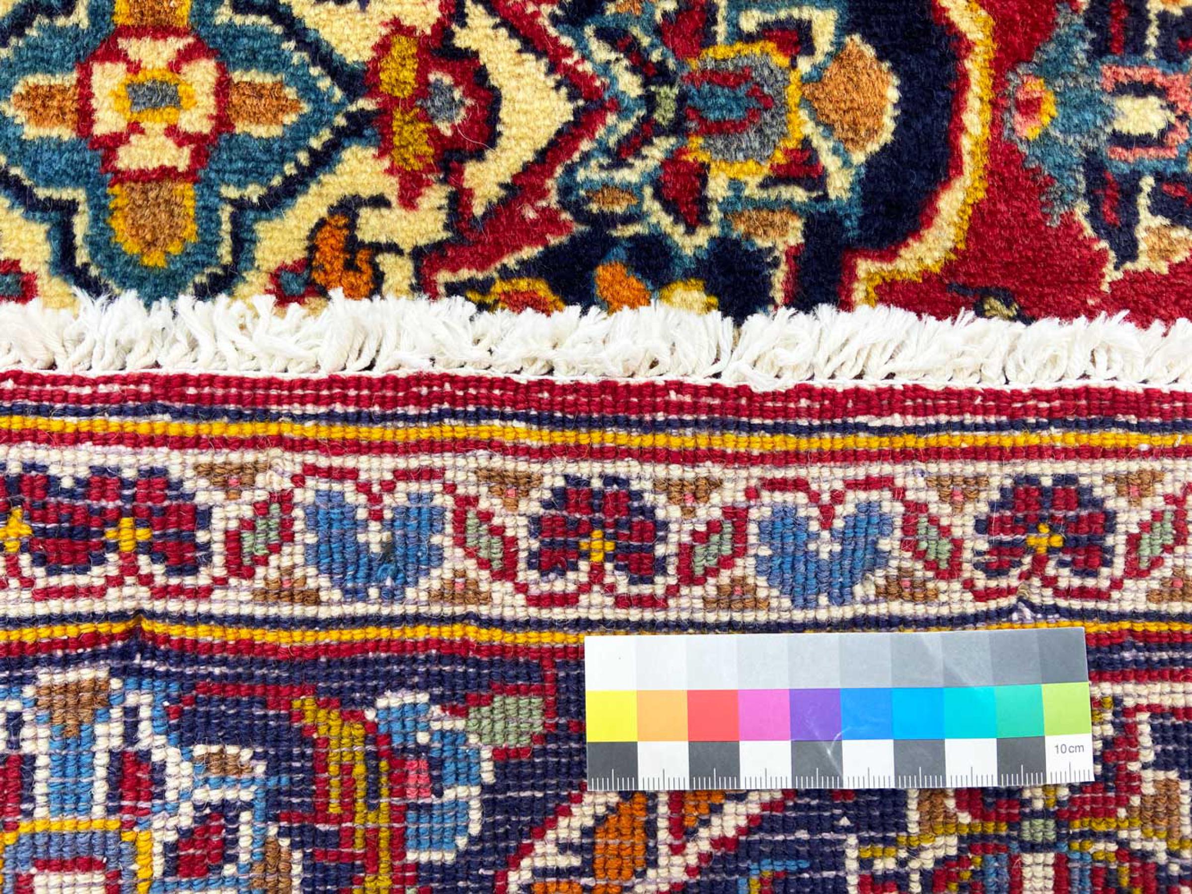 Ez a Kashan (Keshan) szőnyeg a nagyon hagyományos és tipikus perzsa dizájn szerint készült, gyönyörű díszekkel. A Kashan szőnyegek rendkívül népszerűek rendkívül elegáns kialakításuk miatt. Ezek a szőnyegek Kashanból, az ősi Selyemút városából származnak. Ezt a szőnyeget kézzel csomózták kiváló minőségű juhgyapjúból, és egyedülálló fénypont lesz otthonában.