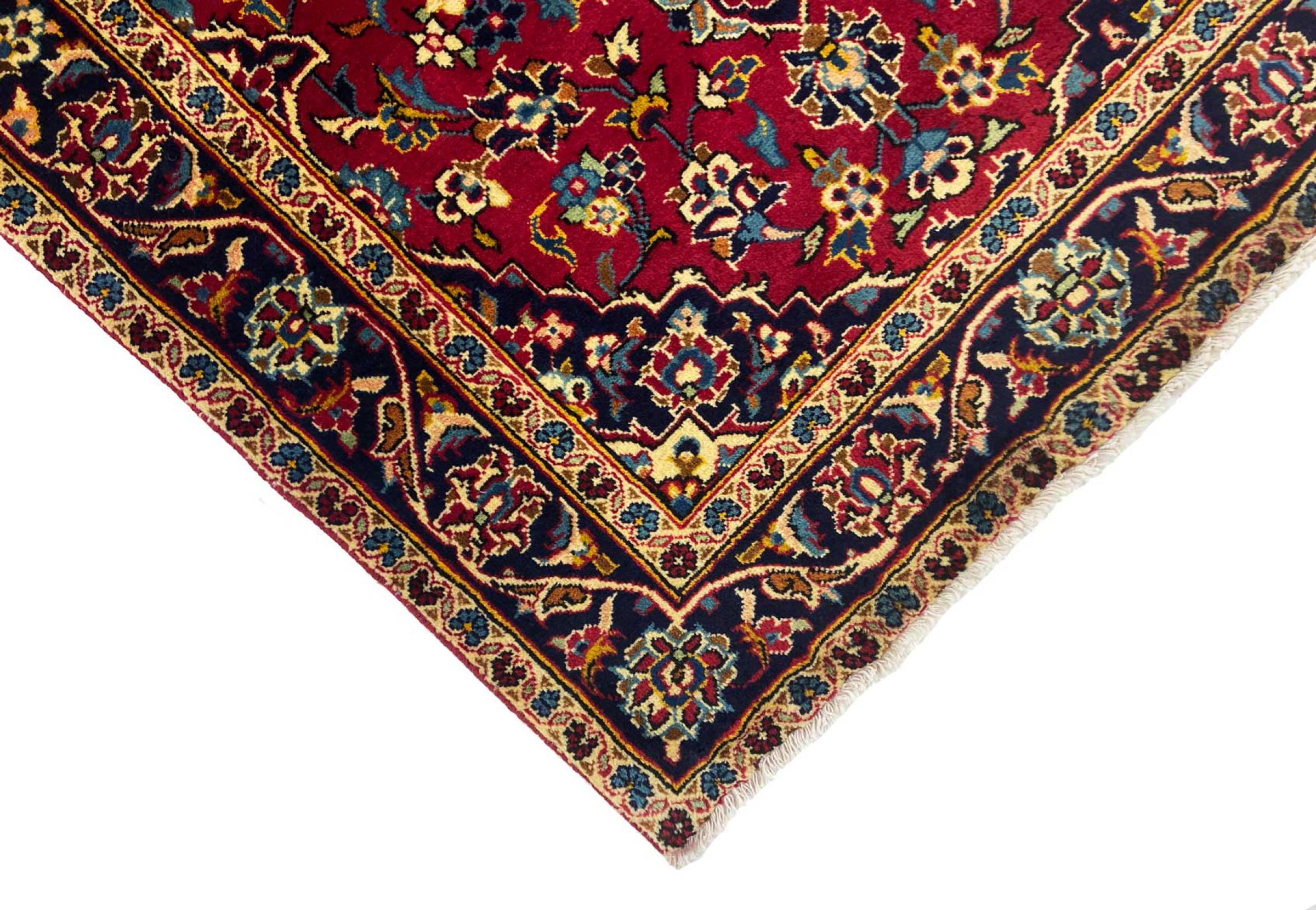 Ez a Kashan (Keshan) szőnyeg a nagyon hagyományos és tipikus perzsa dizájn szerint készült, gyönyörű díszekkel. A Kashan szőnyegek rendkívül népszerűek rendkívül elegáns kialakításuk miatt. Ezek a szőnyegek Kashanból, az ősi Selyemút városából származnak. Ezt a szőnyeget kézzel csomózták kiváló minőségű juhgyapjúból, és egyedülálló fénypont lesz otthonában.