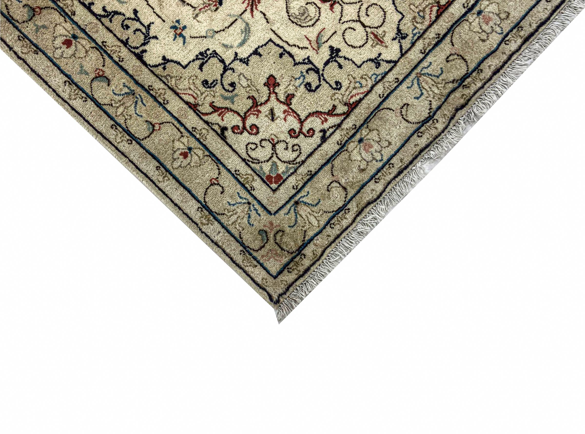 Ez a Kashan (Keshan) szőnyeg a nagyon hagyományos és tipikus perzsa dizájn szerint készült, gyönyörű díszekkel. A Kashan szőnyegek rendkívül népszerűek rendkívül elegáns kialakításuk miatt. Ezek a szőnyegek Kashanból, az ősi Selyemút városából származnak. Ezt a szőnyeget kézzel csomózták kiváló minőségű juhgyapjúból, és egyedülálló fénypont lesz otthonában.