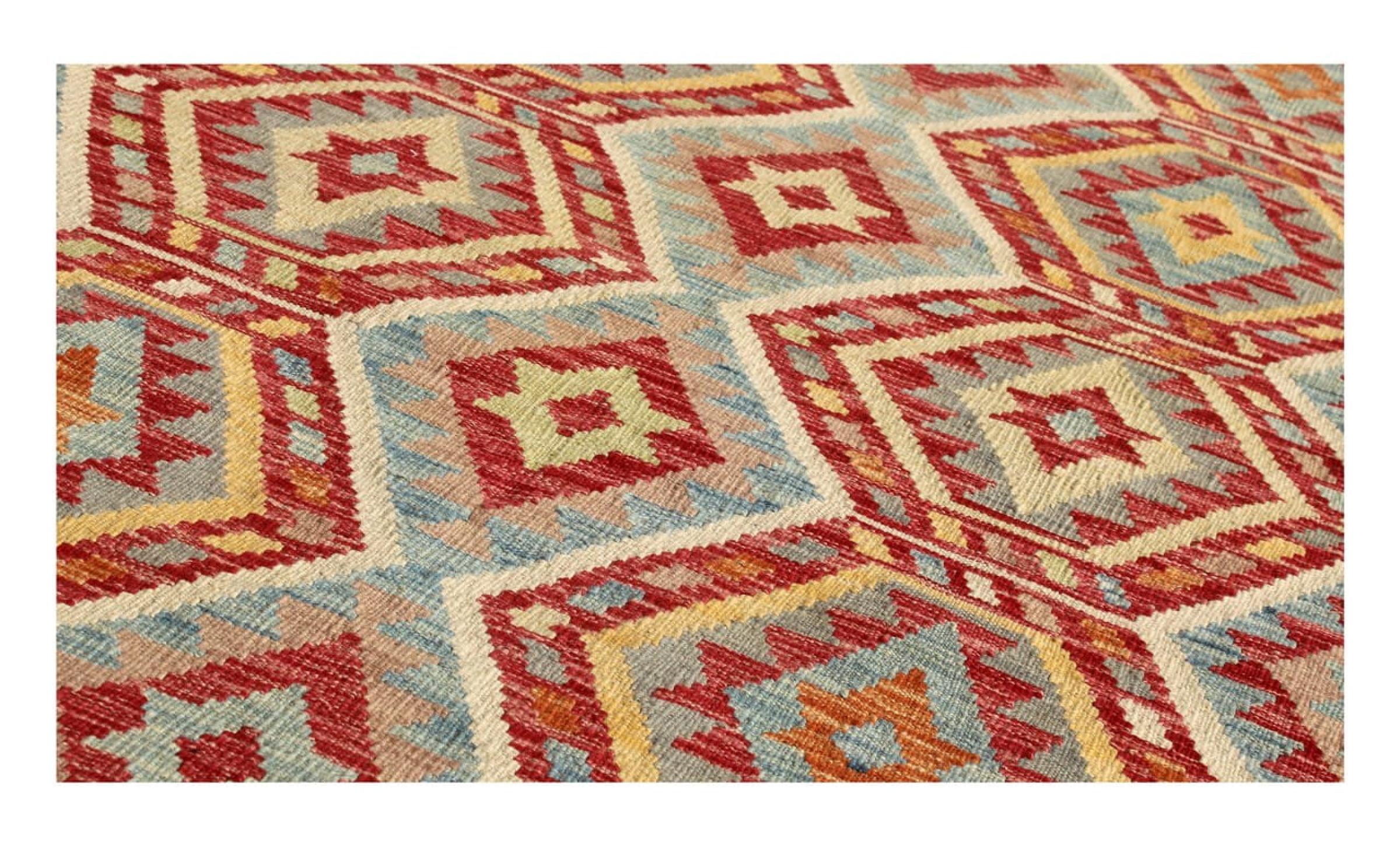 Ez a kézzel fonott Kelim-Afghan színei és tipikus mintája révén nagyon szép. Afganisztánban 100% -os gyapjúból kézzel szötték. Ehhez még robosztus, hosszú élettartamú is. Egy nyeremény Önnek és otthonának.