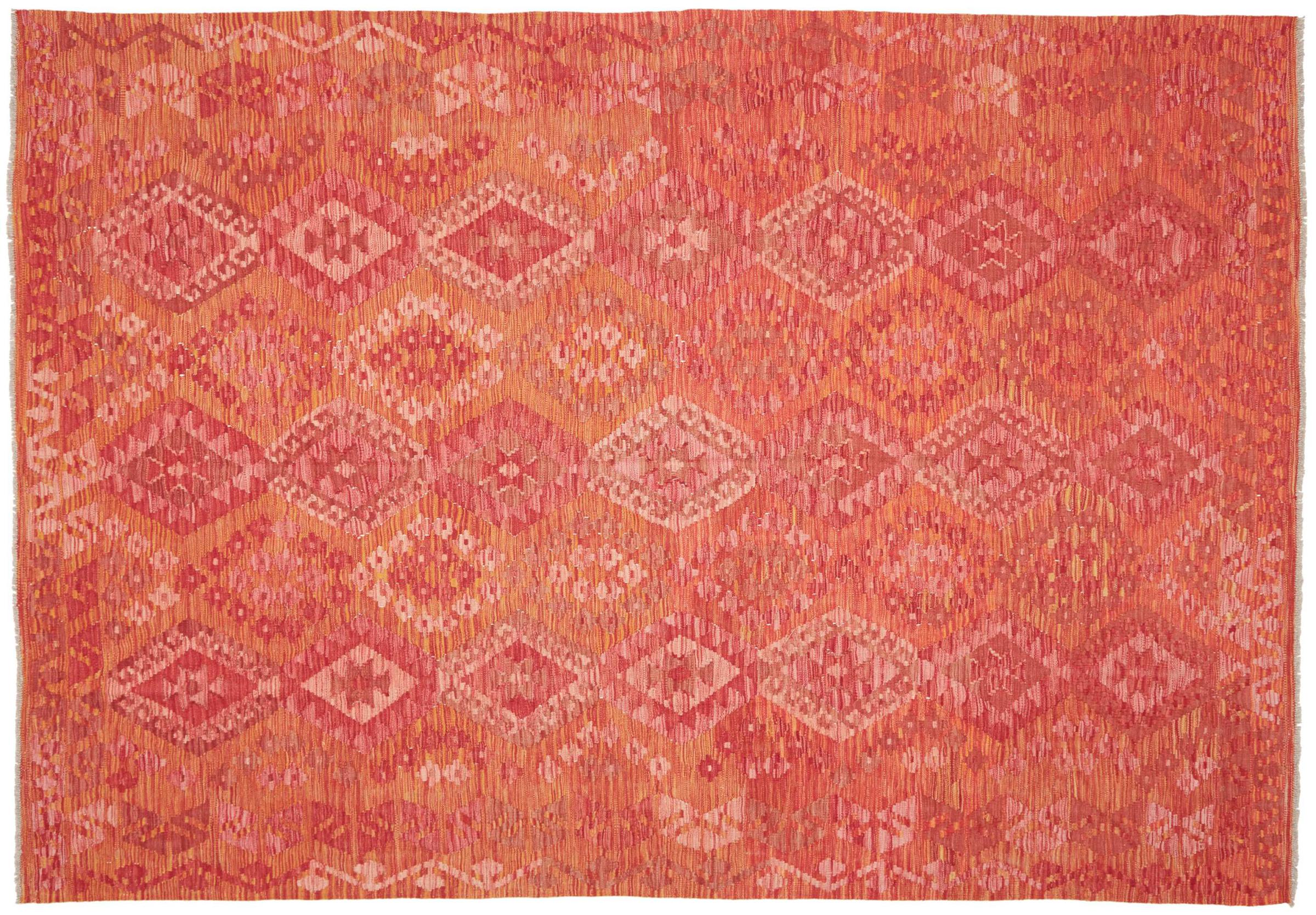 Ez a kézzel fonott Kelim-Afghan színei és tipikus mintája révén nagyon szép. Afganisztánban 100% -os gyapjúból kézzel szötték. Ehhez még robosztus, hosszú élettartamú is. Egy nyeremény Önnek és otthonának.