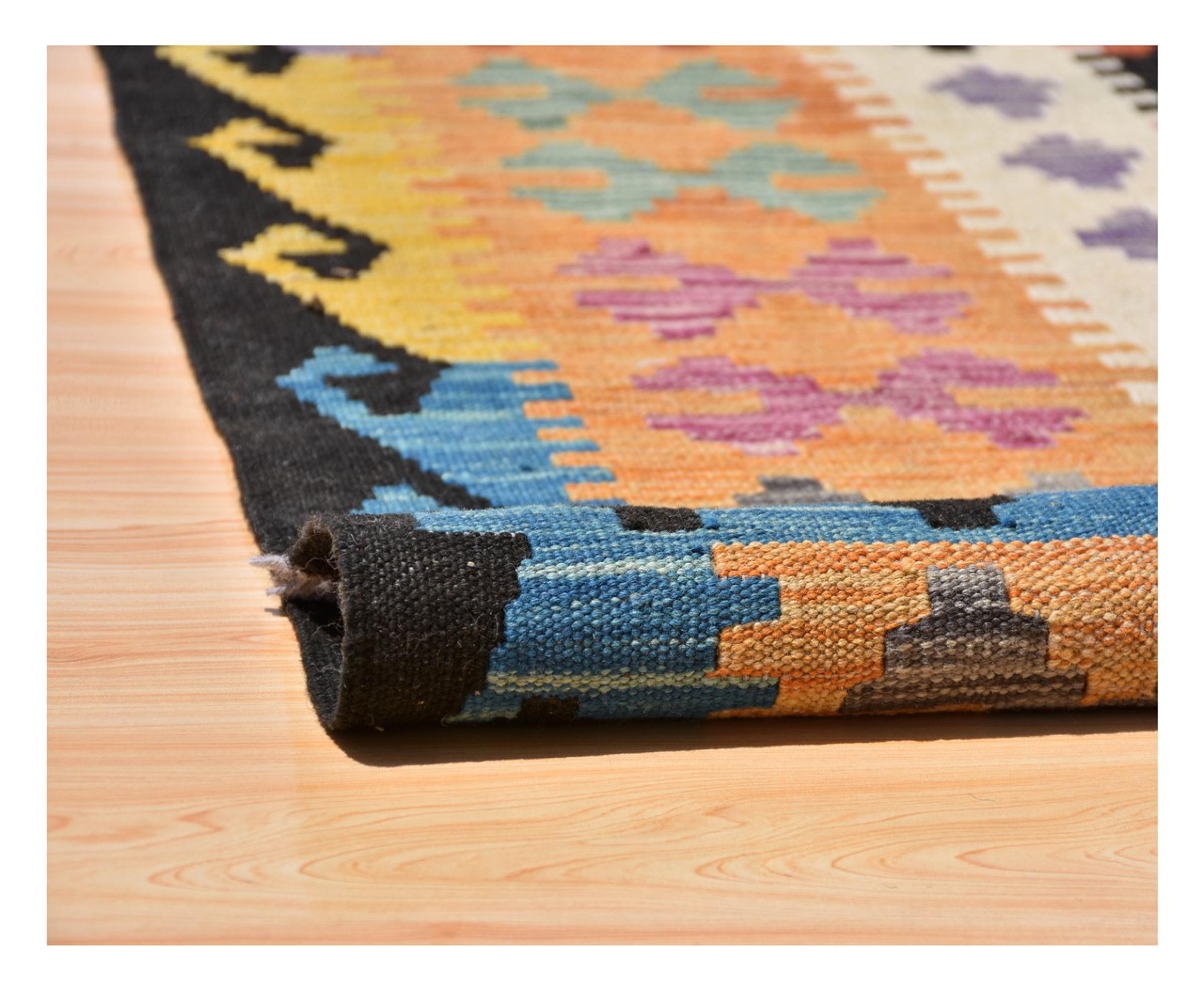 Ez a kézzel fonott Kelim-Afghan színei és tipikus mintája révén nagyon szép. Afganisztánban 100% -os gyapjúból kézzel szötték. Ehhez még robosztus, hosszú élettartamú is. Egy nyeremény Önnek és otthonának.