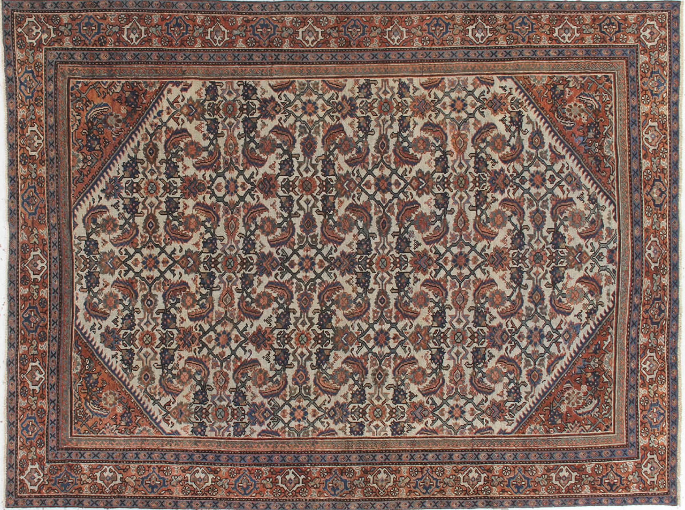 Szönyeg száma.: 310026001503284 Méret 302x219 cm Vastagság: kb. 12 mm Csomók: 200 000 - 250 000 / m² Feldolgozás: Kézzel csomózva Dísz: Kézzel sodort gyapjú Lánc Gyapjú Állapot / Konzerválás Tökéletes Származás: Perzsia / Iran Kor Antiktöbb mint 80 Éves Súlya kb. 23 kg Készleten: Egyedi - Csak 1 van készleten