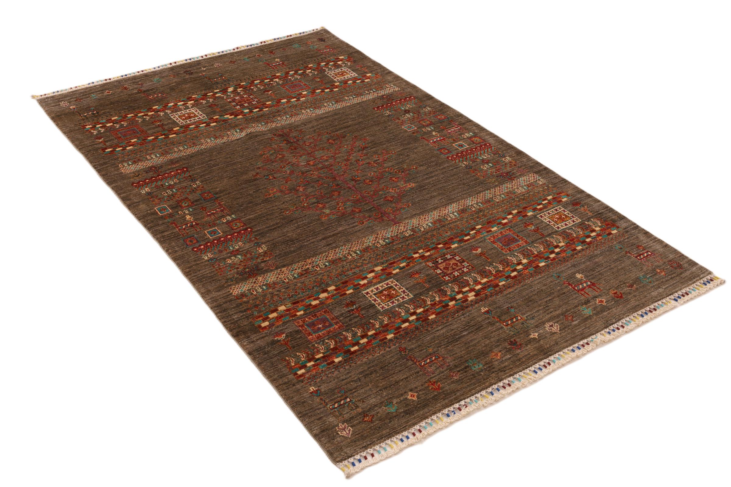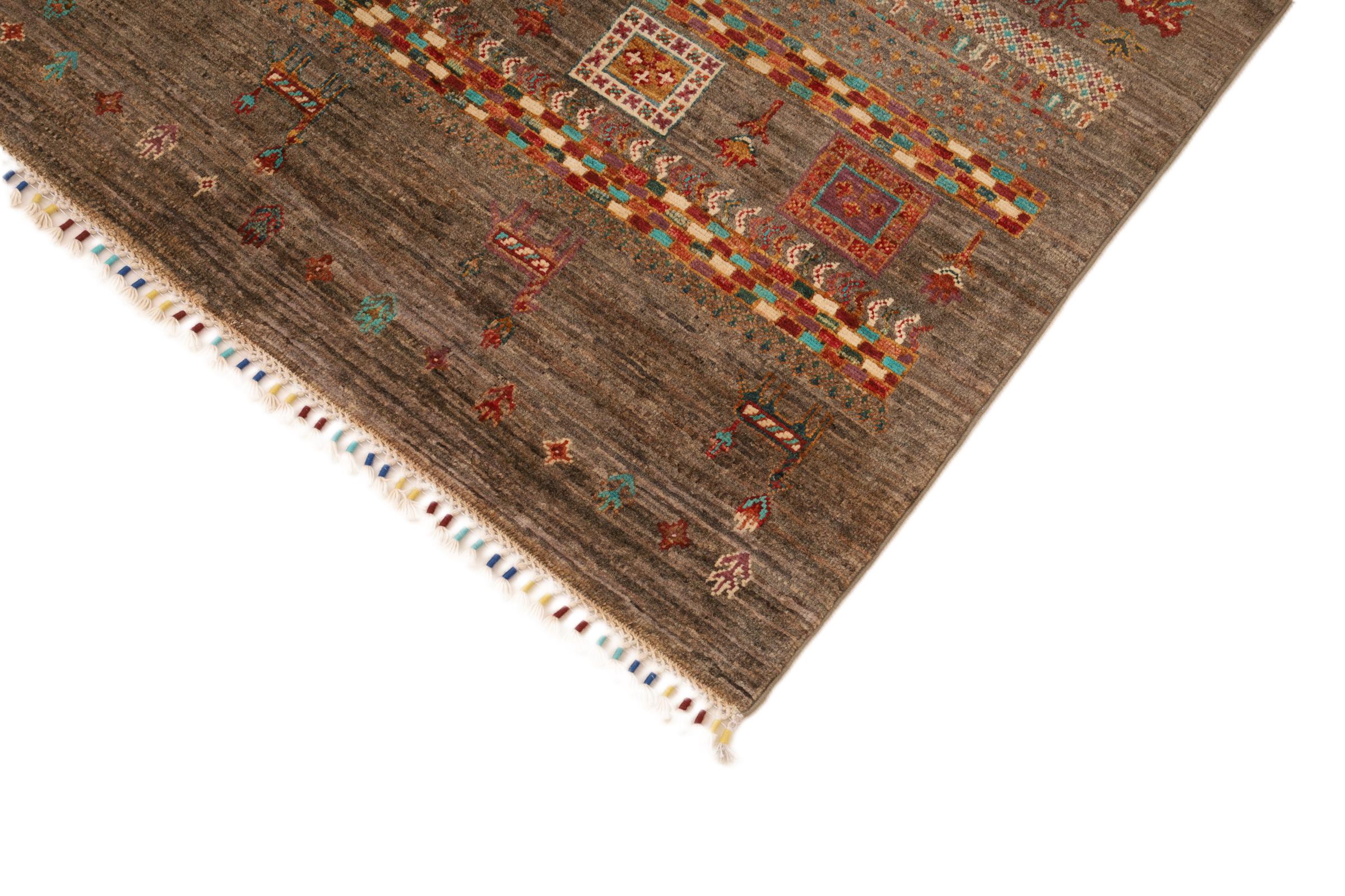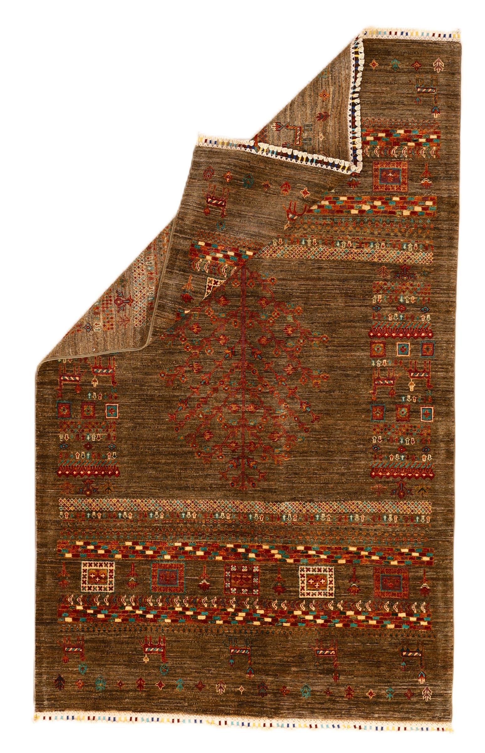 Ez a gyönyörű szőnyeg perzsa Gabbeh és az egyik legmagasabb minőségű Gabbeh szőnyeg. A szőnyegeket nomádok vagy félig nomádok csomózják Iránban, hagyományos kézműves termékek felhasználásával. Az egyszerű motívumok és minták leginkább a nomád közvetlen környezetében merülnek fel. Például tevék, fák vagy bokrok találhatók a hagyományos szőnyegeken. A perzsa Gabbeh szőnyegeket helyi juhállomány gyapjújából készítik. Ezért a gyapjút főleg kézzel fonják. Ezek a keleti szőnyegek az évszázados kultúra egyedülálló karakterét testesítik meg.
