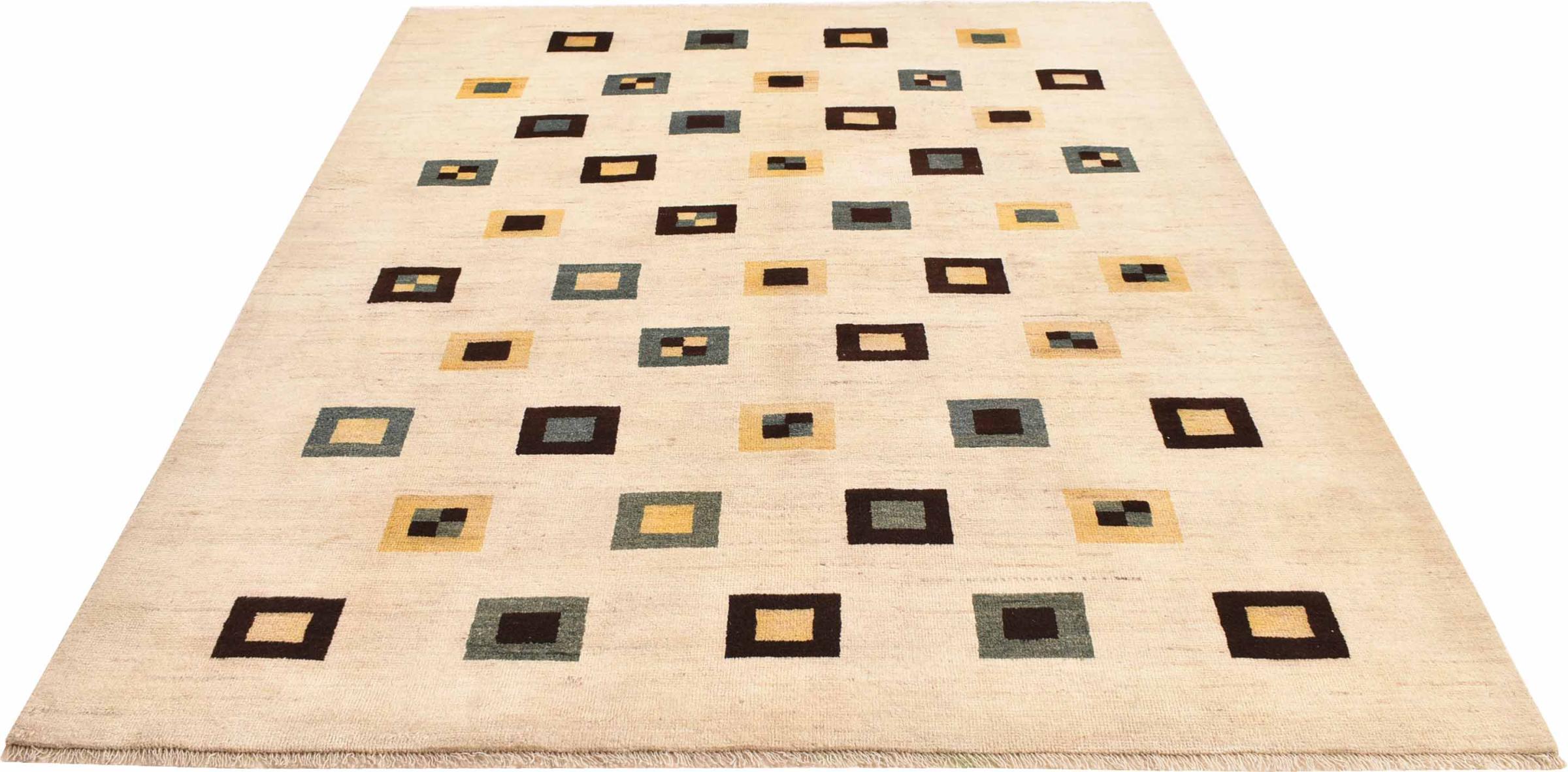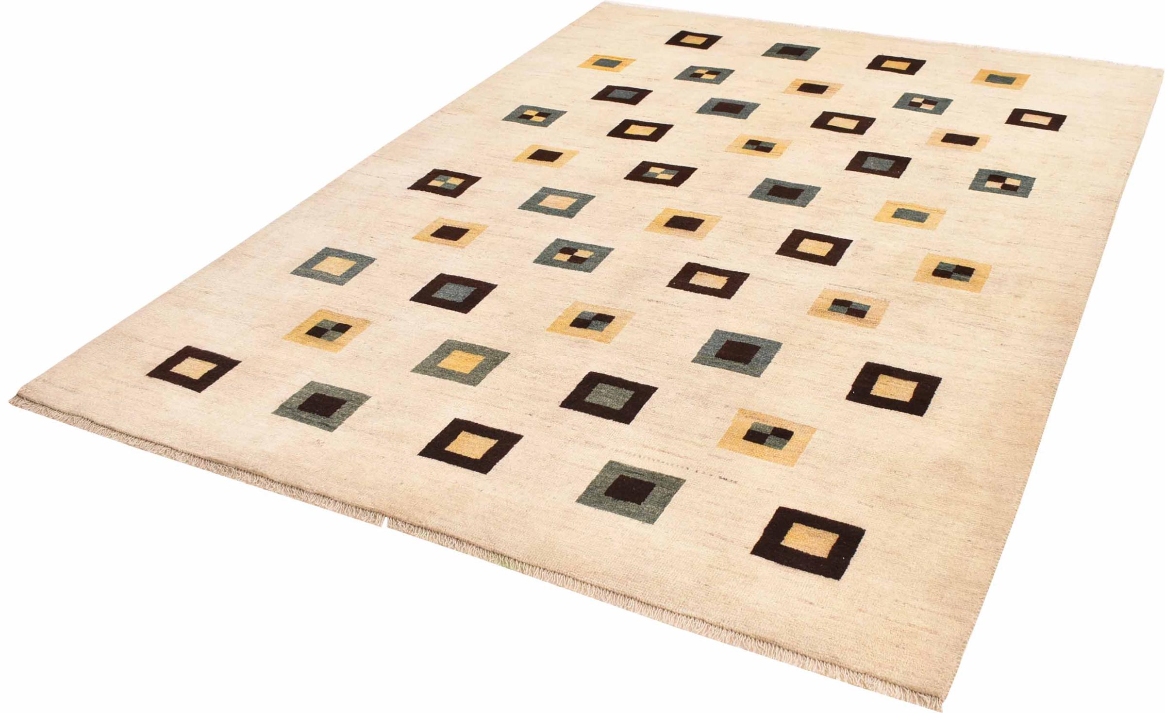 Ez a gyönyörű szőnyeg perzsa Gabbeh és az egyik legmagasabb minőségű Gabbeh szőnyeg. A szőnyegeket nomádok vagy félig nomádok csomózják Iránban, hagyományos kézműves termékek felhasználásával. Az egyszerű motívumok és minták leginkább a nomád közvetlen környezetében merülnek fel. Például tevék, fák vagy bokrok találhatók a hagyományos szőnyegeken. A perzsa Gabbeh szőnyegeket helyi juhállomány gyapjújából készítik. Ezért a gyapjút főleg kézzel fonják. Ezek a keleti szőnyegek az évszázados kultúra egyedülálló karakterét testesítik meg.