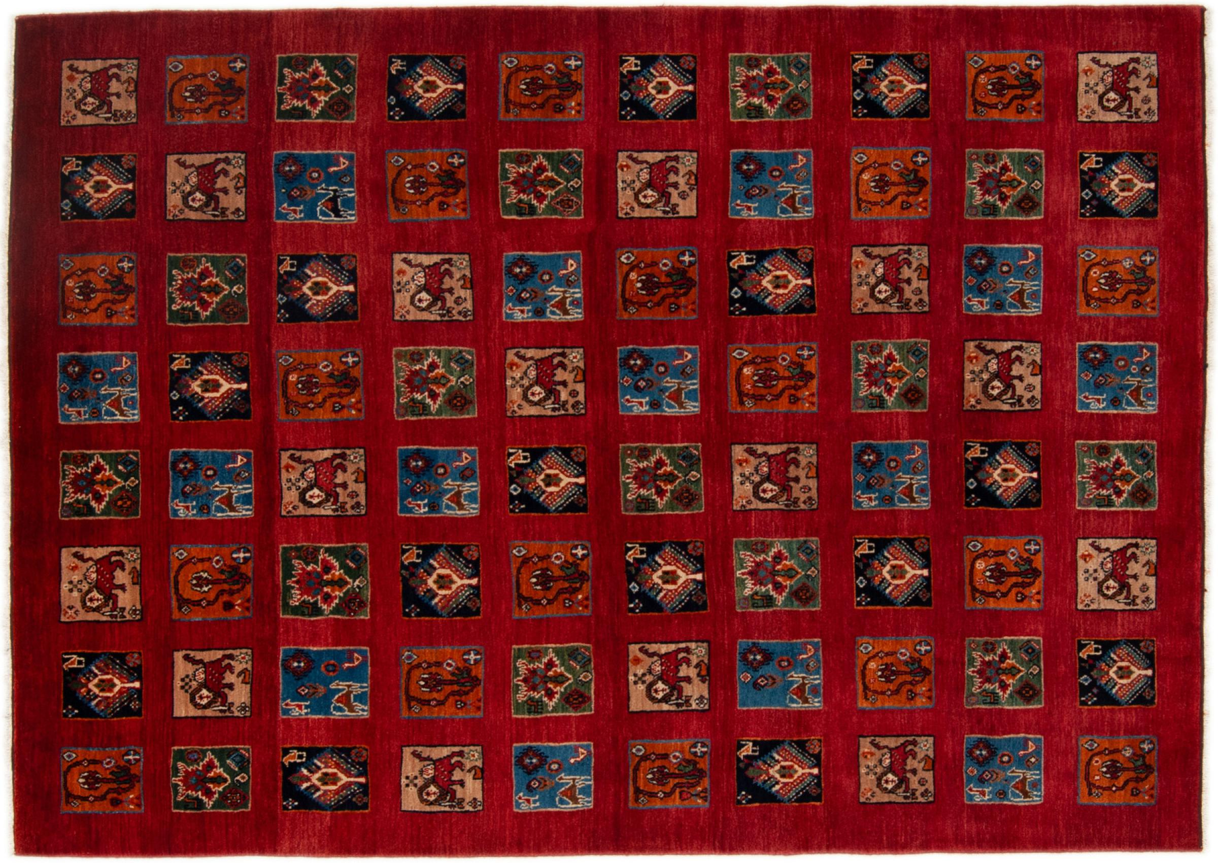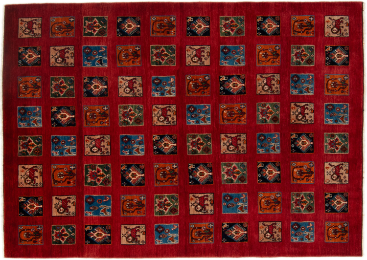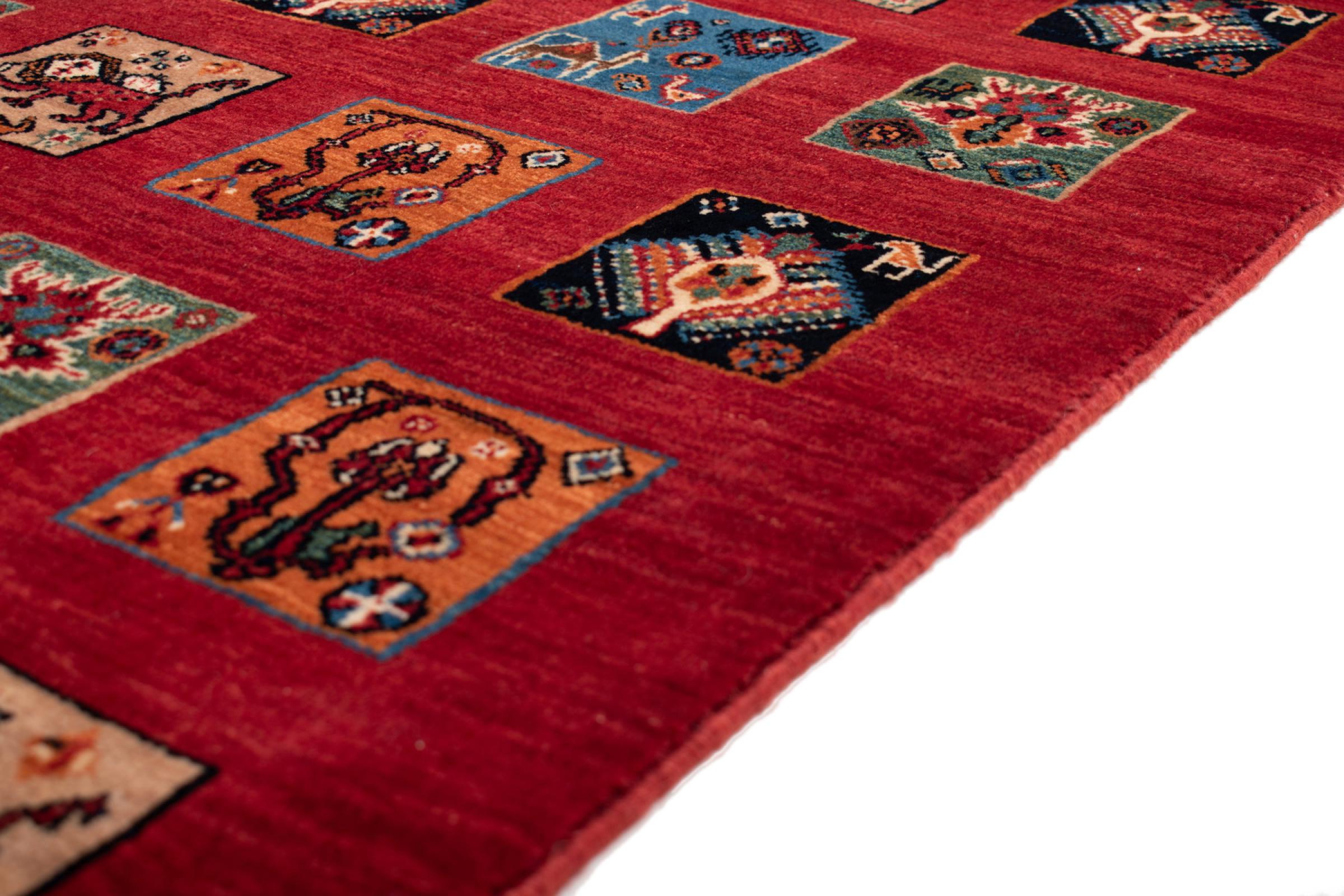 Ez a gyönyörű szőnyeg perzsa Gabbeh és az egyik legmagasabb minőségű Gabbeh szőnyeg. A szőnyegeket nomádok vagy félig nomádok csomózják Iránban, hagyományos kézműves termékek felhasználásával. Az egyszerű motívumok és minták leginkább a nomád közvetlen környezetében merülnek fel. Például tevék, fák vagy bokrok találhatók a hagyományos szőnyegeken. A perzsa Gabbeh szőnyegeket helyi juhállomány gyapjújából készítik. Ezért a gyapjút főleg kézzel fonják. Ezek a keleti szőnyegek az évszázados kultúra egyedülálló karakterét testesítik meg.