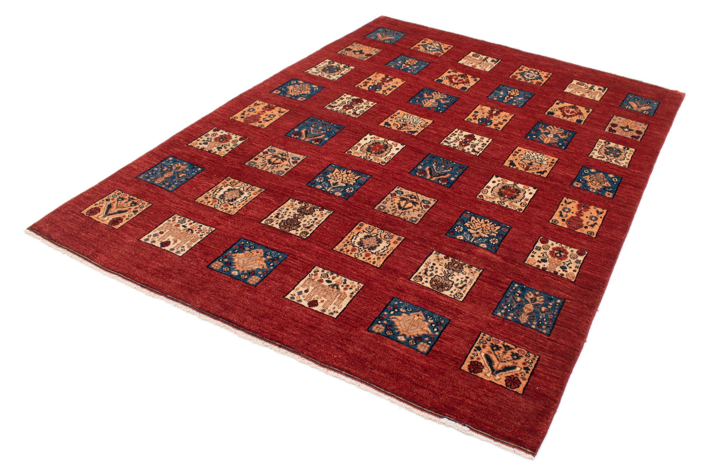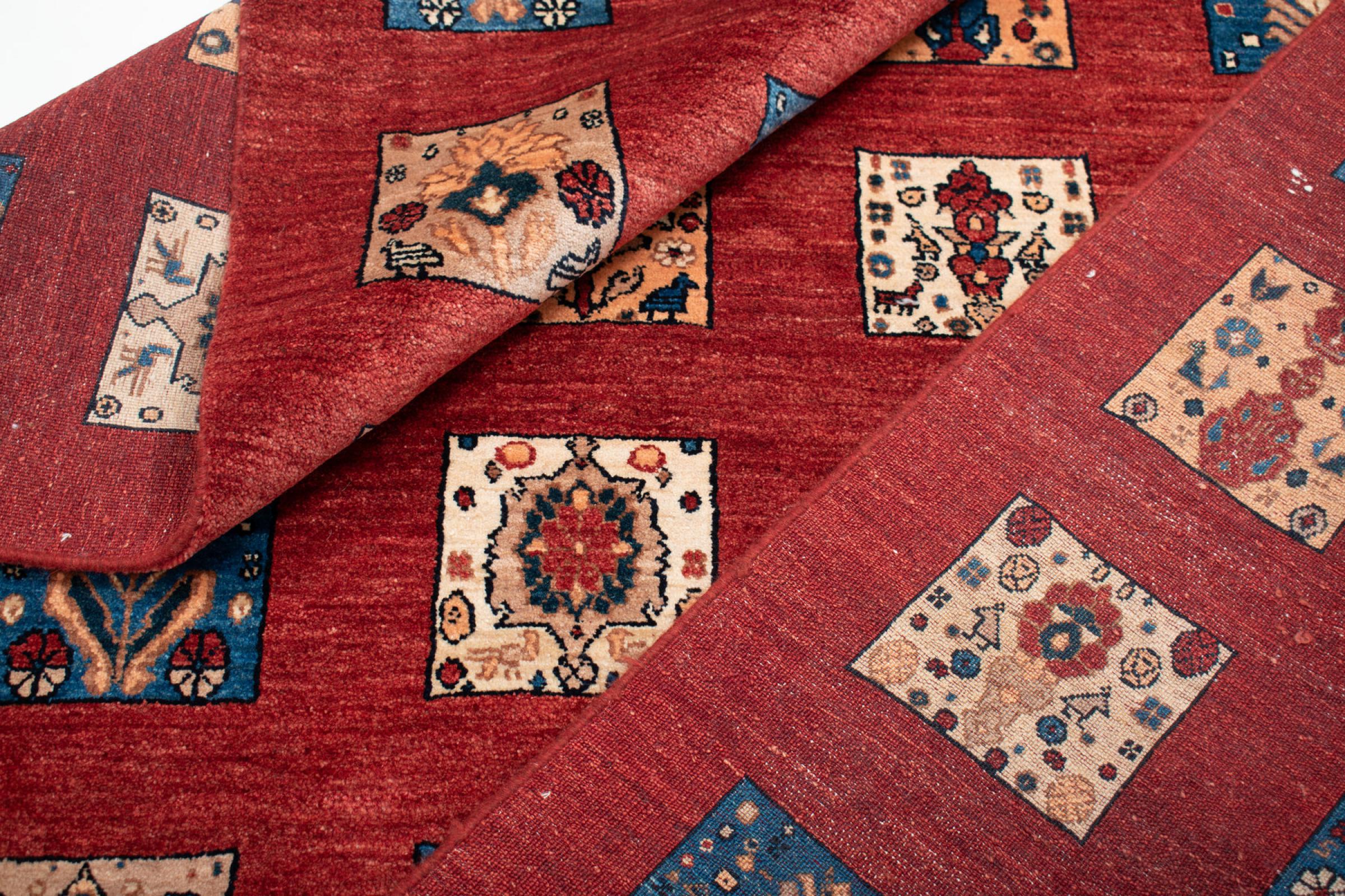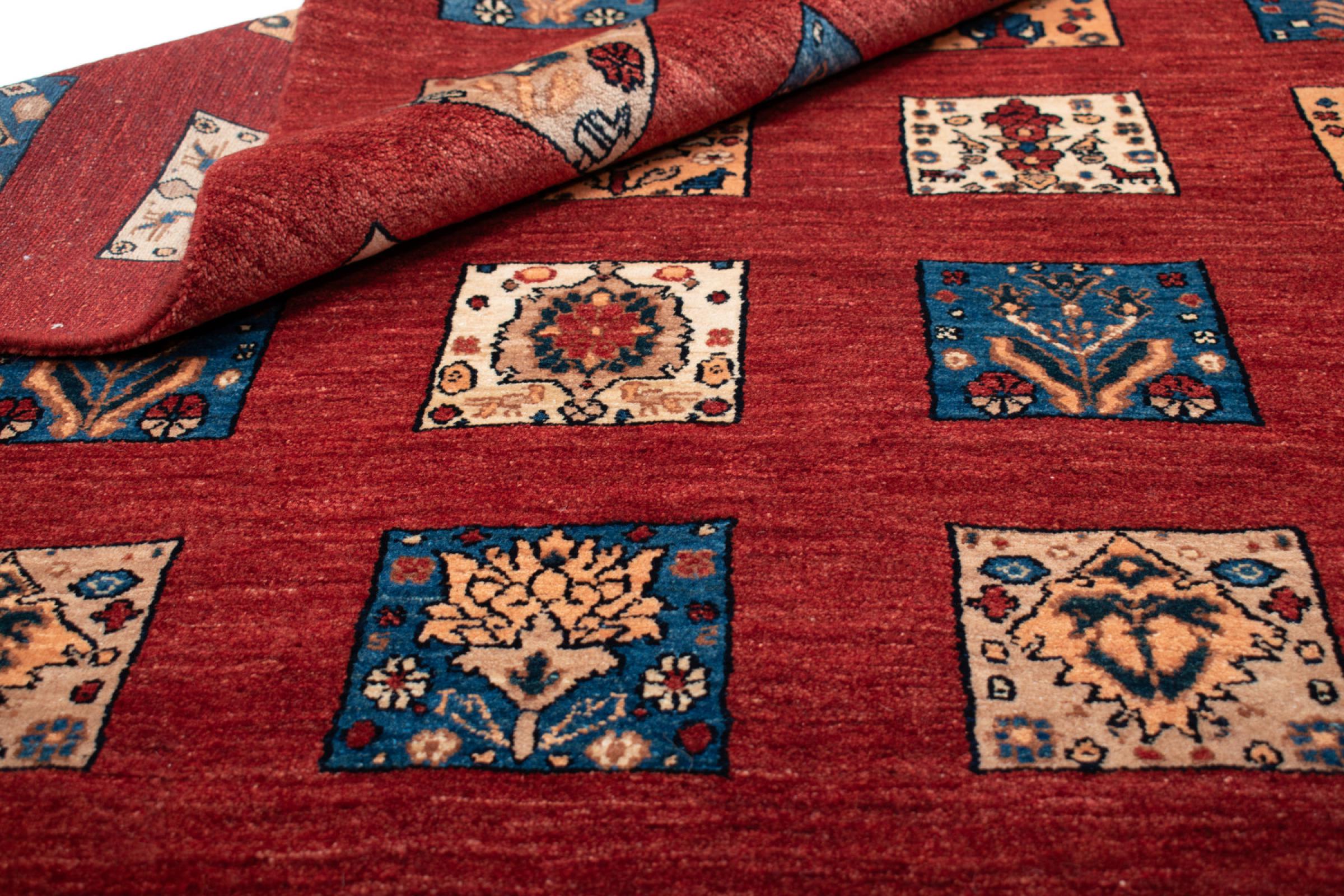 Ez a gyönyörű szőnyeg perzsa Gabbeh és az egyik legmagasabb minőségű Gabbeh szőnyeg. A szőnyegeket nomádok vagy félig nomádok csomózják Iránban, hagyományos kézműves termékek felhasználásával. Az egyszerű motívumok és minták leginkább a nomád közvetlen környezetében merülnek fel. Például tevék, fák vagy bokrok találhatók a hagyományos szőnyegeken. A perzsa Gabbeh szőnyegeket helyi juhállomány gyapjújából készítik. Ezért a gyapjút főleg kézzel fonják. Ezek a keleti szőnyegek az évszázados kultúra egyedülálló karakterét testesítik meg.