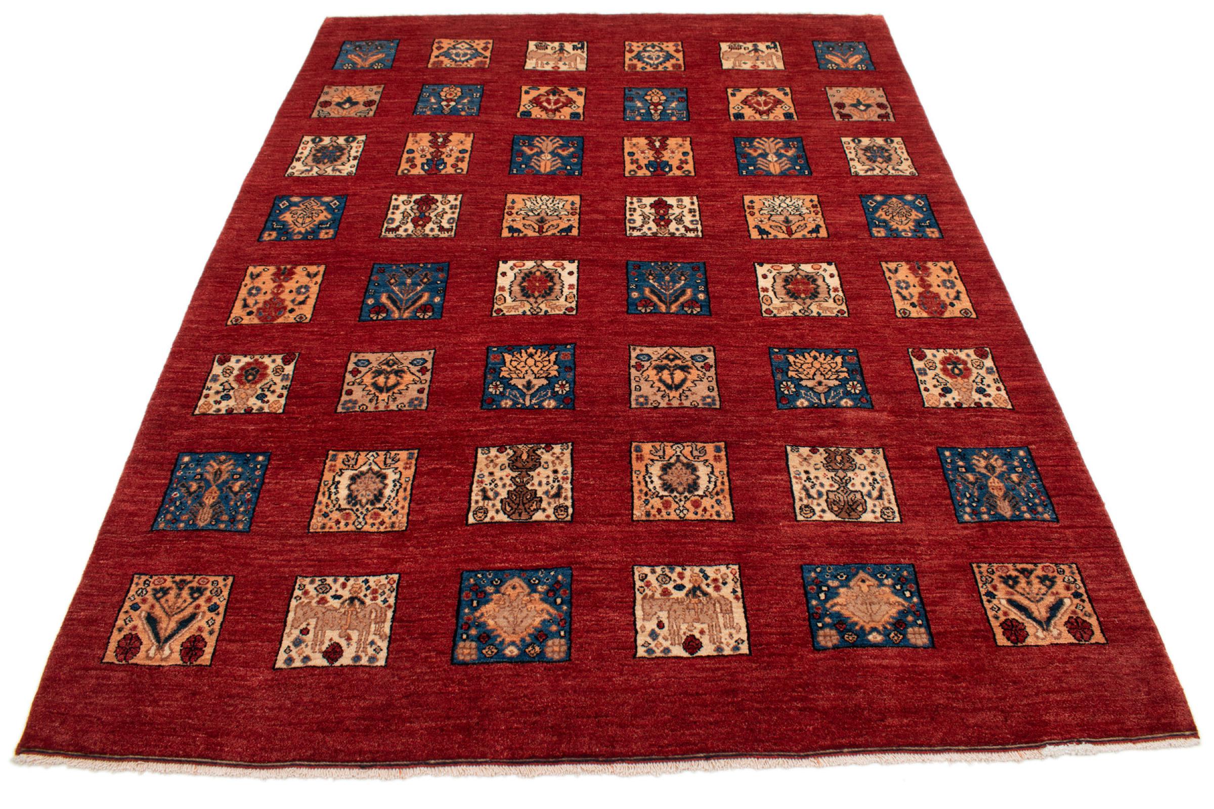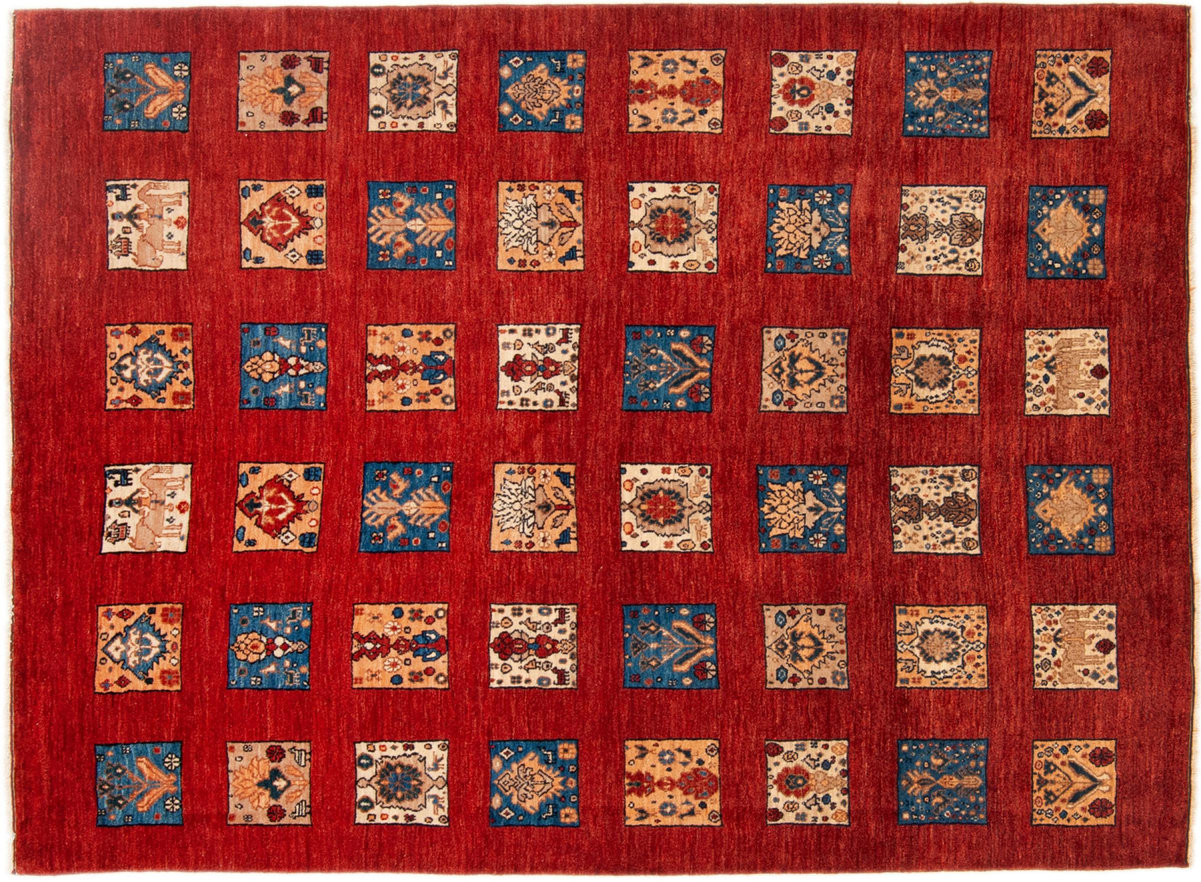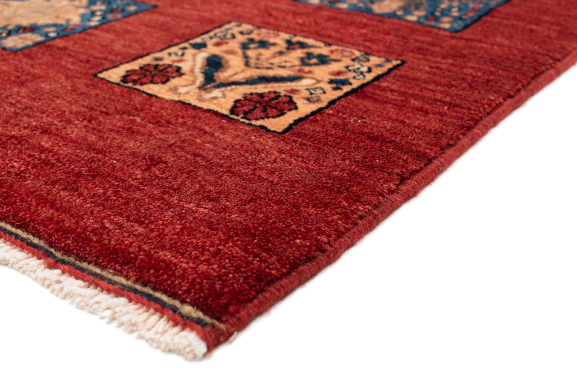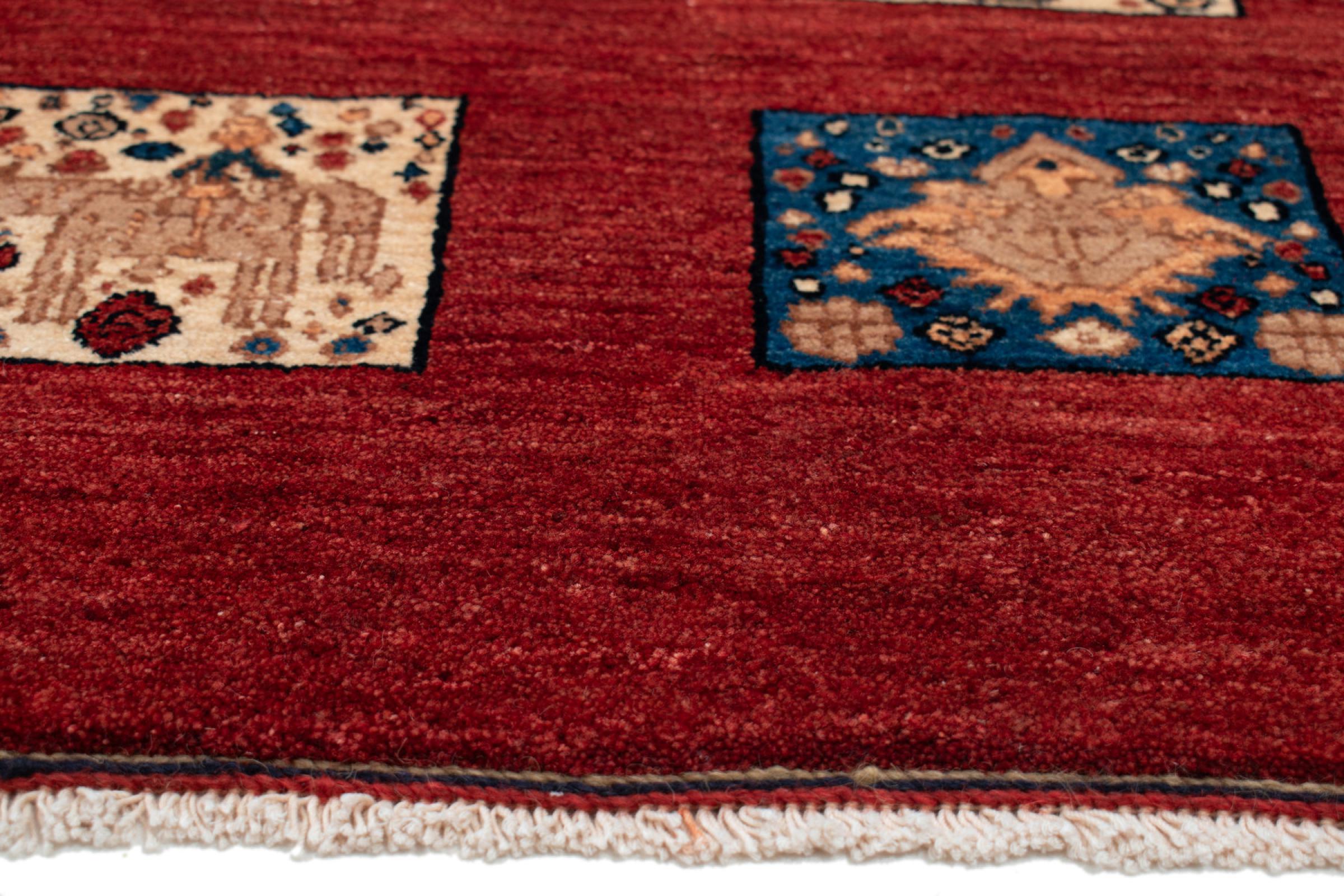 Ez a gyönyörű szőnyeg perzsa Gabbeh és az egyik legmagasabb minőségű Gabbeh szőnyeg. A szőnyegeket nomádok vagy félig nomádok csomózják Iránban, hagyományos kézműves termékek felhasználásával. Az egyszerű motívumok és minták leginkább a nomád közvetlen környezetében merülnek fel. Például tevék, fák vagy bokrok találhatók a hagyományos szőnyegeken. A perzsa Gabbeh szőnyegeket helyi juhállomány gyapjújából készítik. Ezért a gyapjút főleg kézzel fonják. Ezek a keleti szőnyegek az évszázados kultúra egyedülálló karakterét testesítik meg.