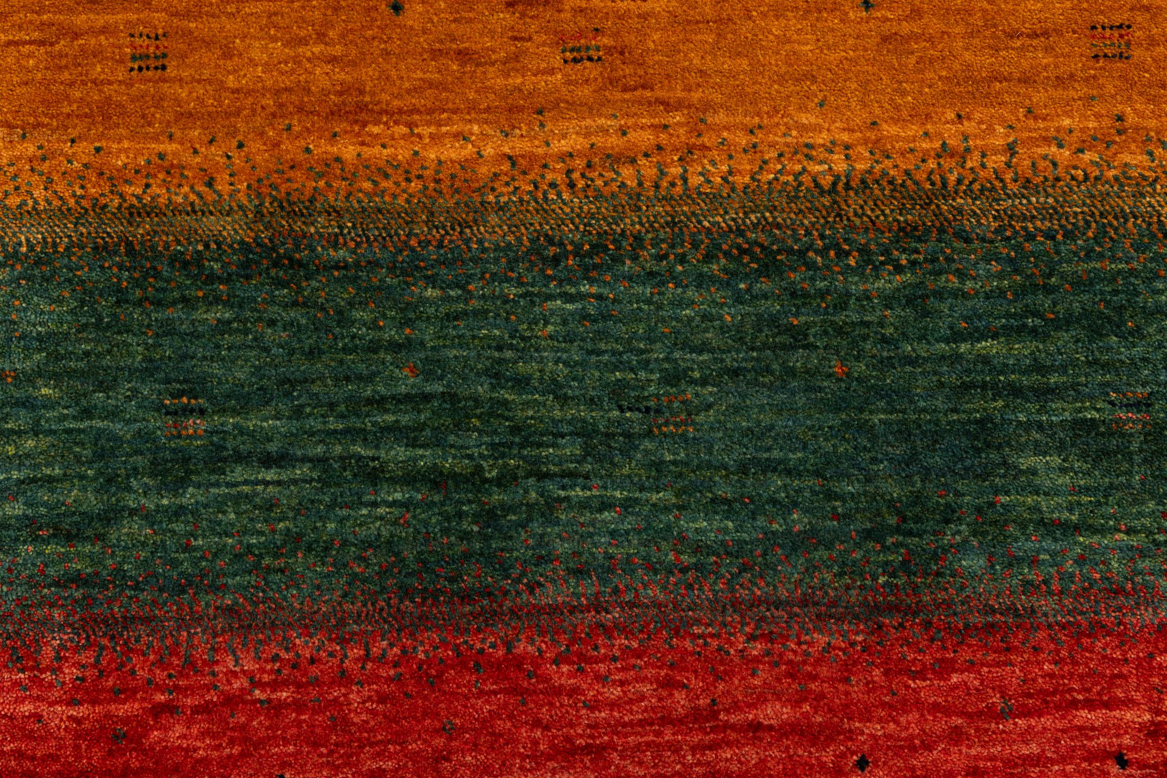 Ez a gyönyörű szőnyeg perzsa Gabbeh és az egyik legmagasabb minőségű Gabbeh szőnyeg. A szőnyegeket nomádok vagy félig nomádok csomózják Iránban, hagyományos kézműves termékek felhasználásával. Az egyszerű motívumok és minták leginkább a nomád közvetlen környezetében merülnek fel. Például tevék, fák vagy bokrok találhatók a hagyományos szőnyegeken. A perzsa Gabbeh szőnyegeket helyi juhállomány gyapjújából készítik. Ezért a gyapjút főleg kézzel fonják. Ezek a keleti szőnyegek az évszázados kultúra egyedülálló karakterét testesítik meg.