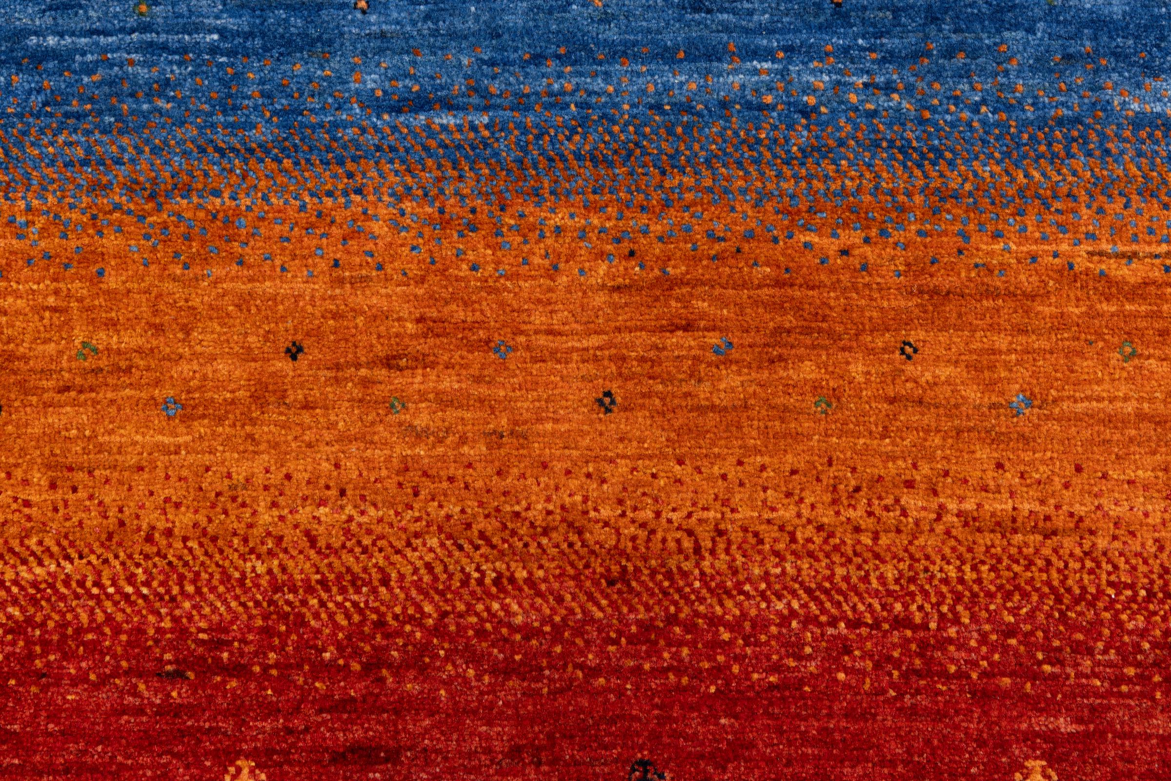 Ez a gyönyörű szőnyeg perzsa Gabbeh és az egyik legmagasabb minőségű Gabbeh szőnyeg. A szőnyegeket nomádok vagy félig nomádok csomózják Iránban, hagyományos kézműves termékek felhasználásával. Az egyszerű motívumok és minták leginkább a nomád közvetlen környezetében merülnek fel. Például tevék, fák vagy bokrok találhatók a hagyományos szőnyegeken. A perzsa Gabbeh szőnyegeket helyi juhállomány gyapjújából készítik. Ezért a gyapjút főleg kézzel fonják. Ezek a keleti szőnyegek az évszázados kultúra egyedülálló karakterét testesítik meg.