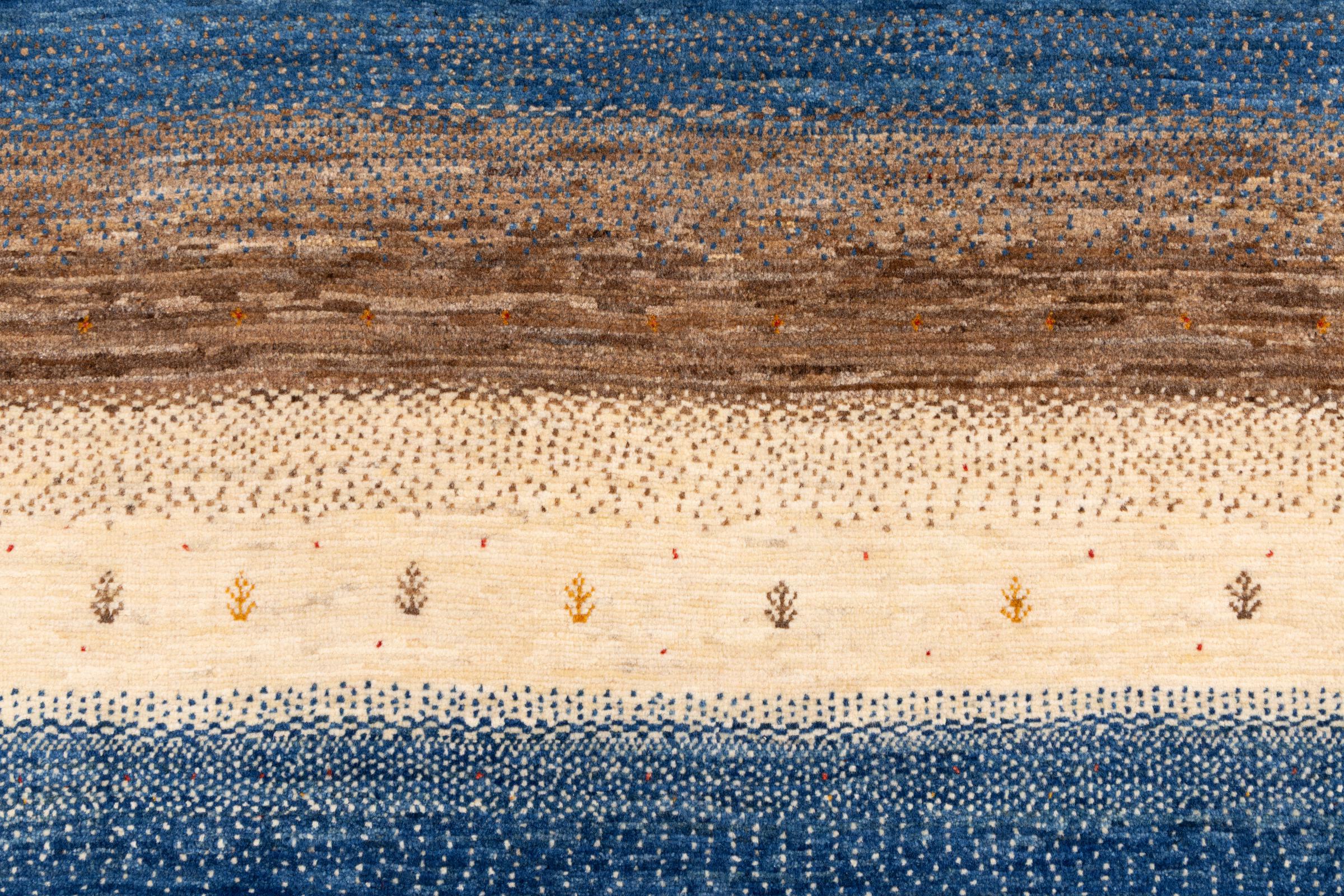Ez a gyönyörű szőnyeg perzsa Gabbeh és az egyik legmagasabb minőségű Gabbeh szőnyeg. A szőnyegeket nomádok vagy félig nomádok csomózják Iránban, hagyományos kézműves termékek felhasználásával. Az egyszerű motívumok és minták leginkább a nomád közvetlen környezetében merülnek fel. Például tevék, fák vagy bokrok találhatók a hagyományos szőnyegeken. A perzsa Gabbeh szőnyegeket helyi juhállomány gyapjújából készítik. Ezért a gyapjút főleg kézzel fonják. Ezek a keleti szőnyegek az évszázados kultúra egyedülálló karakterét testesítik meg.