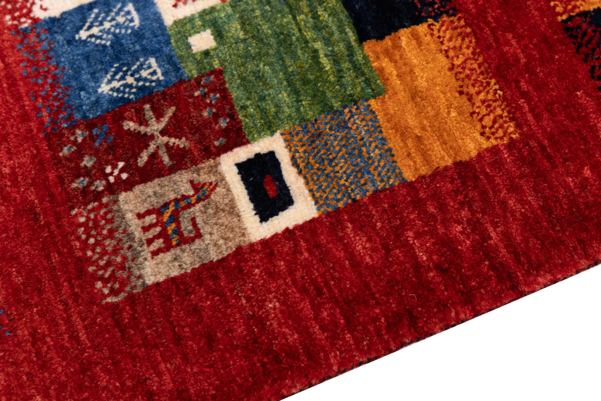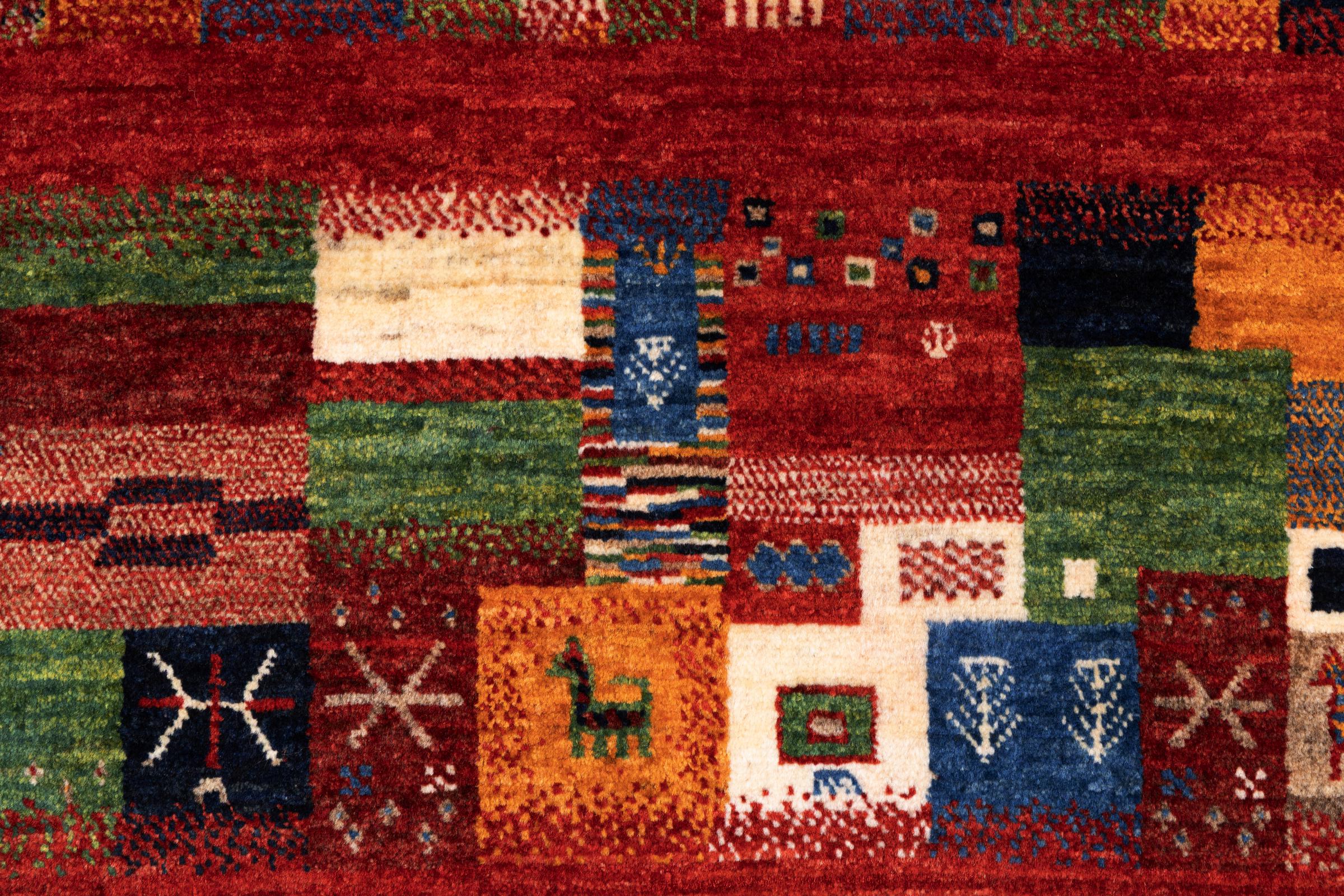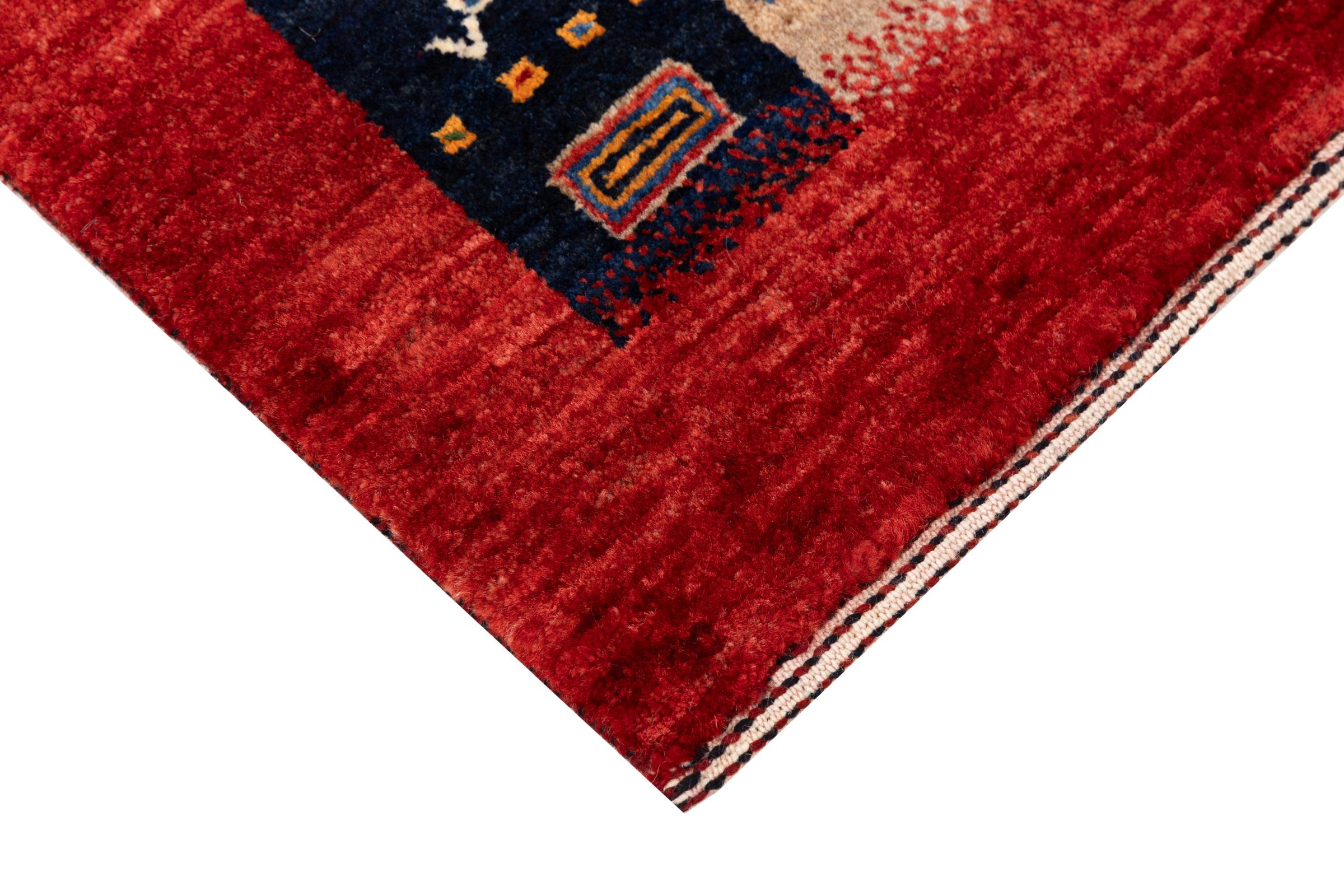 Ez a gyönyörű szőnyeg perzsa Gabbeh és az egyik legmagasabb minőségű Gabbeh szőnyeg. A szőnyegeket nomádok vagy félig nomádok csomózják Iránban, hagyományos kézműves termékek felhasználásával. Az egyszerű motívumok és minták leginkább a nomád közvetlen környezetében merülnek fel. Például tevék, fák vagy bokrok találhatók a hagyományos szőnyegeken. A perzsa Gabbeh szőnyegeket helyi juhállomány gyapjújából készítik. Ezért a gyapjút főleg kézzel fonják. Ezek a keleti szőnyegek az évszázados kultúra egyedülálló karakterét testesítik meg.