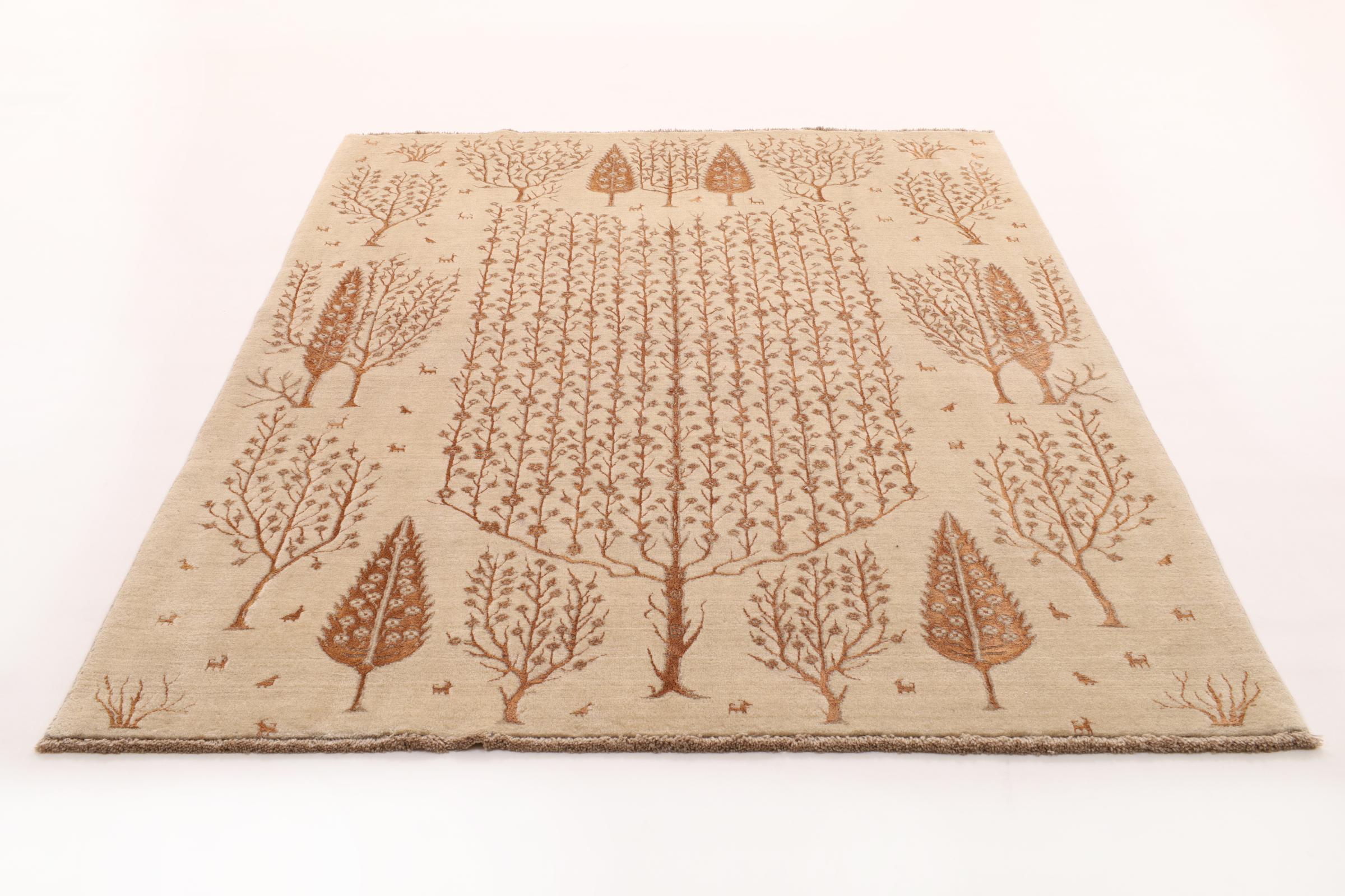 A modern dizájner szőnyegek egyesítik a hagyományos kézi csomózást a modern dizájnnal. A formatervezés továbbra is a keleti tipikus dísztárgyakon alapul, ám ezek egyszerűbbek és egyszerűbbek. Az eredmény kiváló minőségű, időben modern stílusú, kézzel kötött szőnyegek.