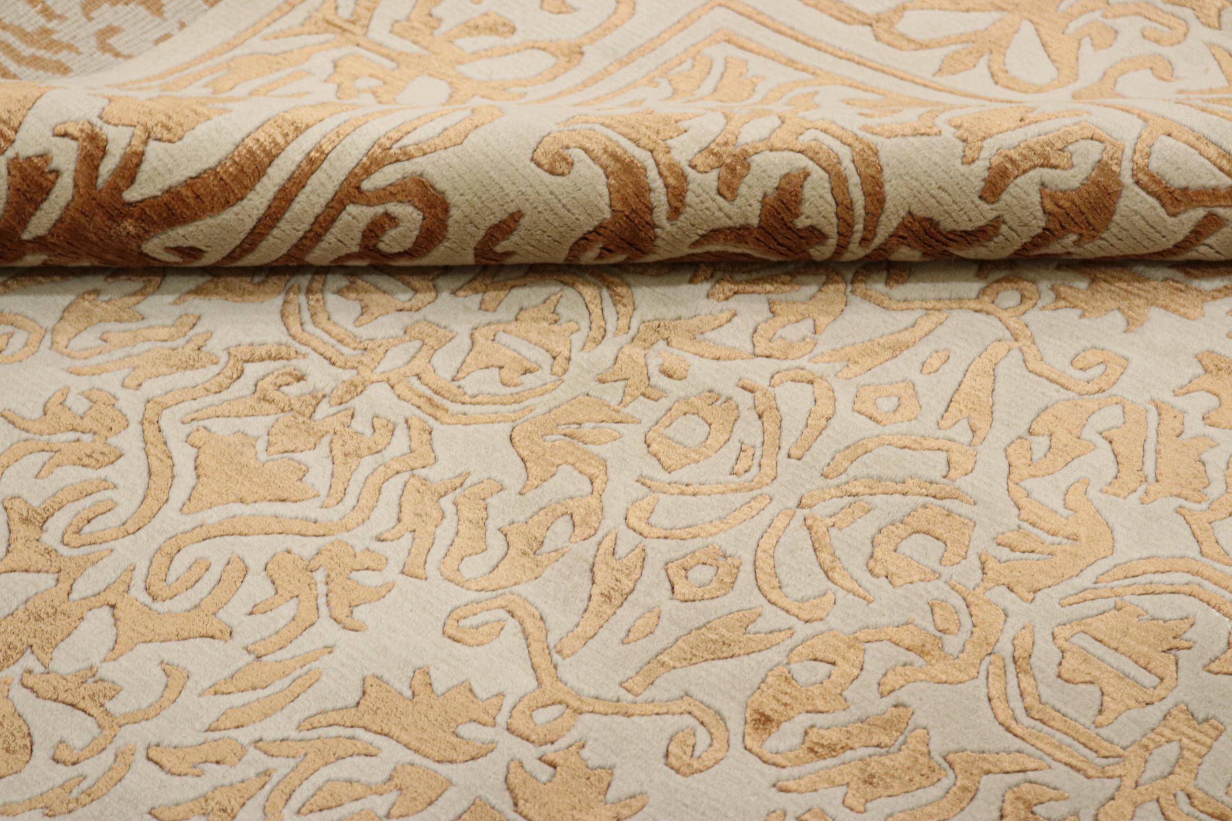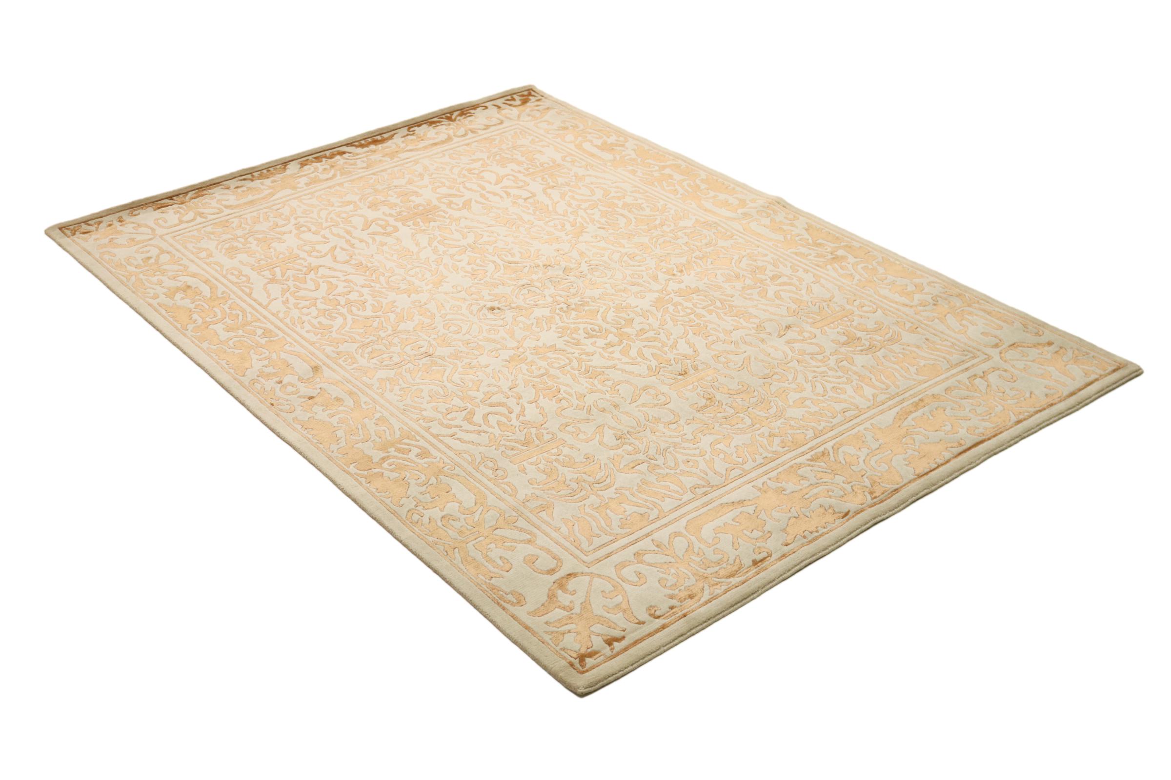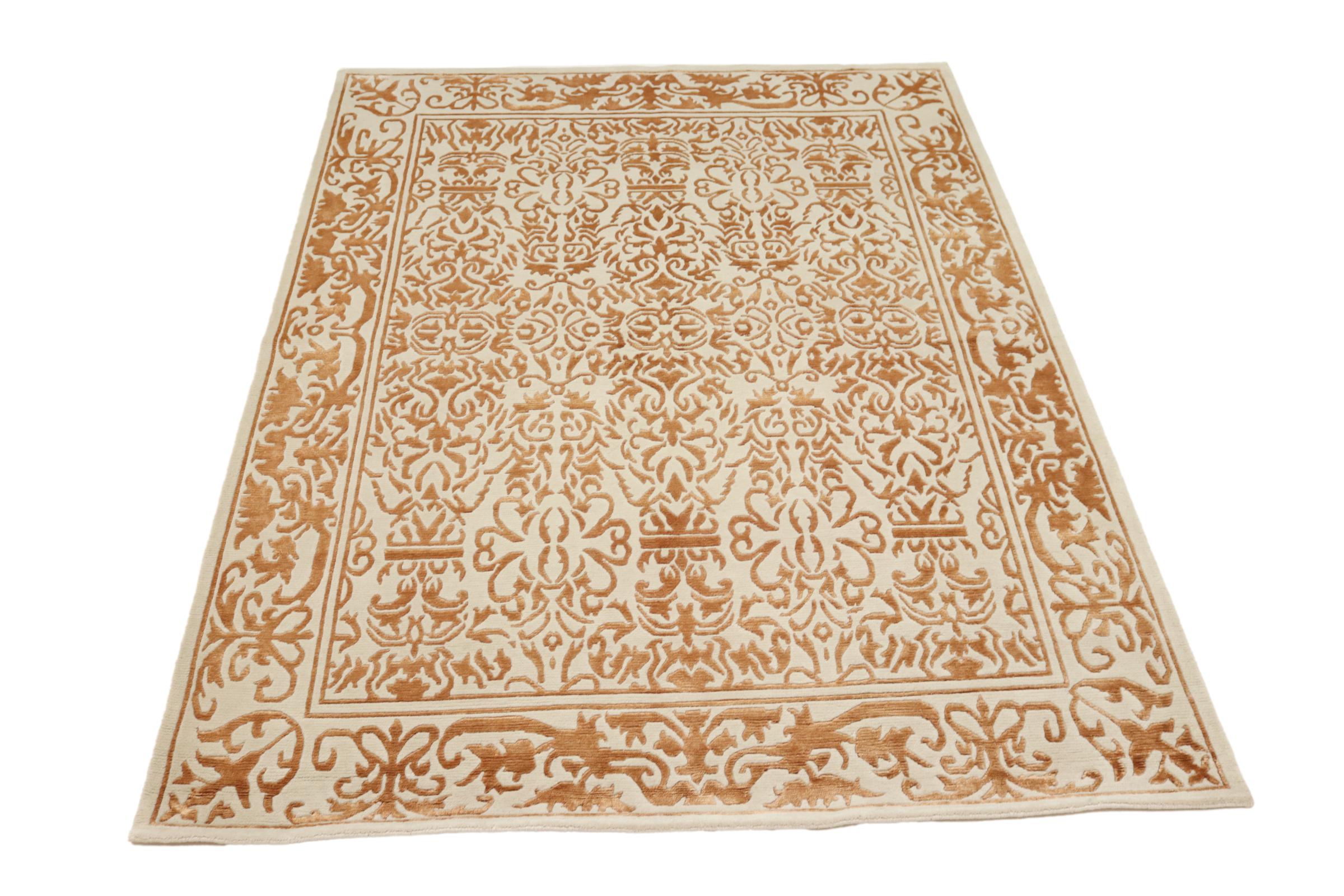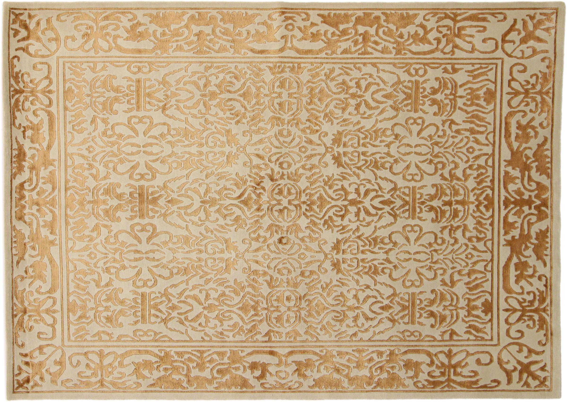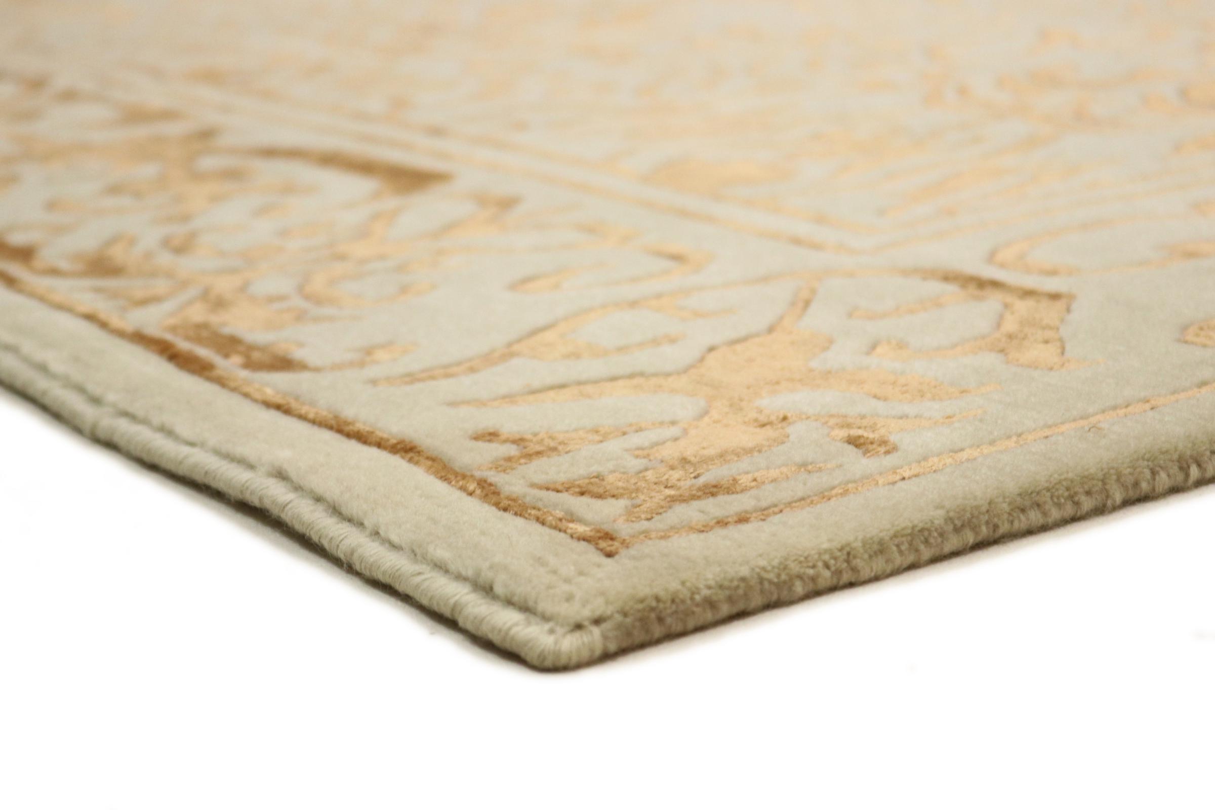 Ez a szőnyeg Nepálból származik, és ott kézzel kötötték. A nepáli szőnyegek általában kissé durvabbak, modern, színes mintázatokkal rendelkeznek. A klasszikus variációk a hagyományos kínai szőnyegekből készülnek. Az évek során a nepáli szőnyegek megjelenését a nyugati piacok igényeihez igazították. Tehát ma pasztell színek és geometriai minták találhatók ezen a kézzel csomózott szőnyegen.