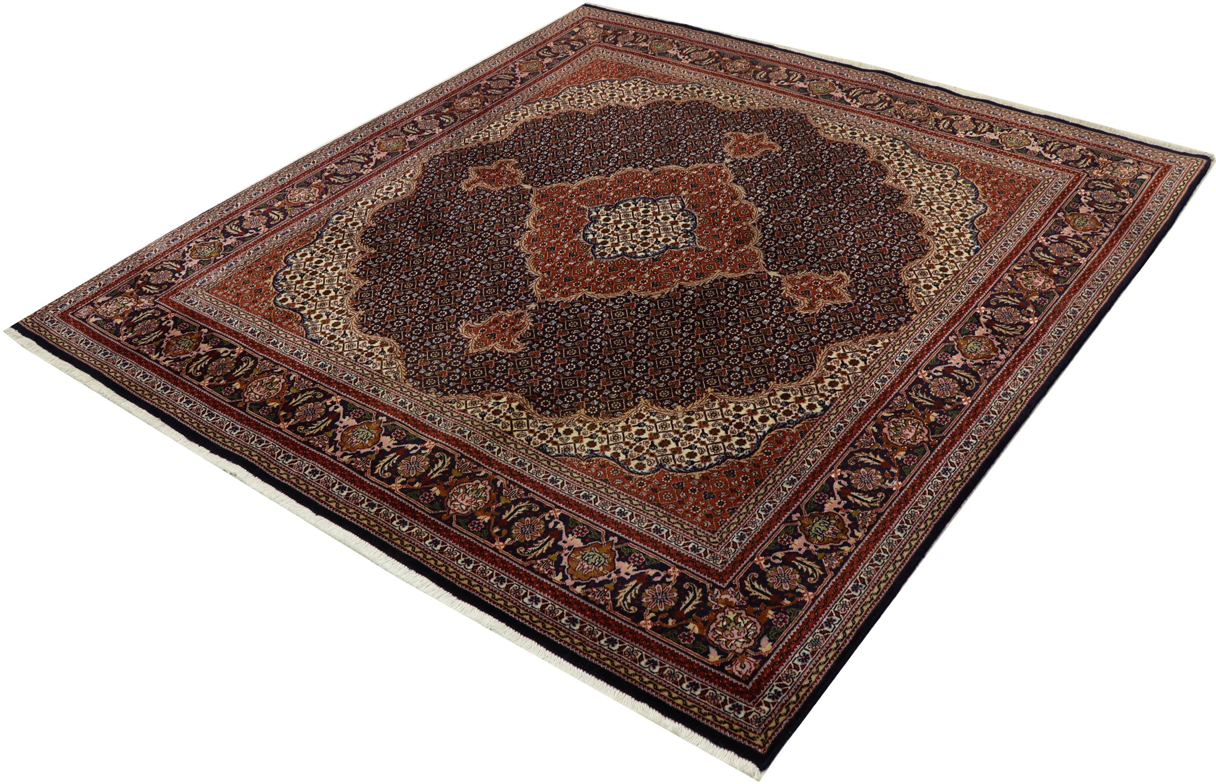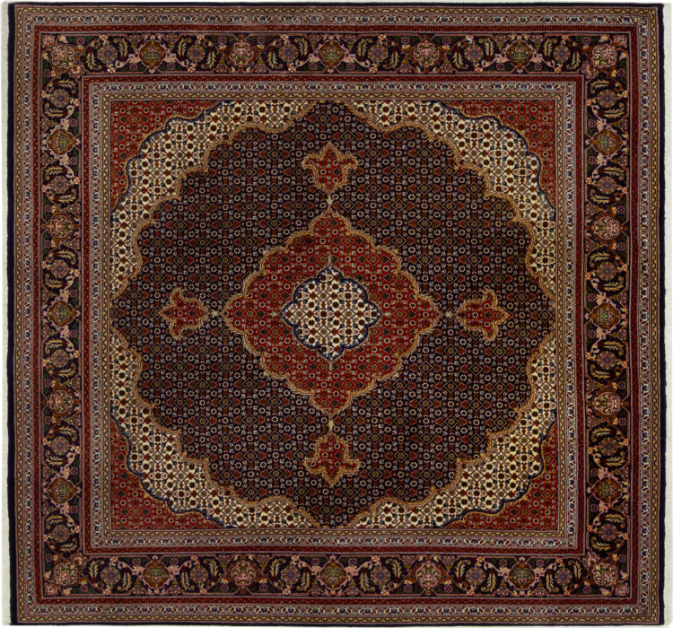Szönyeg száma.: 303837002391245 Méret 156x148 cm Vastagság: kb. 5 mm Csomók: 440 000 - 490 000 / m² Feldolgozás: Kézzel csomózva Dísz: Parafa gyapjú selyemmel Lánc Pamut Származás: Perzsia / Iran Kor Új Súlya kb. 8 kg Más néven Tabris, Tabriz, Tebris, Tebriz, Täbris Készleten: Egyedi - Csak 1 van készleten