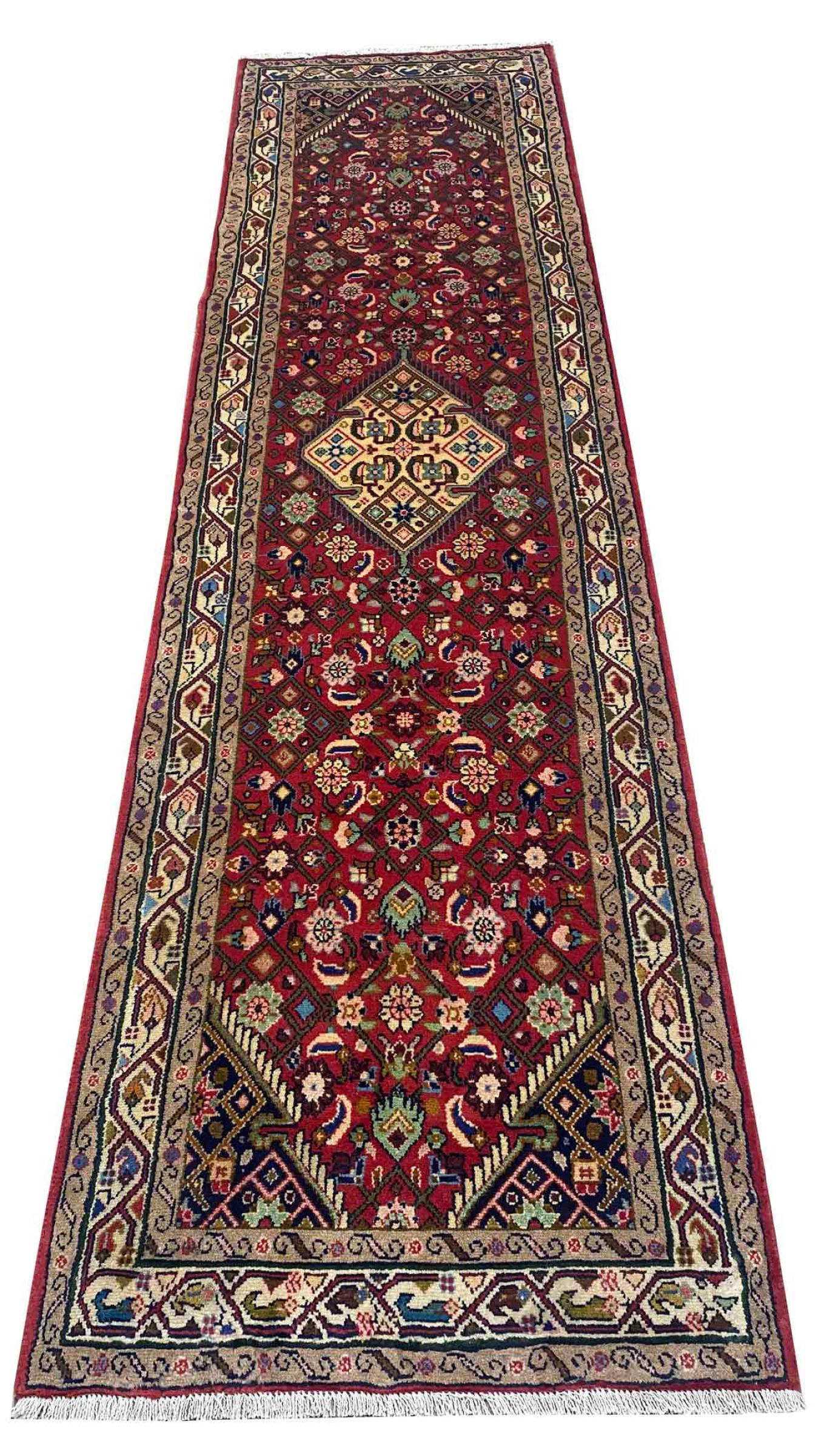 Szönyeg száma.: 318941006121271 Méret 297x81 cm Vastagság: kb. 12 mm Csomók: 128 000 - 160 000 / m² Feldolgozás: Kézzel csomózva Dísz: Kézzel sodort gyapjú Lánc Pamut Származás: Perzsia / Iran Kor Új Súlya kb. 10 kg Készleten: Egyedi - Csak 1 van készleten