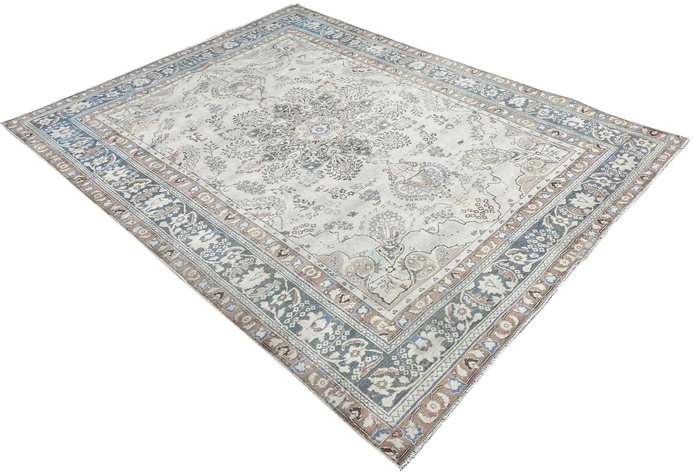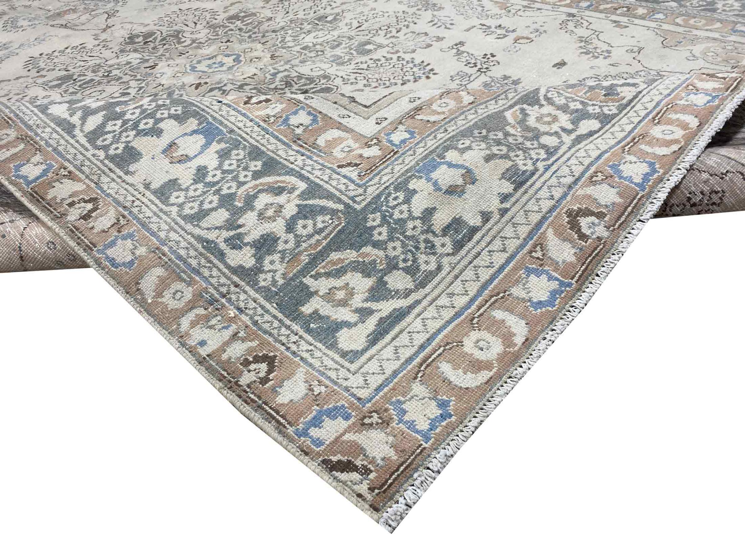 Ez egy kézzel csomózott perzsaszőnyeg, amely legalább 20 éves. Egy ilyen szőnyeg megfelelő ápolással akár generációkig is eltarthat. A szőnyeget teljesen átfestették anélkül, hogy az eredetileg csomózott díszeket teljesen átfestették volna. Ez ad a kiváló minőségű perzsaszőnyegnek egyedi, modern, vintage jelleget.